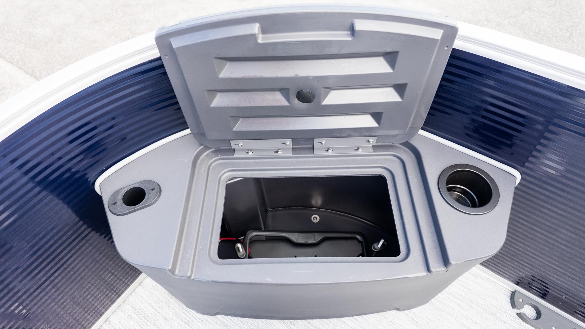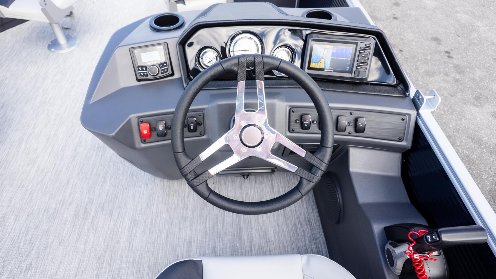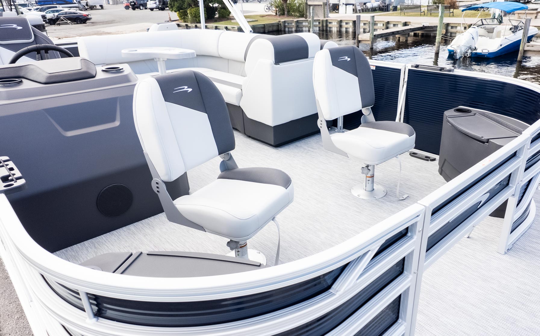 Powered by a Yamaha 90 HP outboard, you have just the right amount of zip to get to the honey hole or tow a tube. With the Rockford Fosgate audio system providing the soundtrack and a wireless charger at the helm to keep the playlist going, this pontoon proves you really can have it all—fins, fun, and total relaxation in one stylish package.