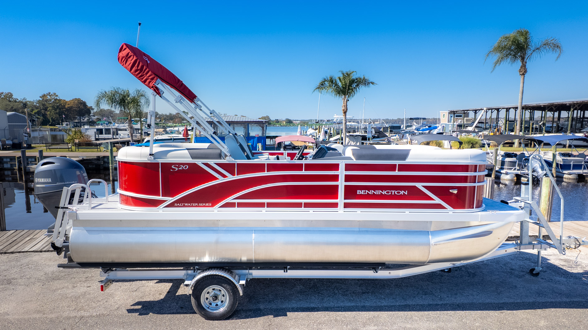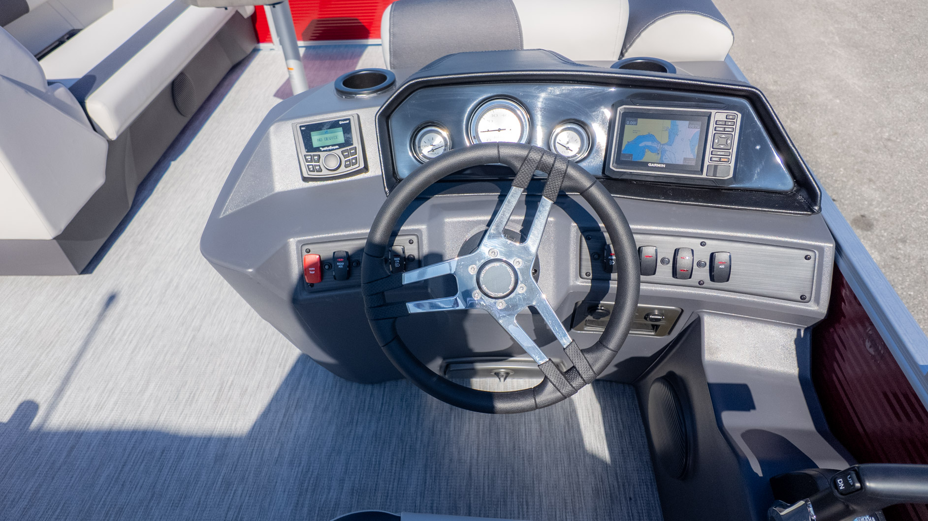 This beauty stands out with its bold color combination—an Absolute Red panel color with matching canvas, giving it a playful, eye-catching profile on the water. Driving is pure relaxation thanks to the Pure Comfort reclining captain’s chair and the S Series Versa Helm, which puts the custom Sterling gauges and polished steering wheel right where they belong. Powering the fun is a reliable Yamaha 90 horsepower four stroke outboard, perfectly matched for relaxed-pace lake explorations and getting the party started. With amenities like a wireless charger right at the console and a stowable, sculpted black table, the 20 SSR is where your most memorable days on the water begin.