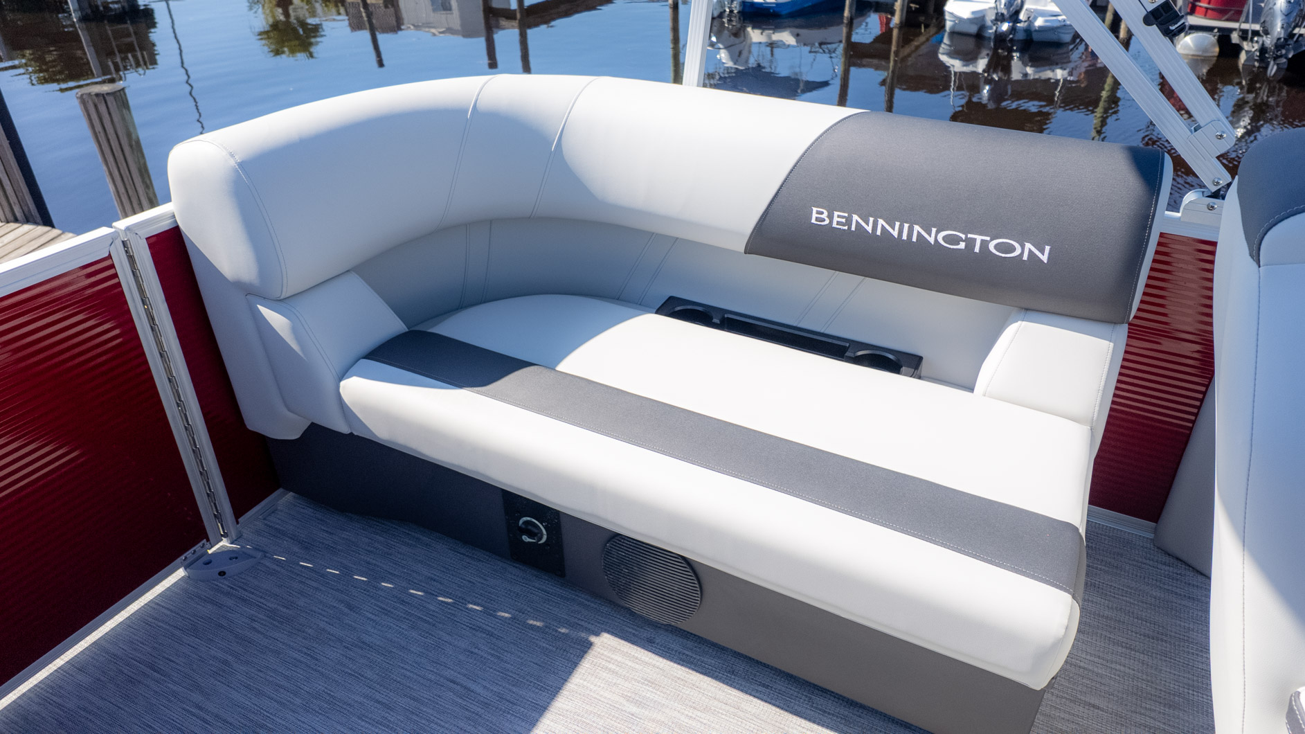 If your perfect Saturday involves sun-drenched cruising with a full crew of friends, the Bennington 20 SSR is your floating entertainment pad. This boat is custom-built for the social butterfly, offering a spacious 20-foot Quad Bench layout that maximizes seating capacity for up to ten people. Imagine everyone sinking into the Serene Soft Touch vinyl furniture, enjoying the Ironwood trim accents, and the crisp sound pumping from the new Rockford Fosgate PMX-1 Headunit.