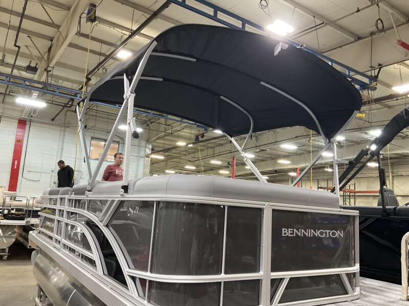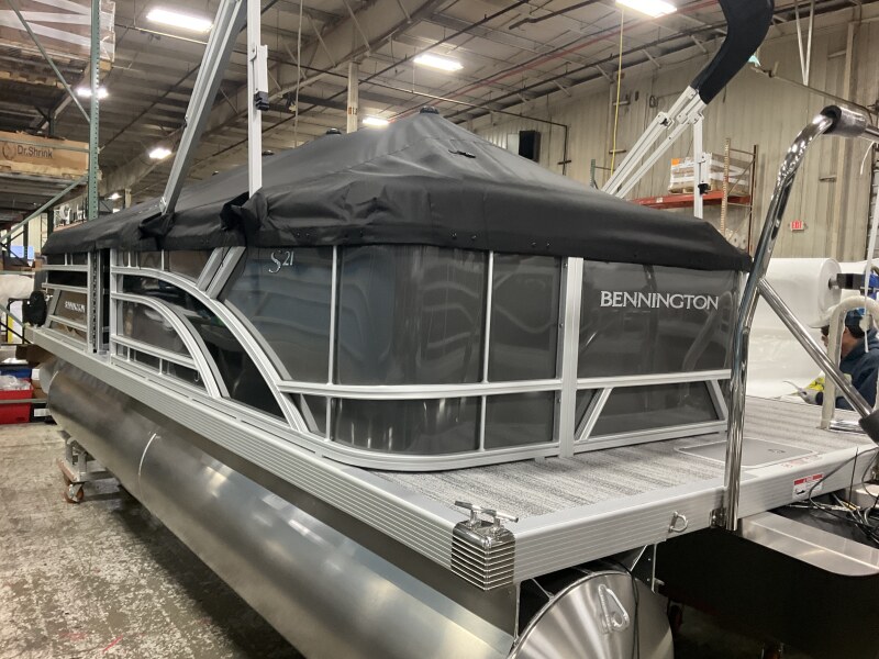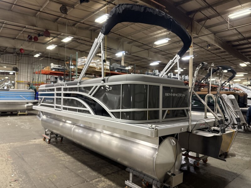 2026 Bennington 21 SL powered by a Yamaha F115LB!Factory Installed Options:Exterior- smooth anthracite with smooth gemini black accentsInterior- shadow grey with shadow grey & mythosBlack canvasS series base trim packageIronwood trim accentShoreline grey flooringLacolla steering wheelWireless chargerFiberglass consoleTable upgradeLillipad ladderTilt steeringMain display analog V3 EchomapSki tow