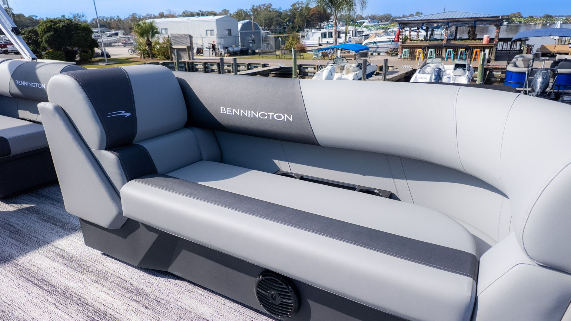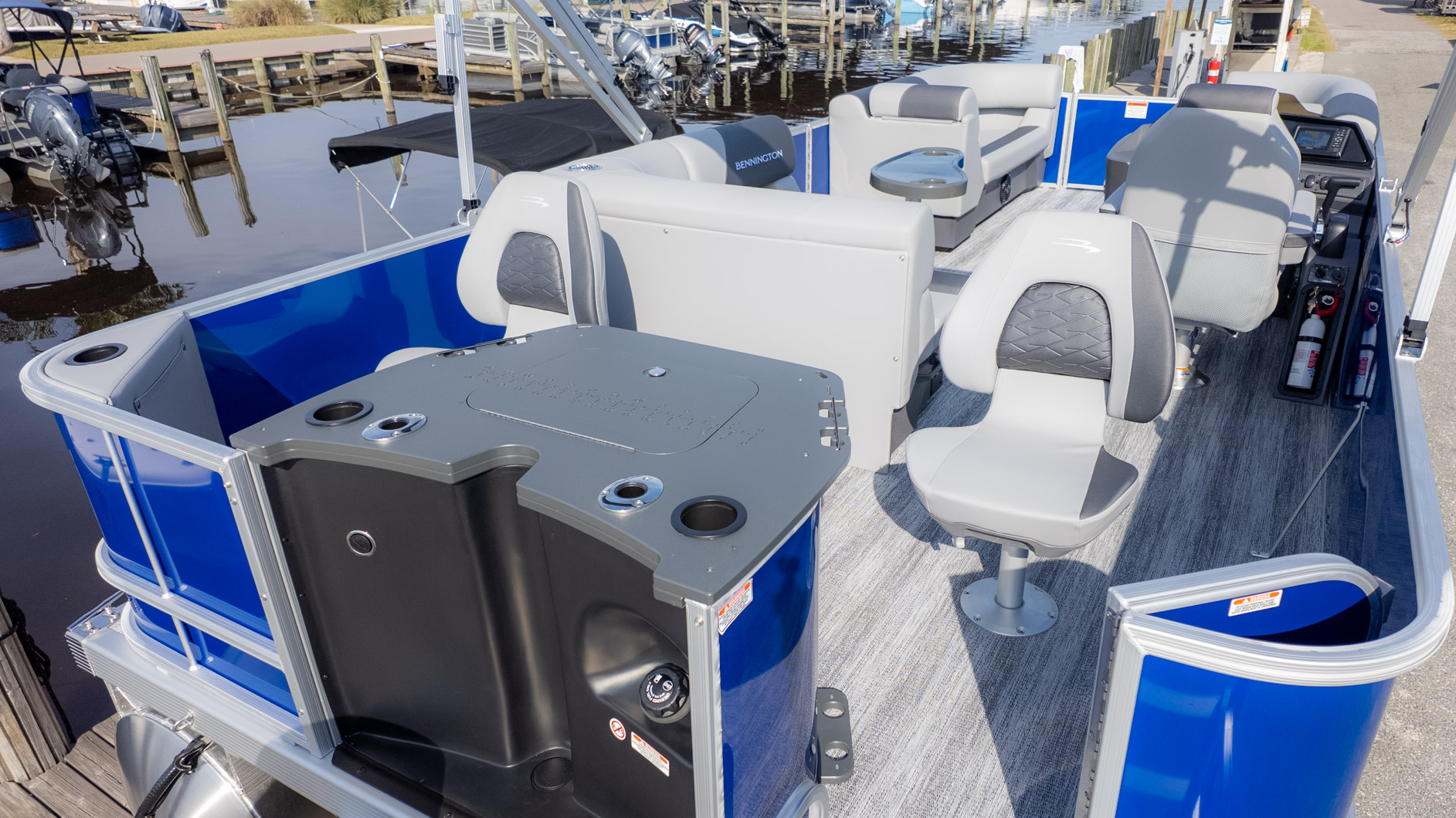 This versatile cruiser, powered by the included Yamaha 115 HP 45 VMX SHO 20 IN engine, is built for fun in the sun. The EXPRESS PKG ensures you have the performance to get you where you need to go, while the Quick Release 10 ft. Bimini Top gives you easy shade when the sun is high. The hull is rated for 10 People, making it perfect for hosting a small crowd. Details like the Shoreline Woven Vinyl Flooring and Wireless S Console Charger add a touch of everyday luxury, letting you focus on making memories on the water. With an overall length of 21′11.5′′ and a 8′6′′Beam, it’s the perfect size for easy maneuvering and comfortable lounging. This Bennington is a great choice for the social boater who wants a little fishing flavor in their fun!