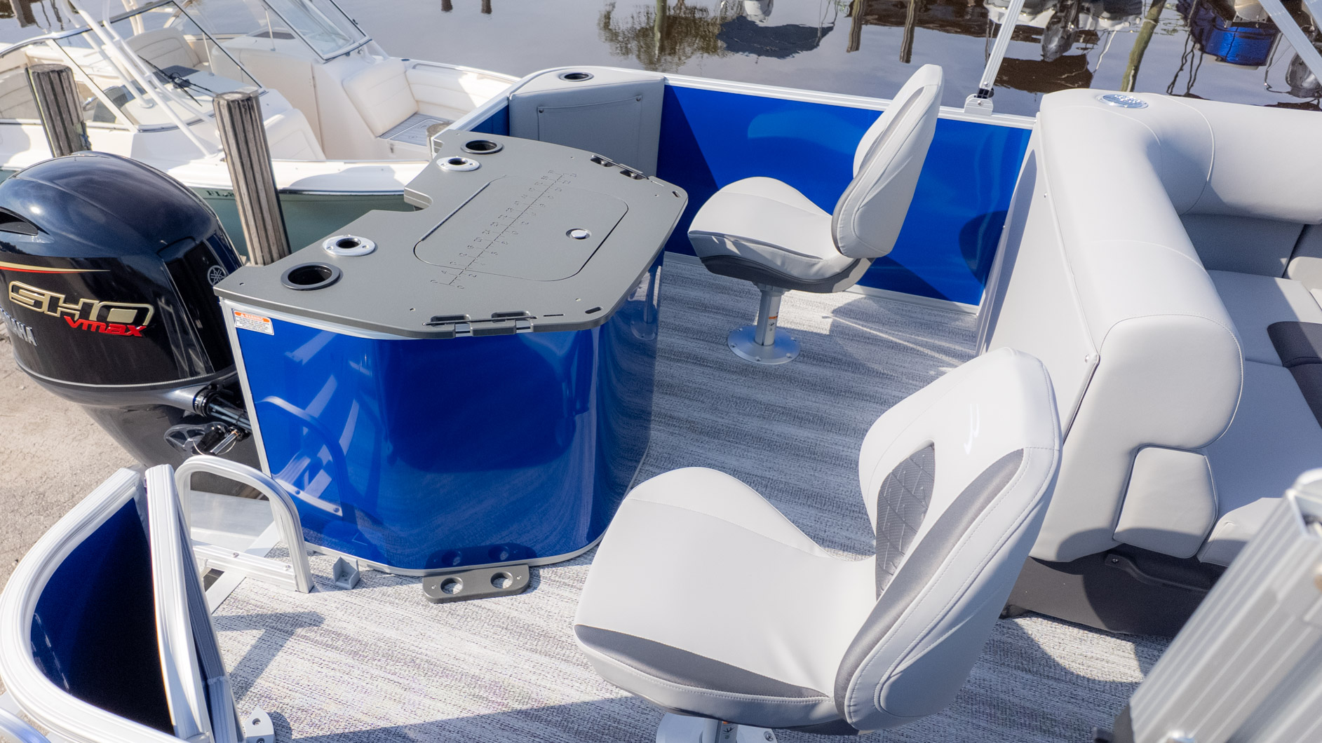 Step aboard the Bennington 21SFCSF, the ultimate party-and-pontoon-fishing hybrid! This is the boat for the family or friend group that can never quite agree on the day's activity. One minute, you're kicking back on the Serene Soft Touch Base Vinyl with Simtex Accent and enjoying the tunes from the New Rockford Fosgate PMX-1 Headunit and RM0625 Speakers. The next, you've dropped anchor, and the anglers are making use of the 2 Fishing Seats and Center Mounted Aft Livewell with Rod and Cup Holders.
