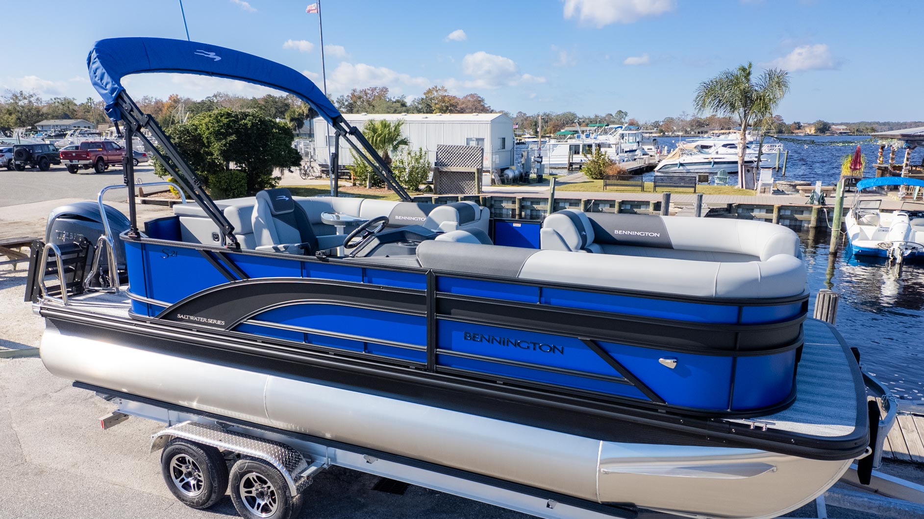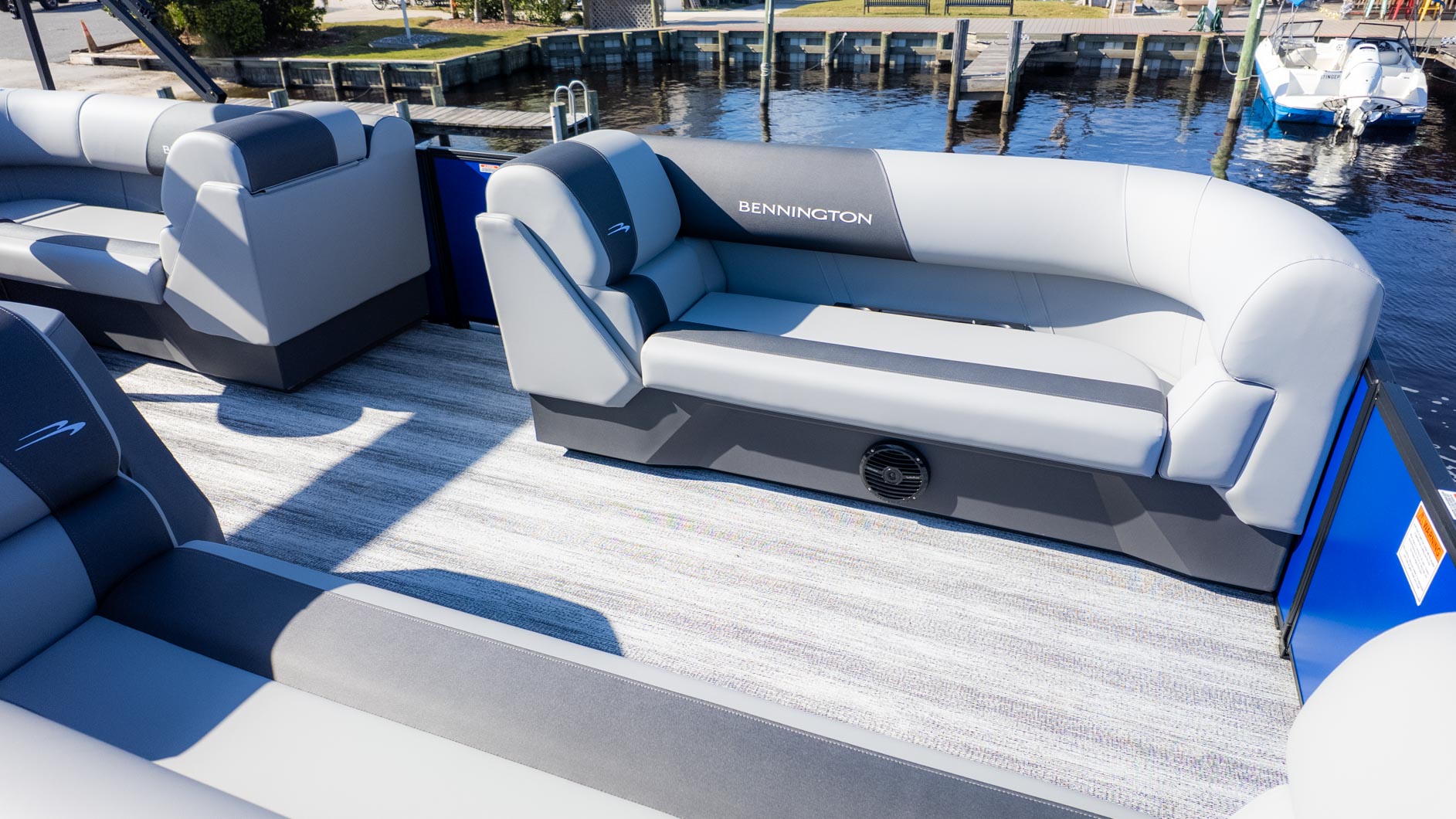 If your ideal weekend involves a seamless blend of adrenaline and pure relaxation, this 21 S Cruise is your match. Dressed to impress in Luminous Blue with sleek Matte Black accents and the Blackout Luxe package, this pontoon demands attention at the sandbar. It is built for the crew that craves versatility—powered by a Yamaha 150HP engine and supported by the Sport Performance System (SPS), it handles water sports as easily as sunset cruises.