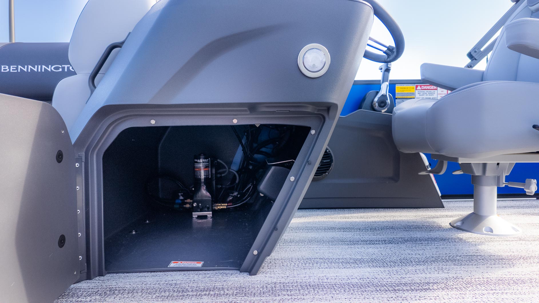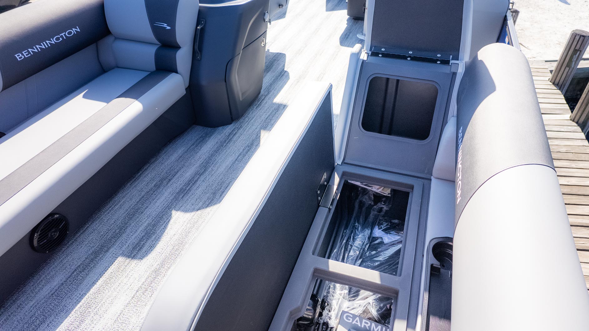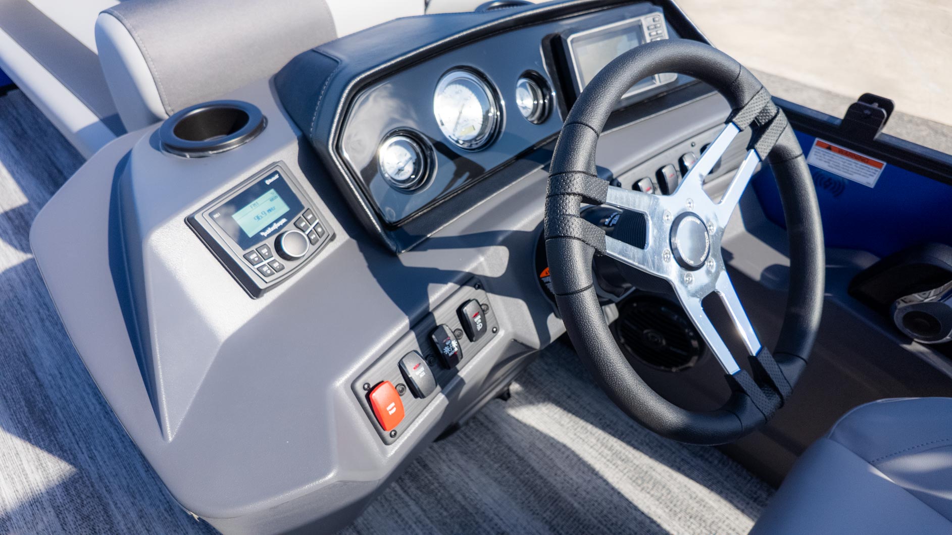 Drop the anchor and crank up the Rockford Fosgate audio system; this boat is the ultimate social hub. The layout features plush Shadow Grey vinyl and a mid-back recliner helm that begs you to stay a while. For the water bugs, the deluxe Lillipad ladder makes reboarding a breeze after a swim, while the yellow ski tow bar is ready for action. With the convenience of a sundeck privacy enclosure and porta potti, there is no reason to head back to the dock early. Whether you are blasting across the wake or soaking up rays with the Sunshine Package, this build proves you really can have it all.