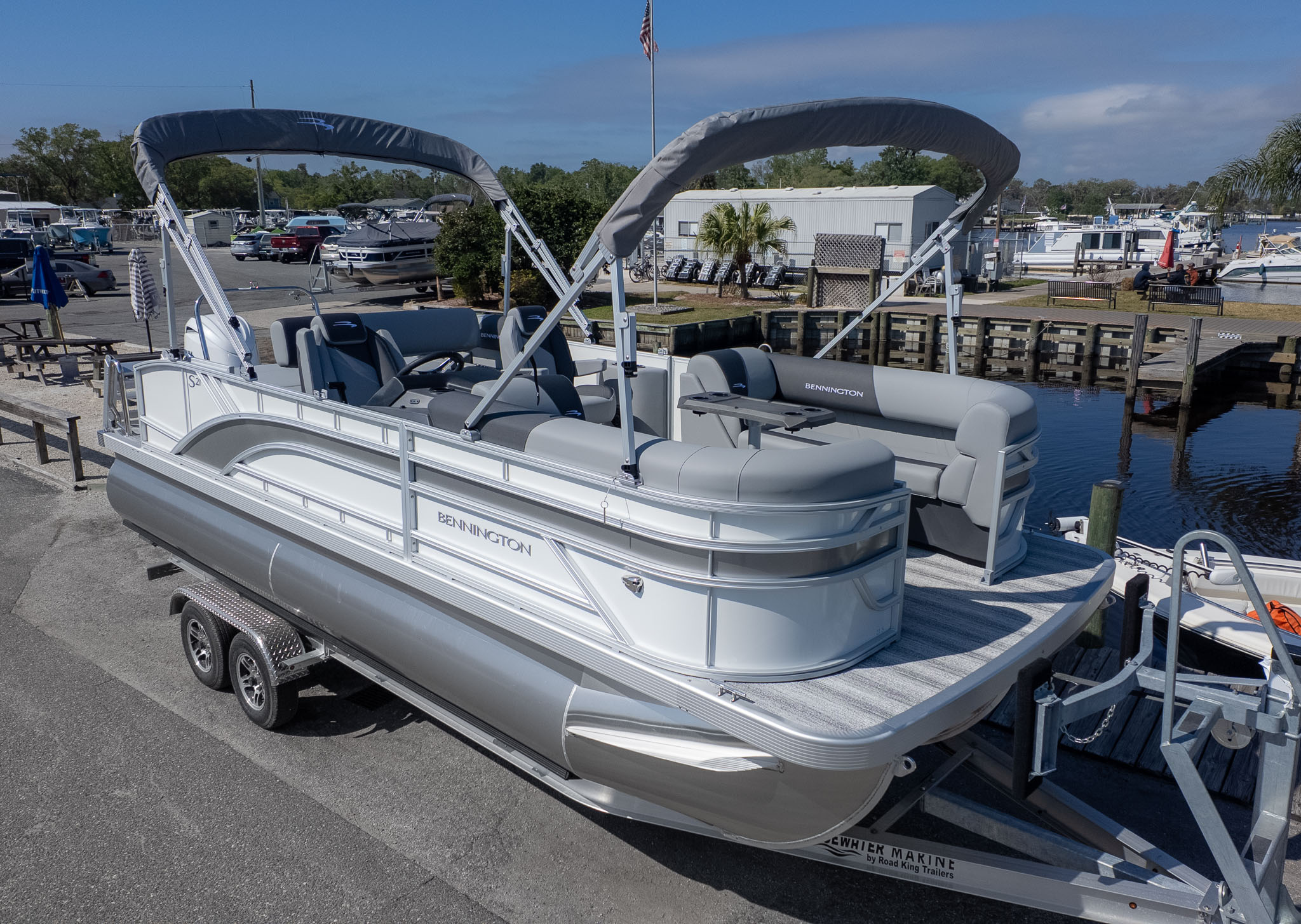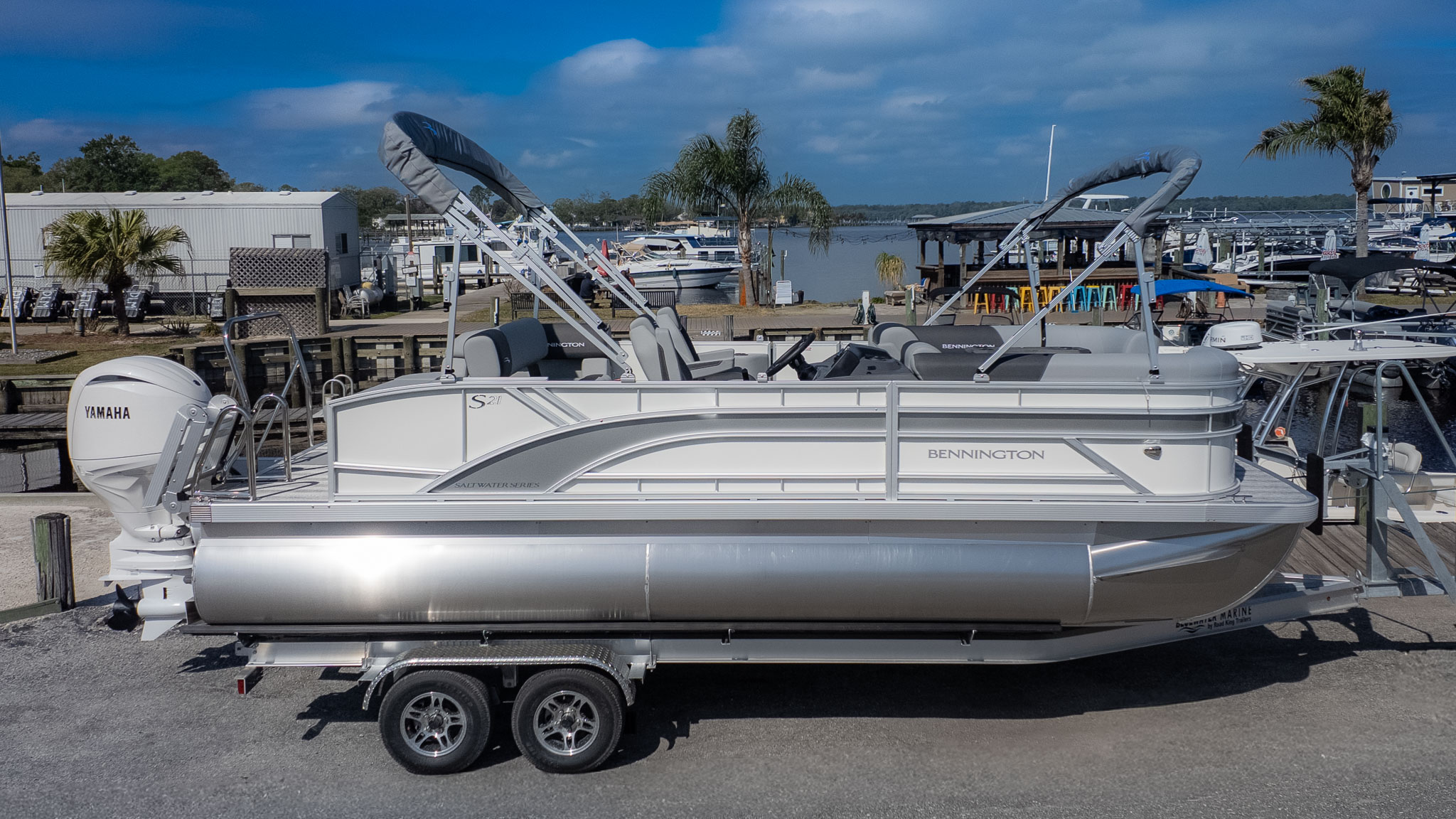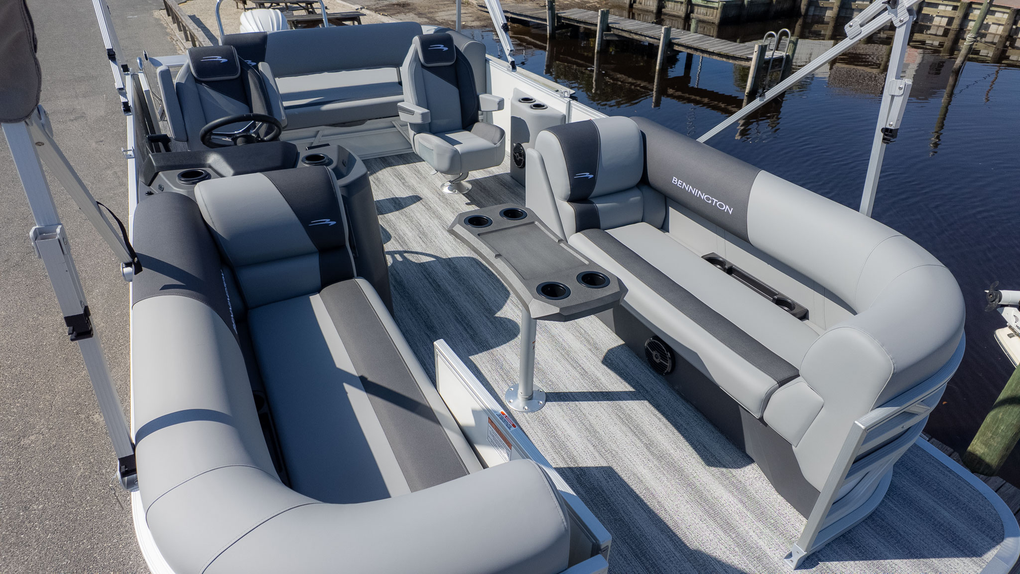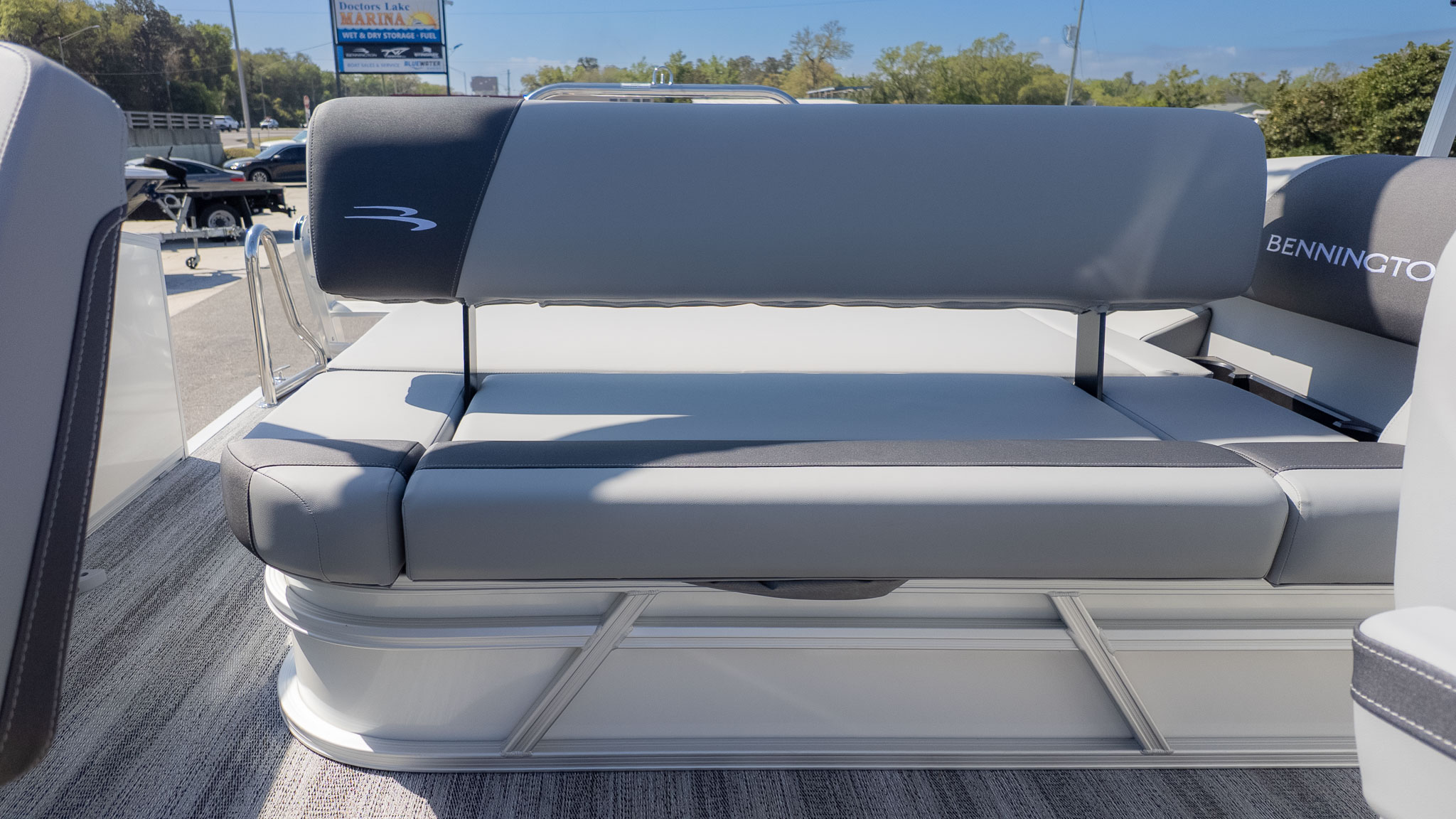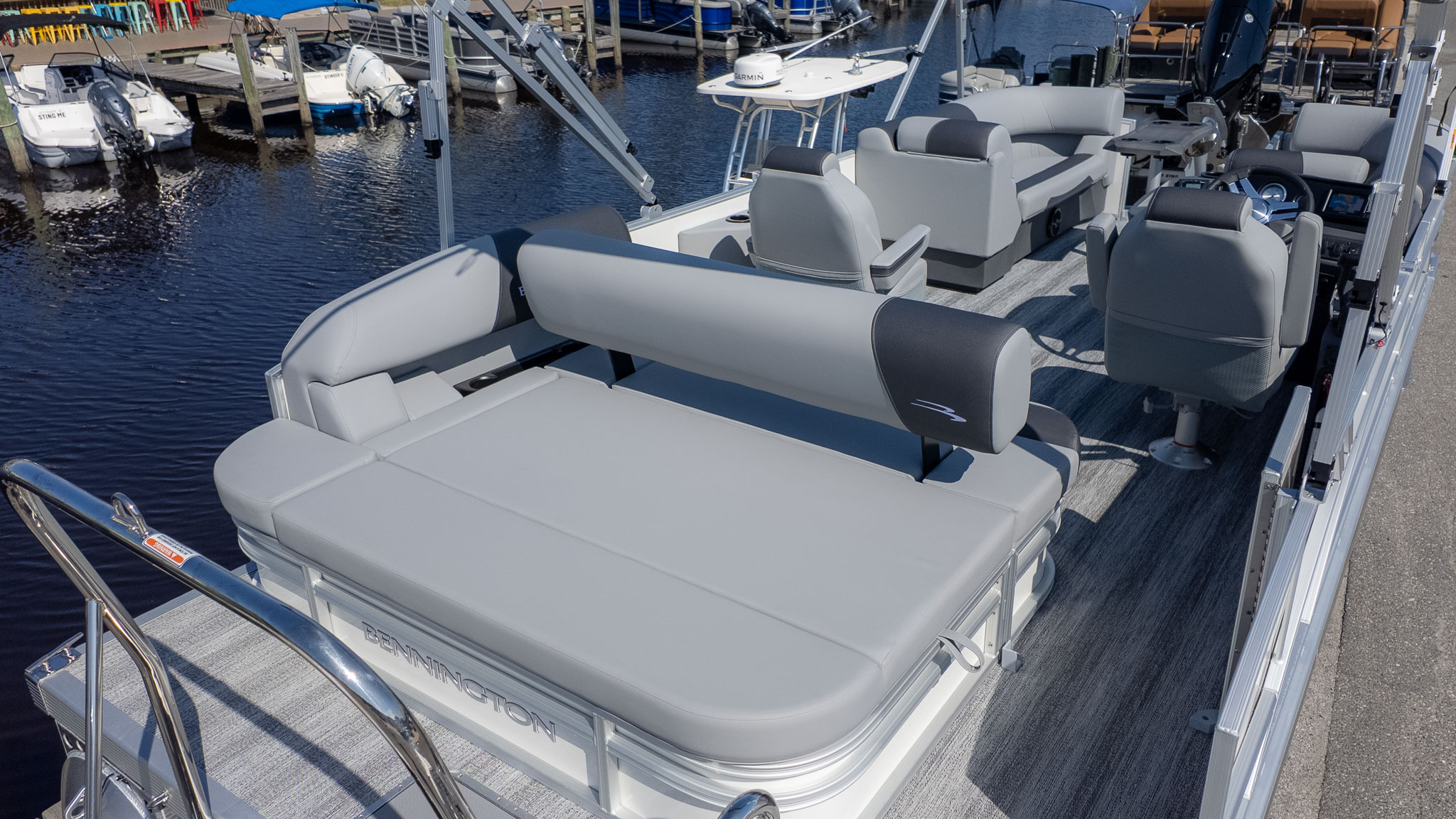 If you’re the kind of person who believes a Saturday isn't complete without a sun-soaked gathering, the Bennington 21SSB is your new best friend. This pontoon is a social butterfly’s dream, perfectly suited for the "sandbar socialites" and families who value comfort as much as a good view. The star of the show is the innovative Swingback stern lounger, which lets you flip the backrest to face forward for a breezy cruise or backward to watch the sunset over the wake.