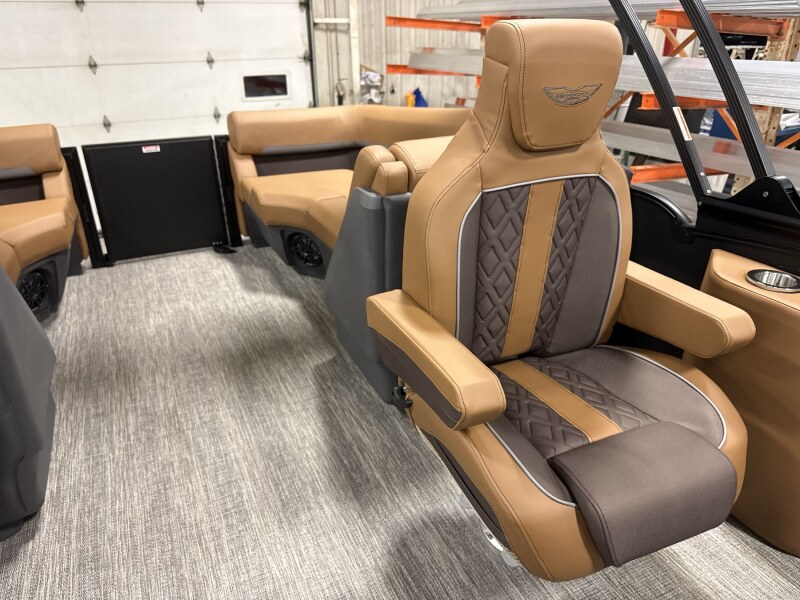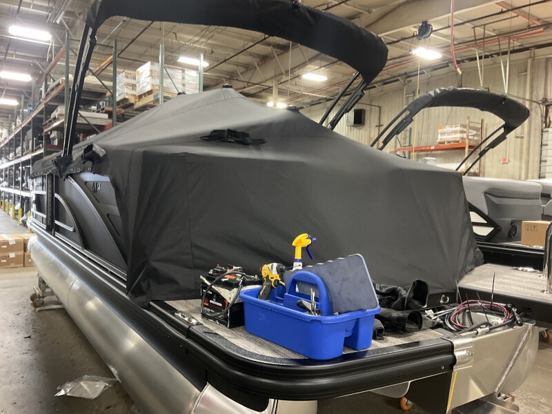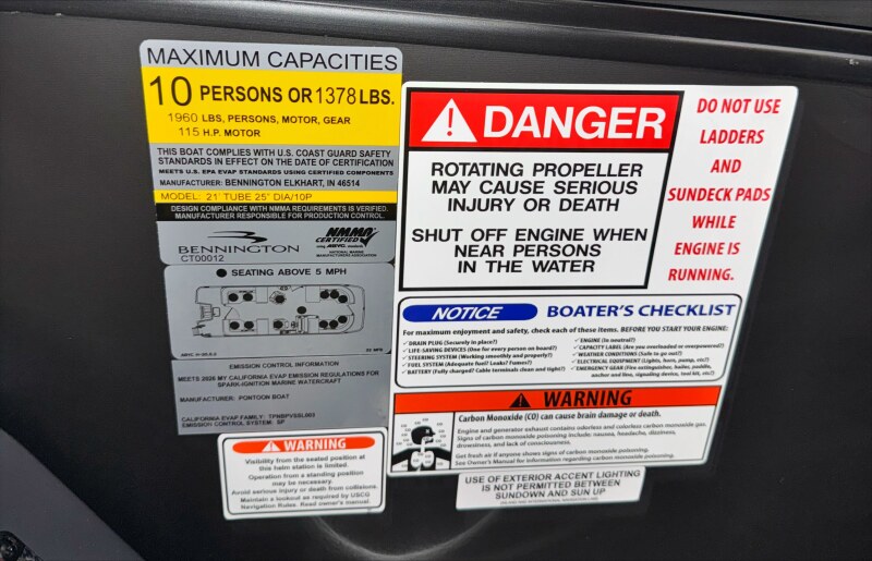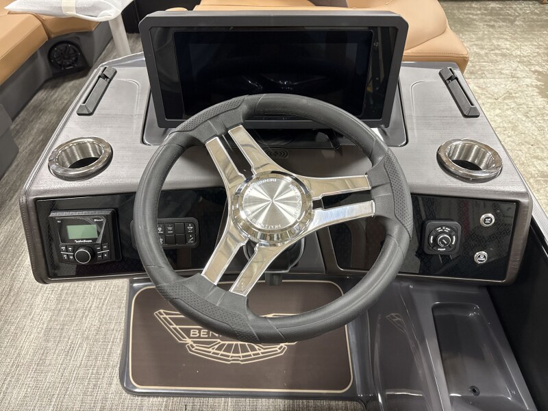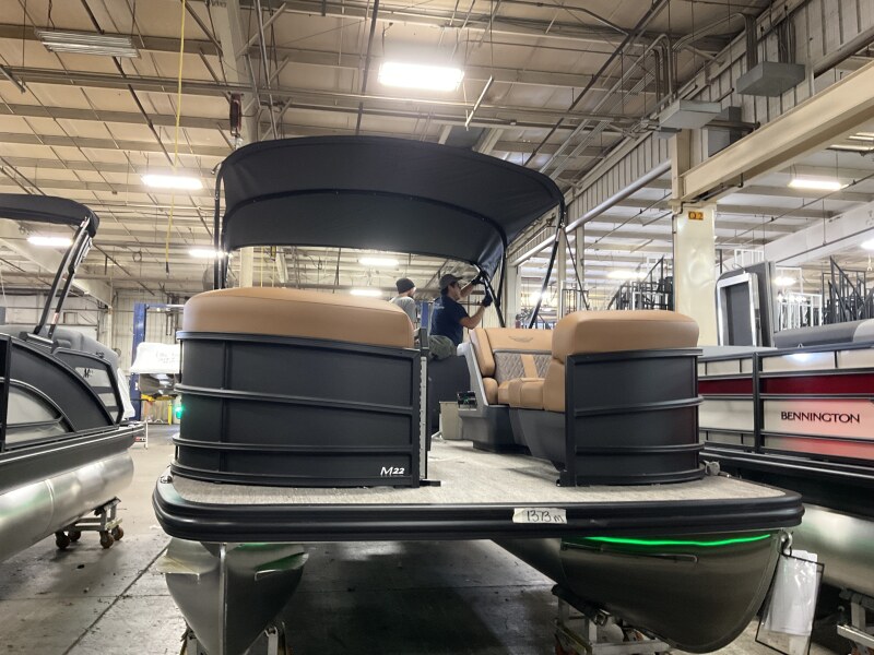 2026 Bennington 22 MFB powered by a Yamaha F115LB!Factory Installed Options:Exterior- smooth matte blackInterior- veneto 80% modesto brown with graphite simtex accentBlack canvasBlackout luxeM series base trim packageZebrawood beige trim accentShoreline taupe flooringUpgraded M1 lighted speakerConsole exchangeRGB controlExterior side lightsLumbar lightsCurved bimini topWoodgrain tableBlack rub rail insertPop up cleats in bow & aftDual battery with fuseMain display Vivid 12 12B mapSki tow