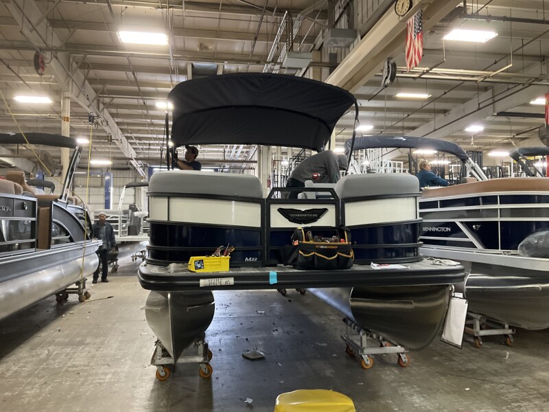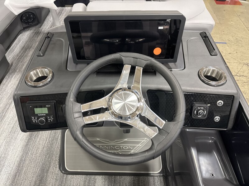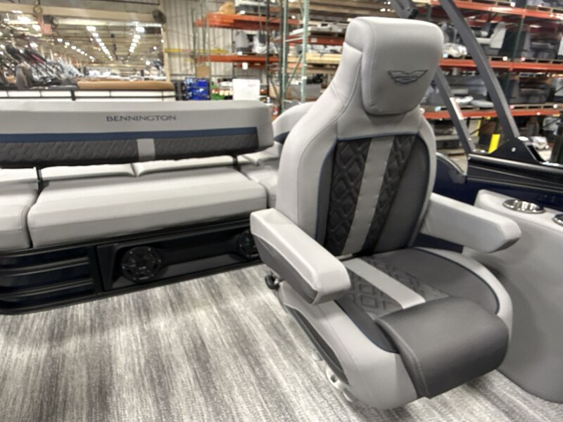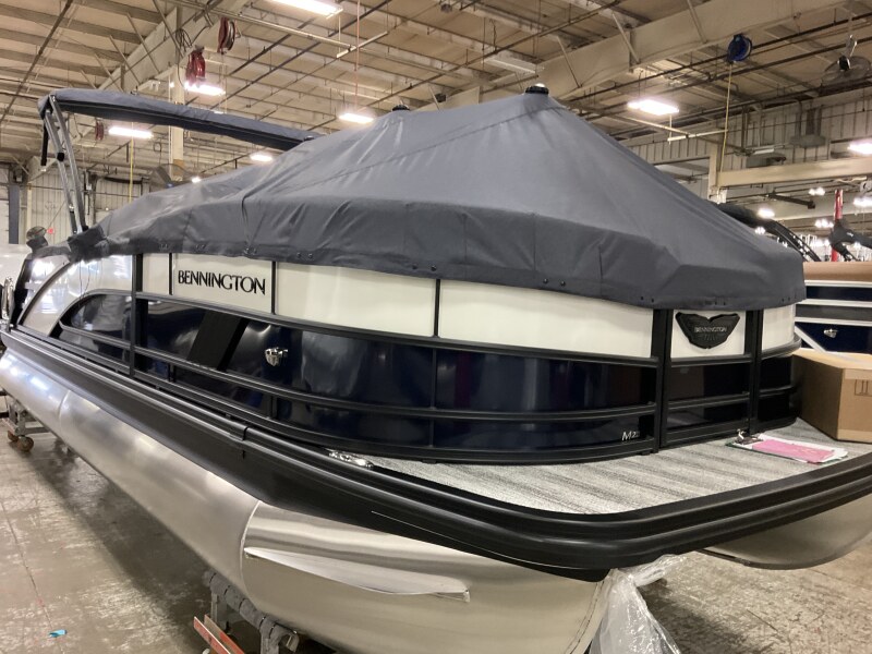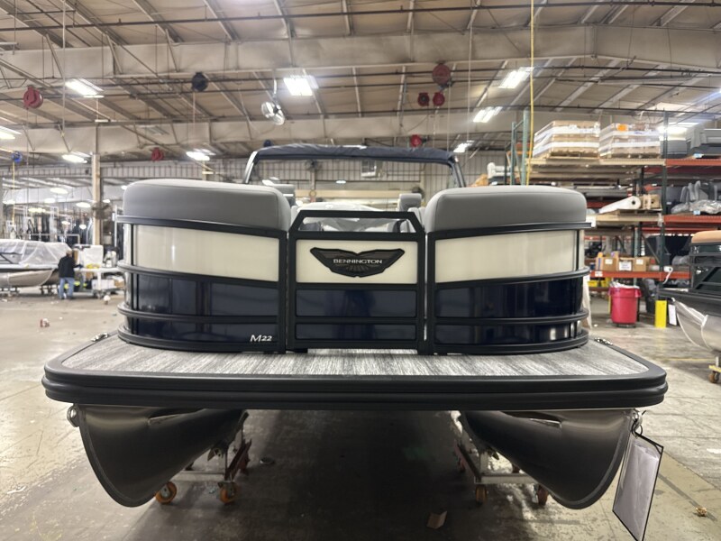 2026 Bennington 22 MSB powered by a Yamaha F115LB2!Factory Installed Options:Exterior- smooth midnight blue with smooth metallic white accentsInterior- veneto 80% graphite with midnight blue simtex accentsMidnight blue canvasBlackout luxeM series base trim packageMatte slate zebrawood trim accentsShoreline grey flooringUpgraded M1 lighted speakerRGB master controlExterior side lightsToe kick lightingLumbar lightsCurved bimini topRetractable rail keeperBlack rub rail insertPop up cleats bow & aftDual battery switchMain display Vivid 12 12B MapSki tow
