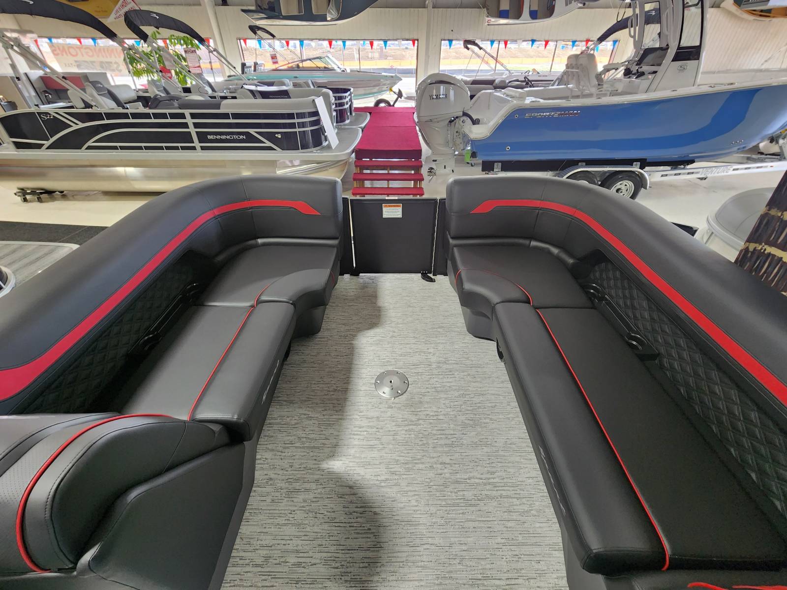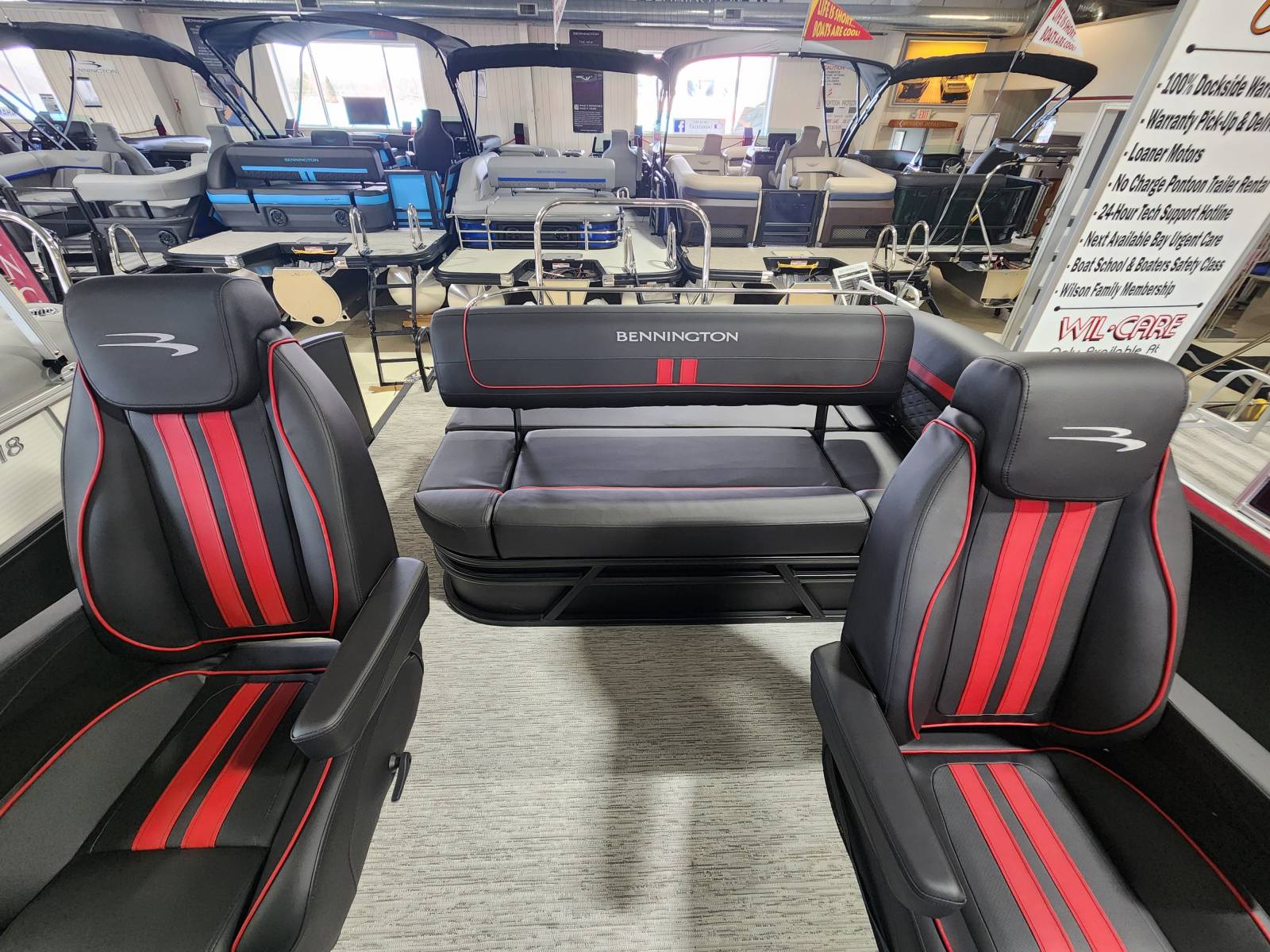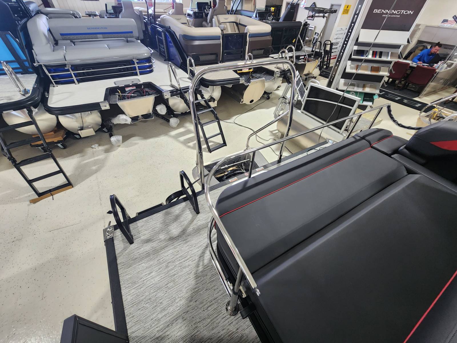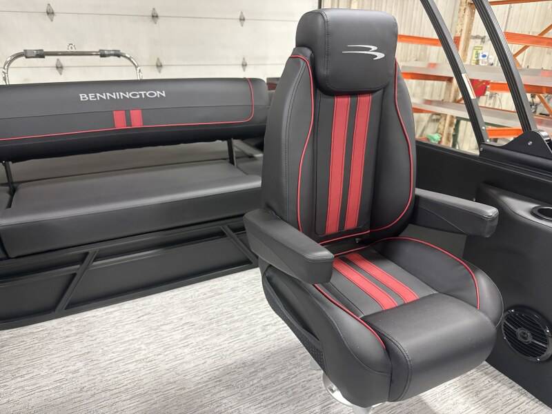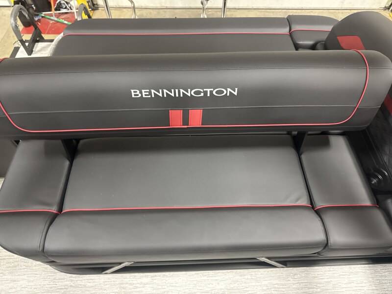 2026 Bennington 22 SSB powered by a Mercury 115ELPT PXS!Factory Installed Options:Exterior- smooth matte blackInterior- sport veneto black with absolute red simtex accentBlack canvasBlackout luxeS series sport trim packageIronwood trim accentValencia grey flooringGlass windscreenWireless chargerLacolla steering wheelCurved biminiFiberglass consoleRetractable rail keeperBlack rub rail insertSwitching FG medallion 12B 8.5WMain display FG Medallion 7Ski tow