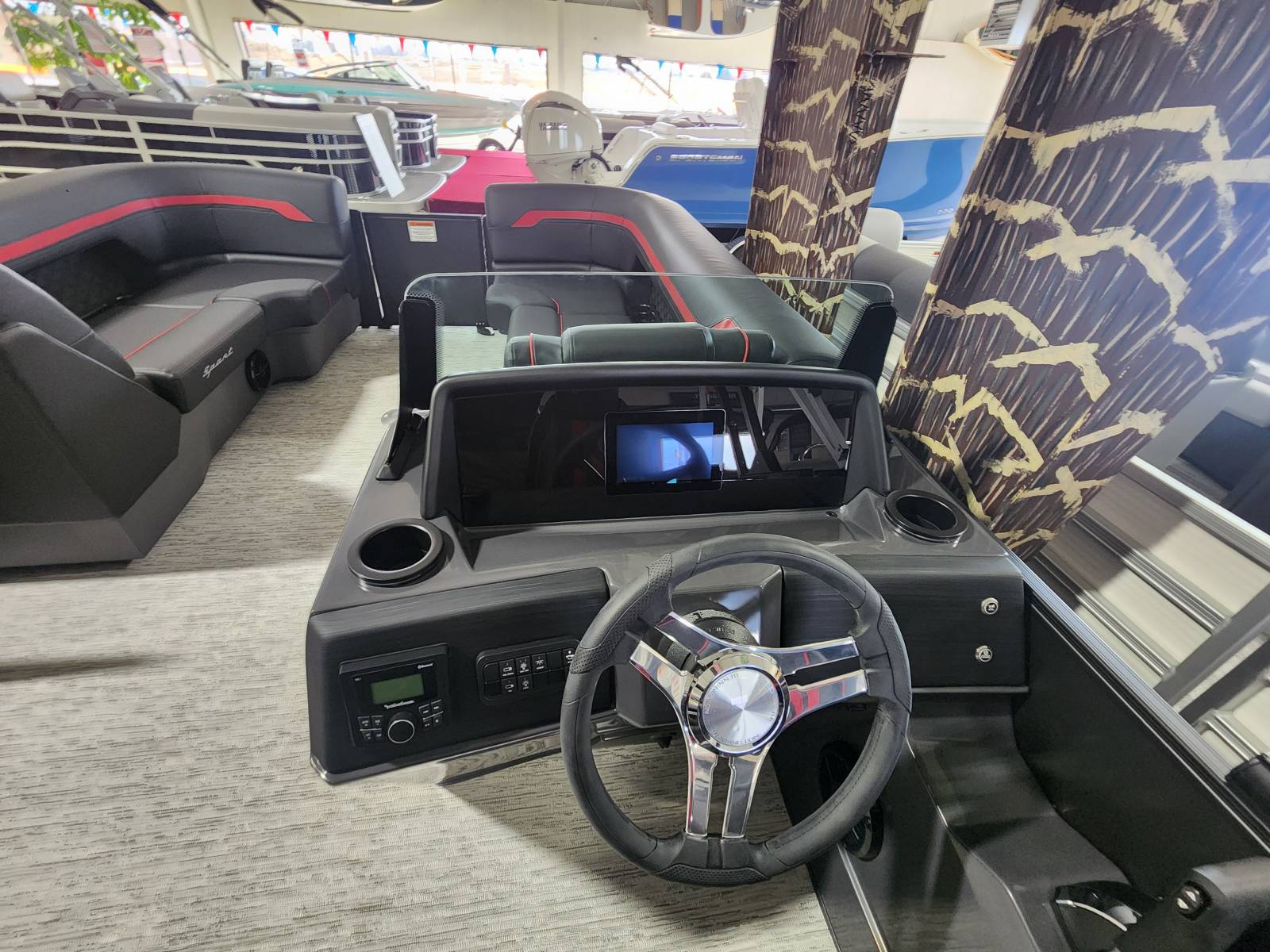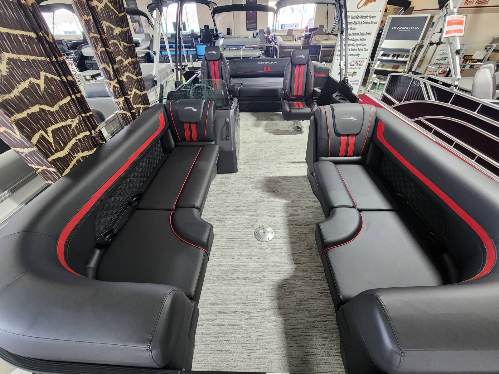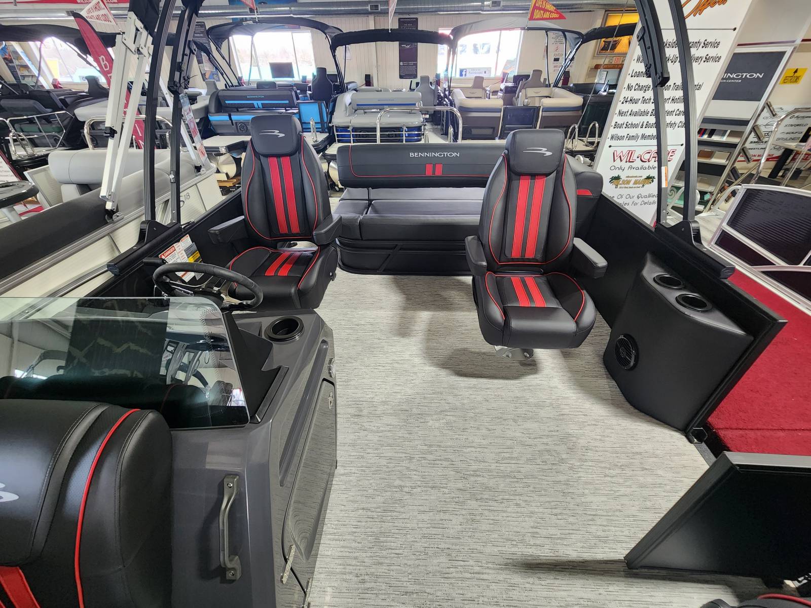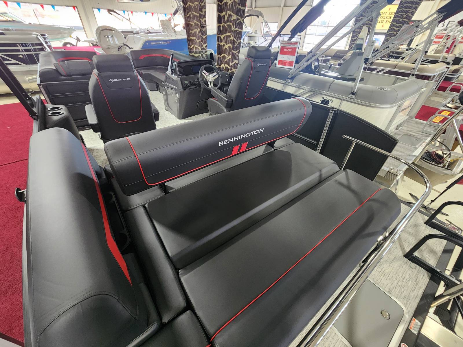2026 Bennington 22 SSB powered by a Mercury 115ELPT PXS!Factory Installed Options:Exterior- smooth matte blackInterior- sport veneto black with absolute red simtex accentBlack canvasBlackout luxeS series sport trim packageIronwood trim accentValencia grey flooringGlass windscreenWireless chargerLacolla steering wheelCurved biminiFiberglass consoleRetractable rail keeperBlack rub rail insertSwitching FG medallion 12B 8.5WMain display FG Medallion 7Ski tow