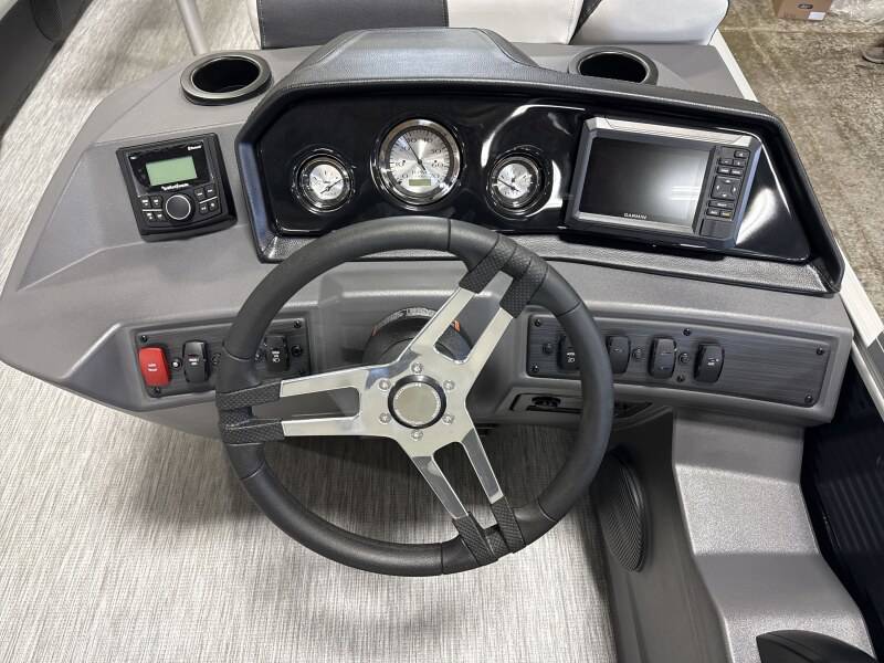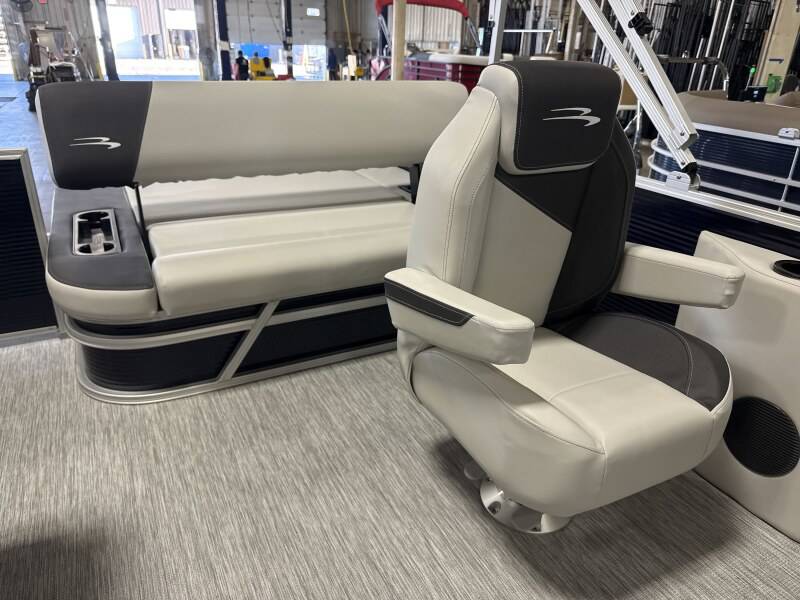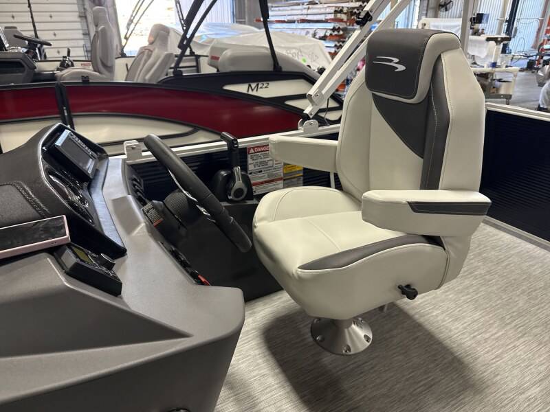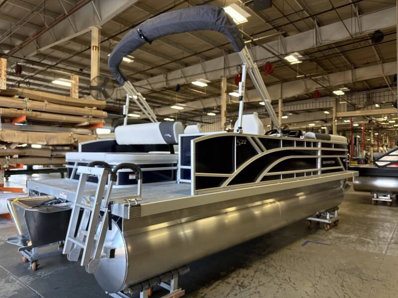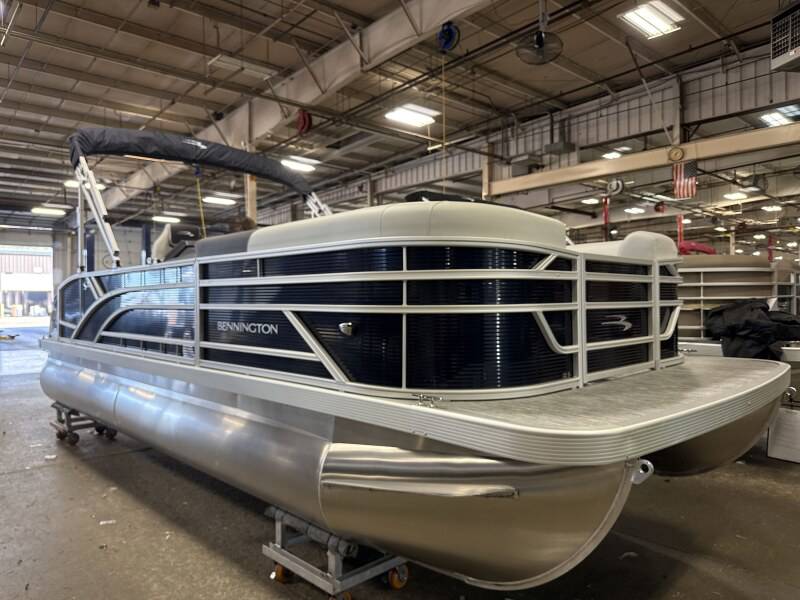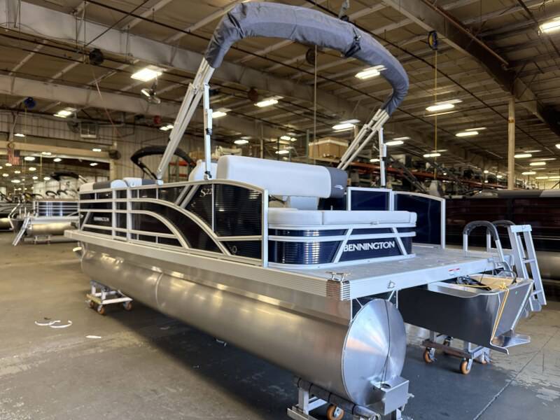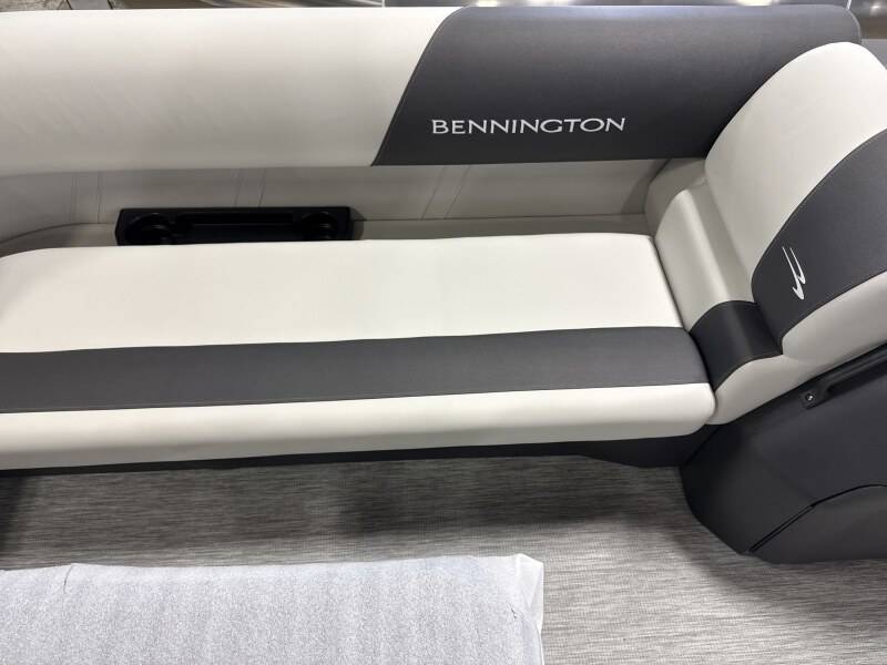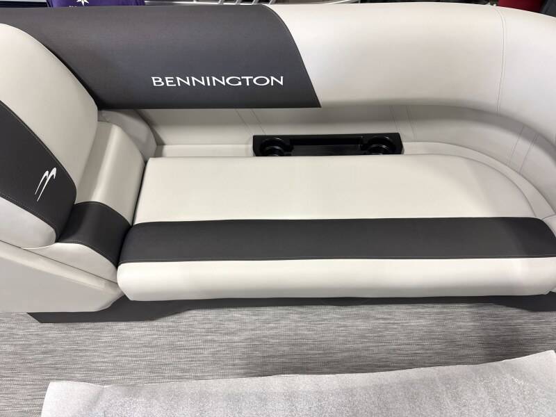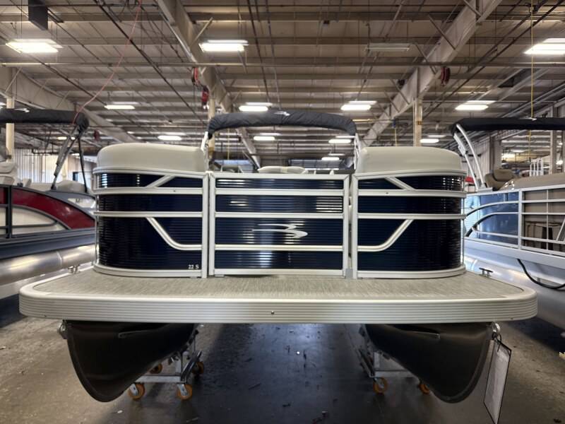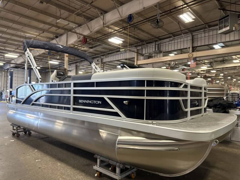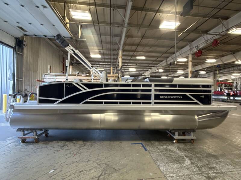 2026 Bennington 22 SSB powered by a Yamaha F90LB!Factory Installed Options:Exterior- midnight blueInterior- leon light silver with slate simtex accentsMidnight blue canvasS series trim packageIronwood trim packageImpulse mineral grey flooringWireless chargerMain display analog V3 Echomap