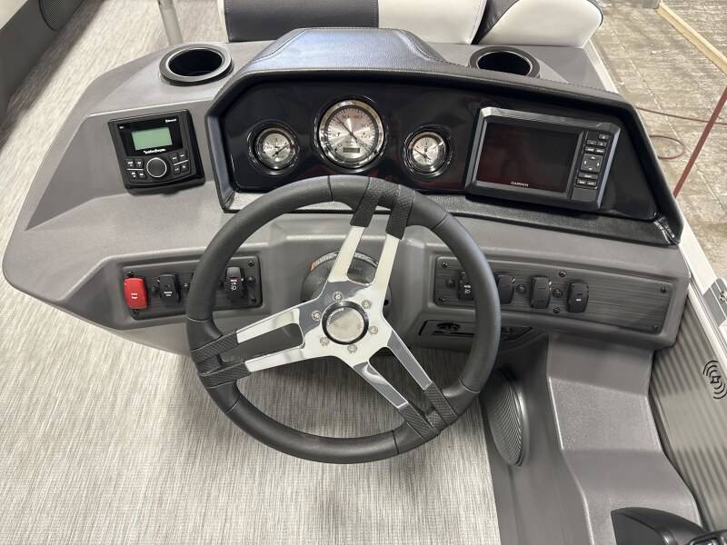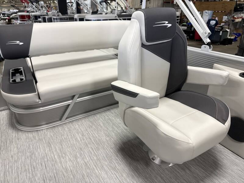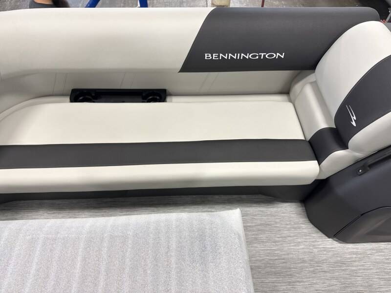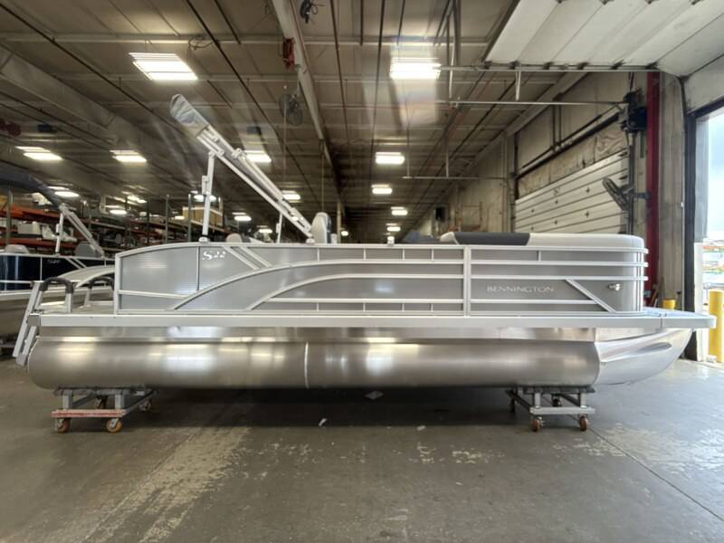 2026 Bennington 22 SSB powered by a Yamaha F90LB!Factory Installed Options:Exterior- metallic silverInterior- leon light silver with slate simtex accentsMetallic silver canvasS series trim packageIronwood trim accentImpulse mineral grey flooringWireless chargerMain display analog V3 Echomap
