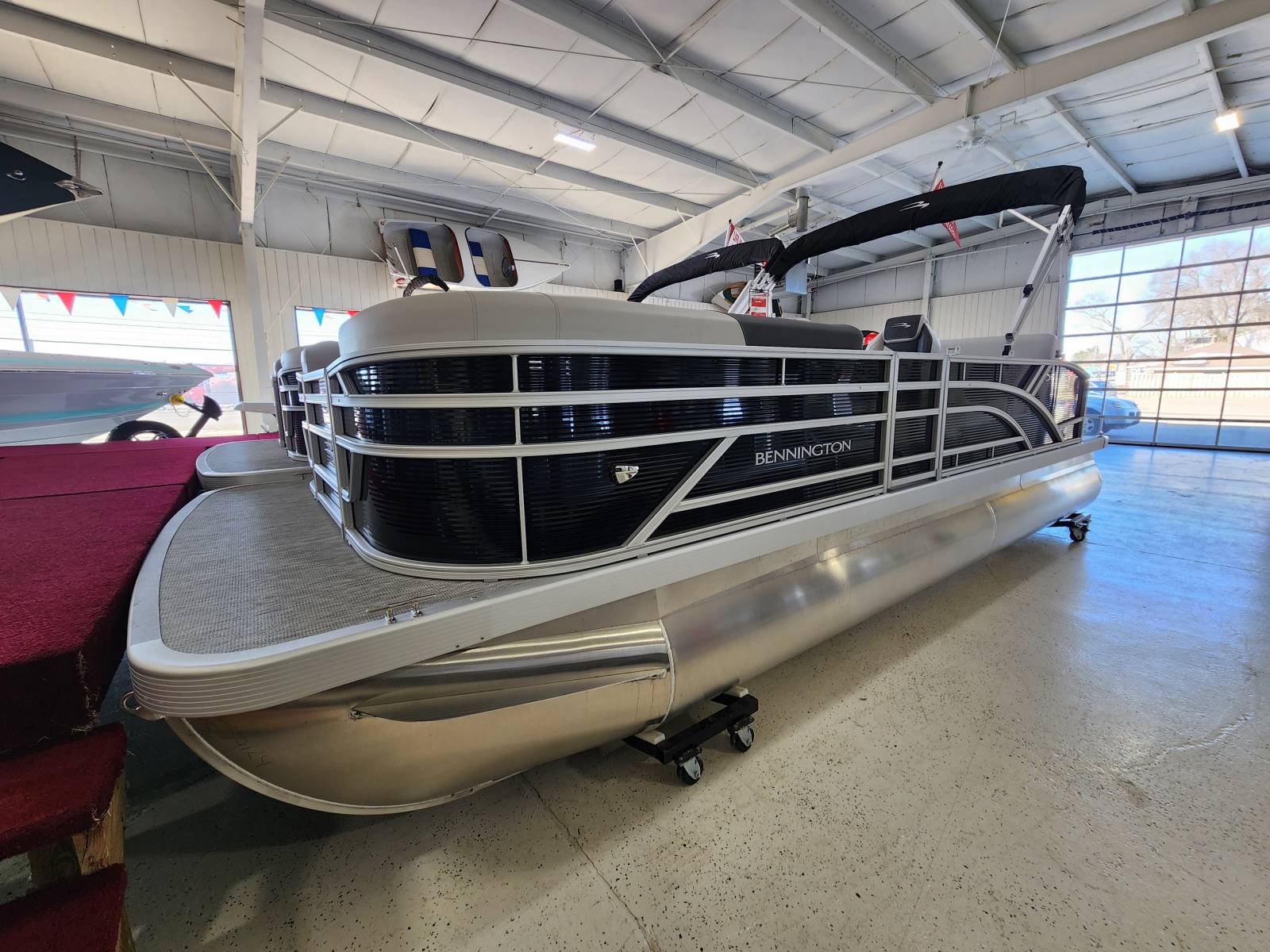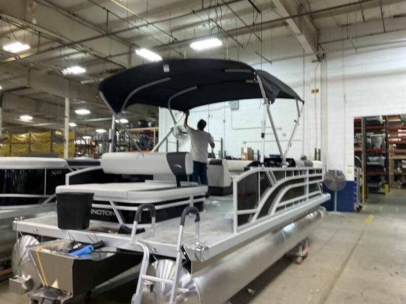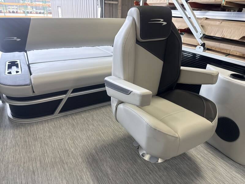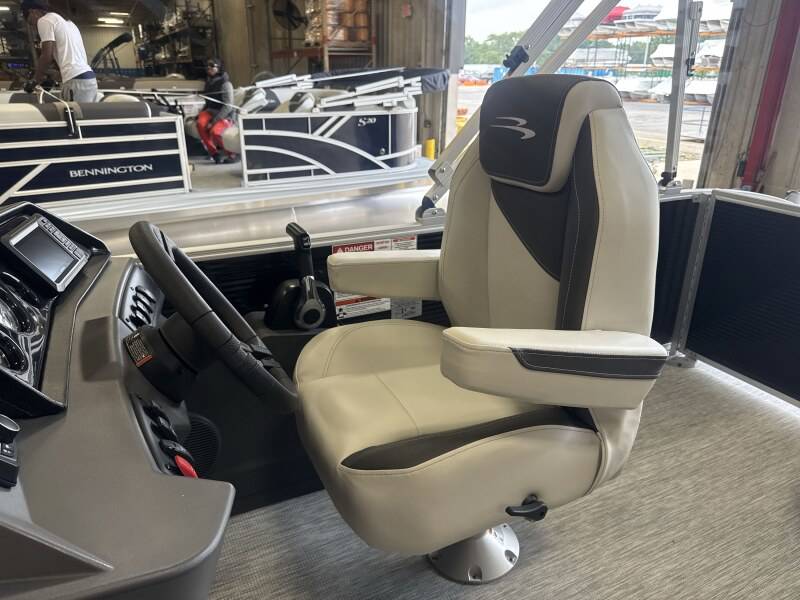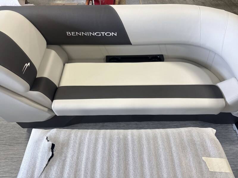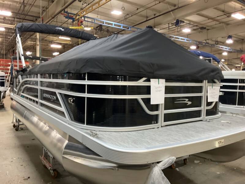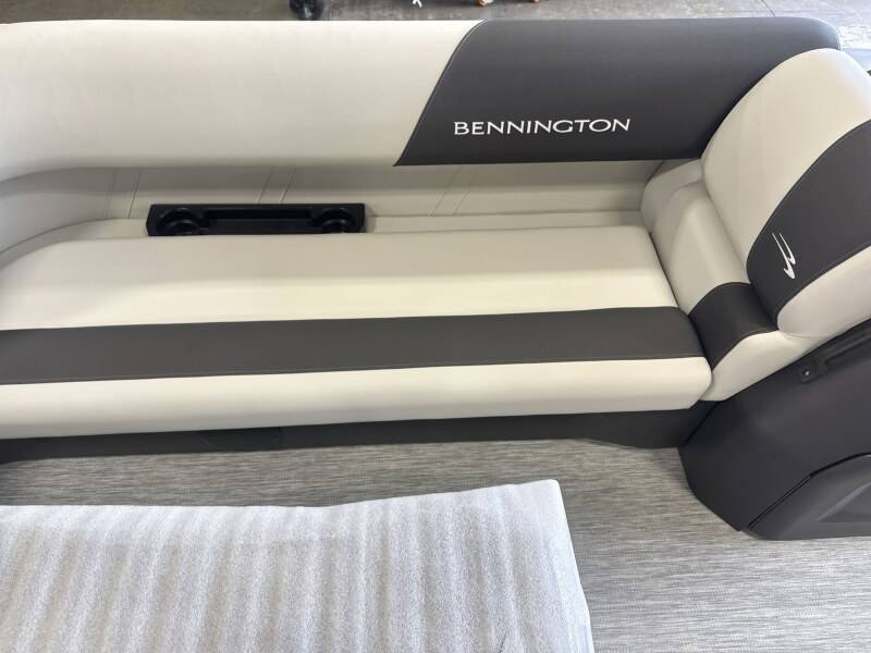 2026 Bennington 22 SSB powered by a Yamaha F90LB!Factory Installed Options:Exterior- gemini blackInterior- leon light silver with slate simtex accentsBlack canvasS series trim packageIronwood trim accentImpulse mineral grey flooringWireless chargerMain display analog V3 Echomap