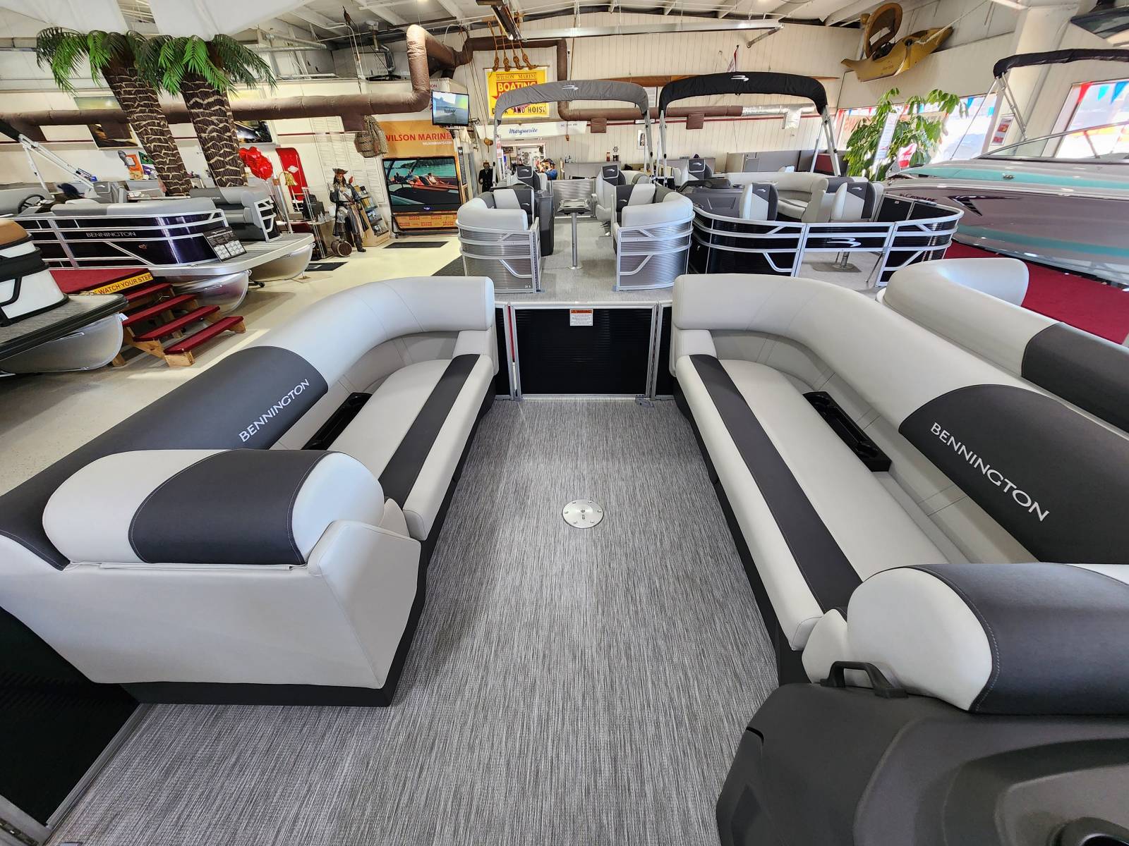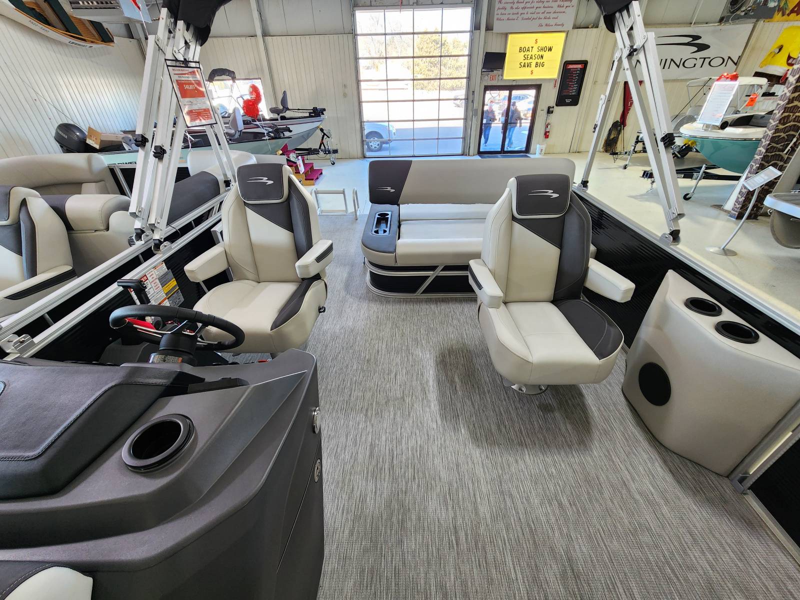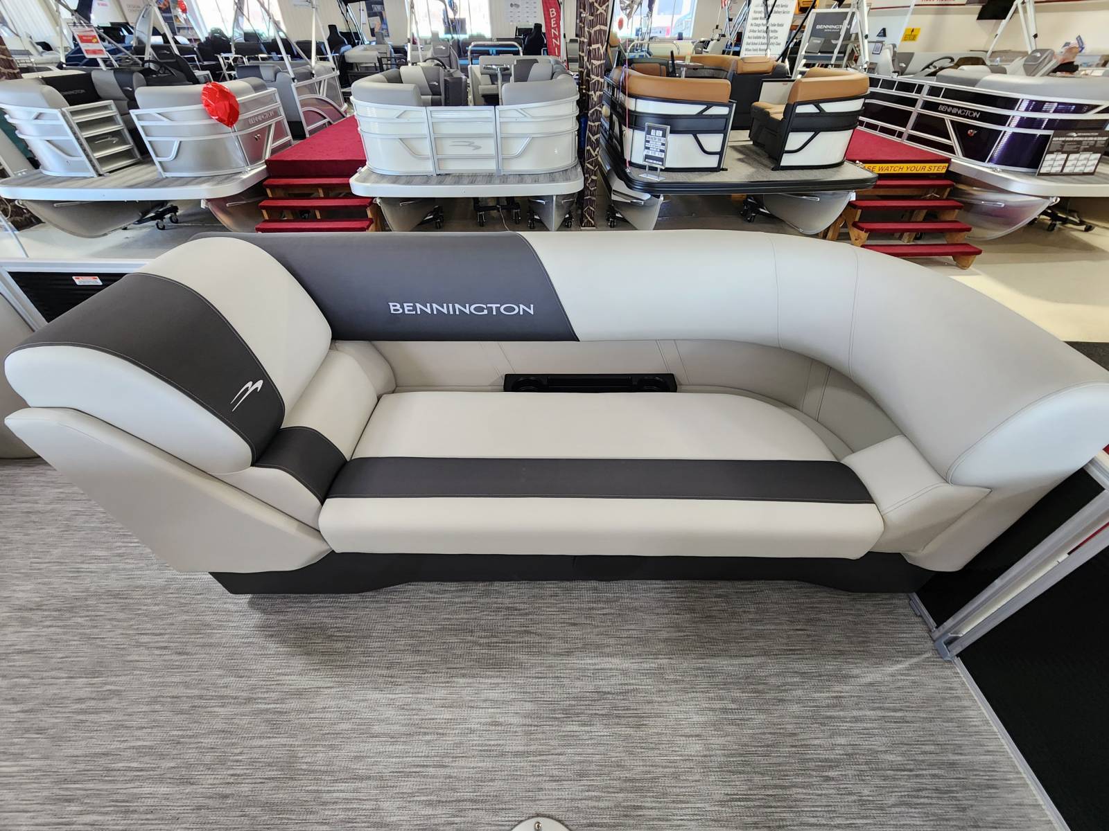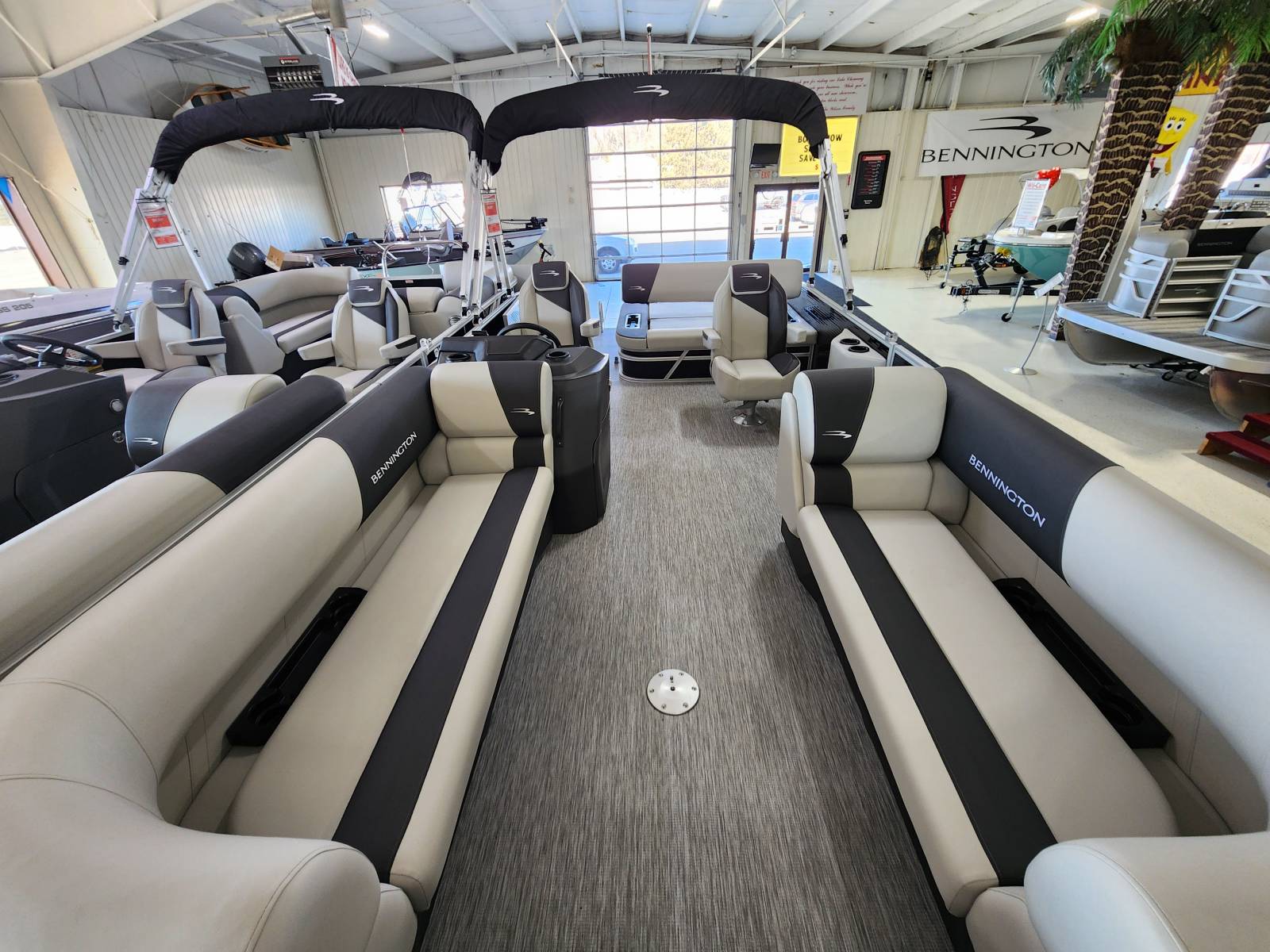 2026 Bennington 22 SSB powered by a Yamaha F90LB!Factory Installed Options:Exterior- gemini blackInterior- leon light silver with slate simtex accentsBlack canvasS series trim packageIronwood trim accentImpulse mineral grey flooringWireless chargerMain display analog V3 Echomap