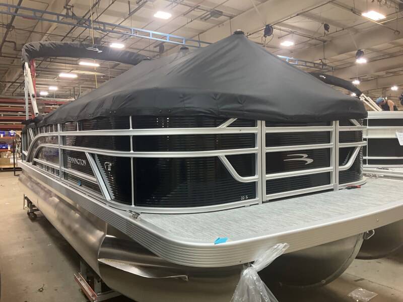 2026 Bennington 22 SSB powered by a Yamaha F150XD!Factory Installed Options:Exterior- gemini blackInterior- leon light silver with slate accentBlack canvasIronwood trim accentsImpulse mineral grey flooringWireless chargerSPS package with transom direct fill 33 gallonsMain display analog V3 Echomap