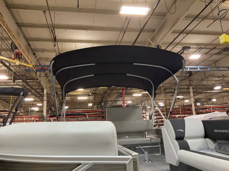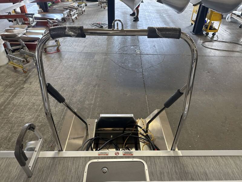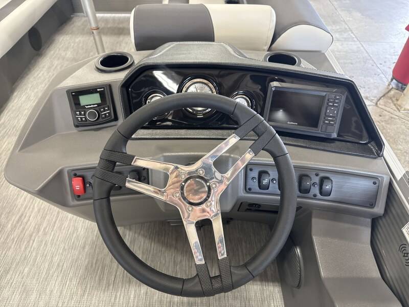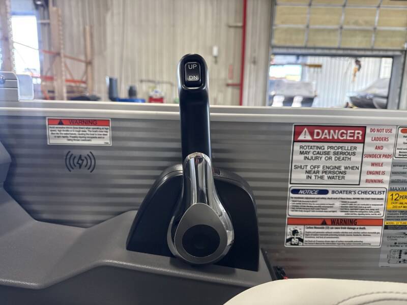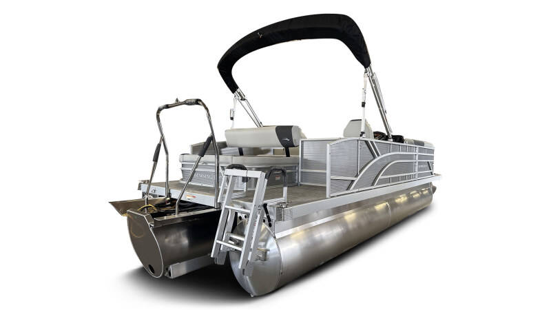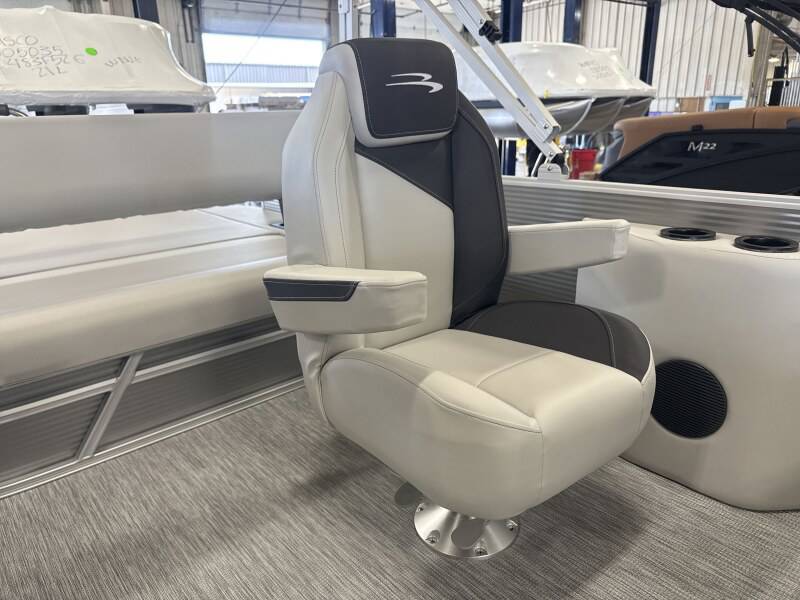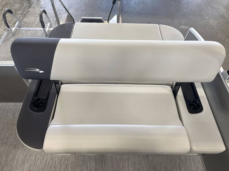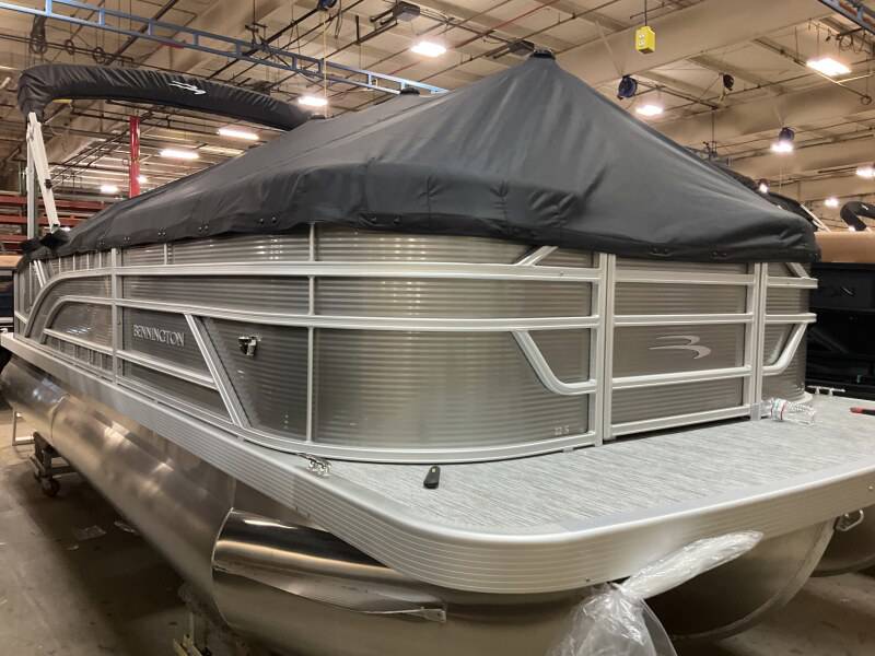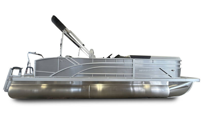 2026 Bennington 22 SSB powered by a Yamaha F150XD!Factory Installed Options:Exterior- metallic silverInterior- leon light silver with slate simtex accentsBlack canvasIronwood trim accentImpulse mineral grey flooringWireless chargerSPS package transom direct fill 33 gallonsMain display analog V3 Echomap