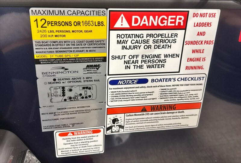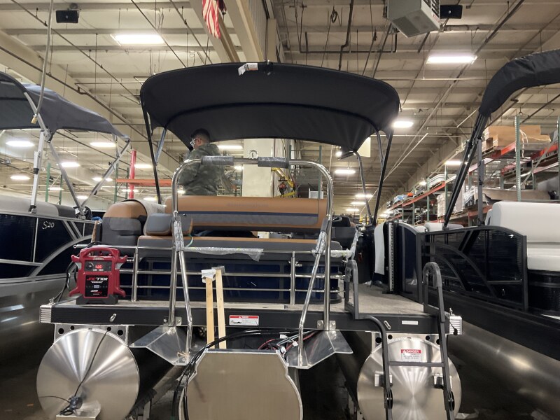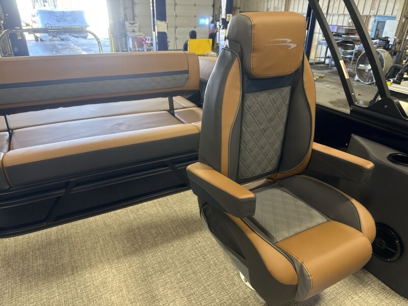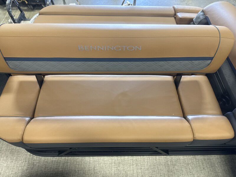 2026 Bennington 22 SSB powered by a Yamaha F150XD!Factory Installed Options:Exterior- smooth midnight blueInterior- veneto modesto brown with midnight blue simtexBlack canvasBlackout luxeS series base trim packageIronwood trim accentValencia taupeGlass windscreenWireless chargerLacolla steering wheelCurved bimini topFiberglass consoleRetractable keeper railBlack rub rail insertSPS 22' transom direct fill 33 galCenter storageSki tow