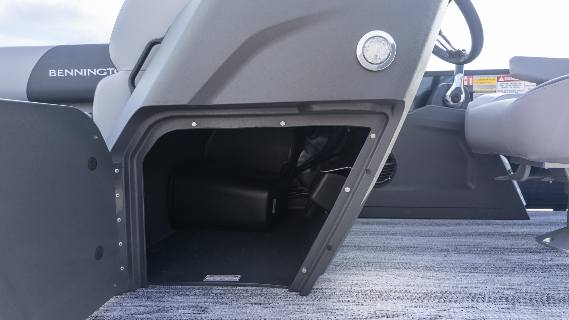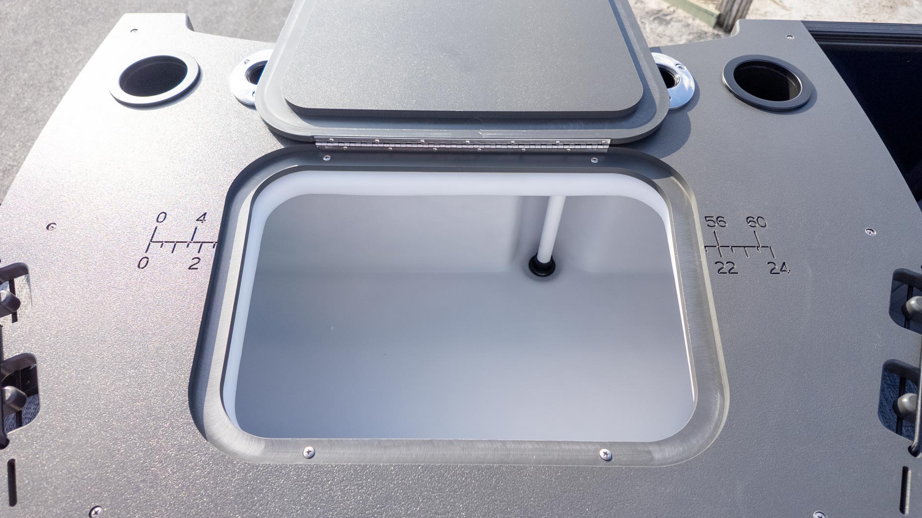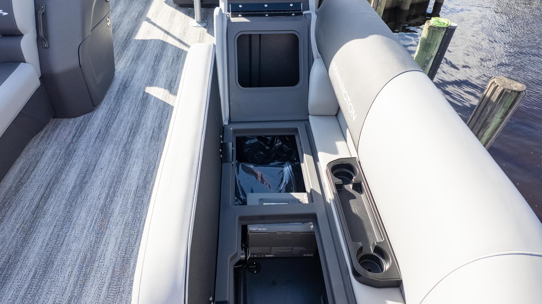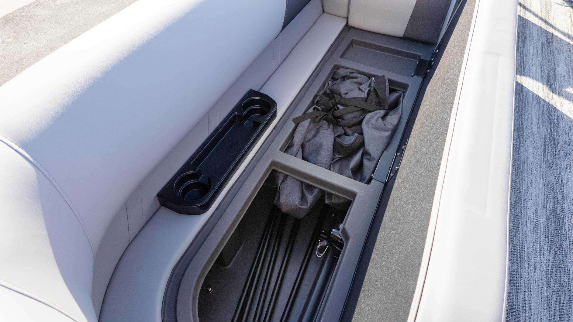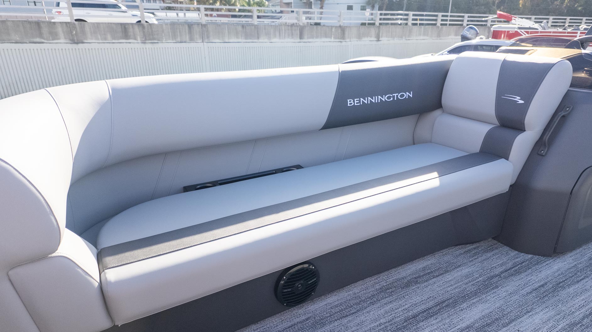 Business stays in the back with a dedicated pro-angler station featuring a center-mounted livewell, rod holders, and dual fishing seats perfect for tracking that early morning catch. But up front, it’s all about the party. A plush chaise lounge wrapped in Shadow Grey vinyl offers the perfect spot to soak up the sun, while the new Rockford Fosgate audio system provides the soundtrack.