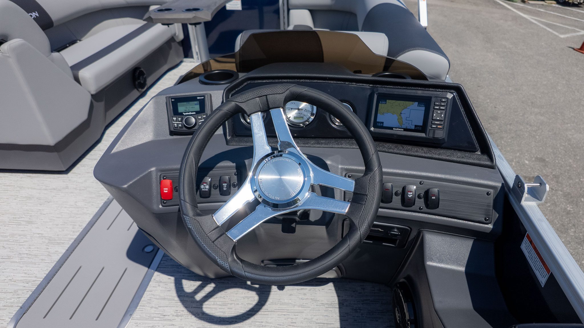 At the heart of the fun is the versatile Swingback stern lounger, allowing your crew to face forward during a spirited cruise or kick back and face the water while anchored. The SPS Performance Package ensures you aren't just floating; you're moving with agility, powered by a reliable Yamaha 150HP engine. For the sun-seekers and swimmers, the top-mount Lillipad ladder makes re-entry a breeze after a dip, while the in-floor storage swallows up all your tubes and gear to keep the Serene Soft Touch vinyl deck clutter-free. Whether you are cranking the Rockford Fosgate audio system or navigating to a hidden gem using the Garmin Echomap, this boat is built for those who prioritize premium comfort and endless sunshine. It’s not just a boat; it’s your private island with a throttle.
