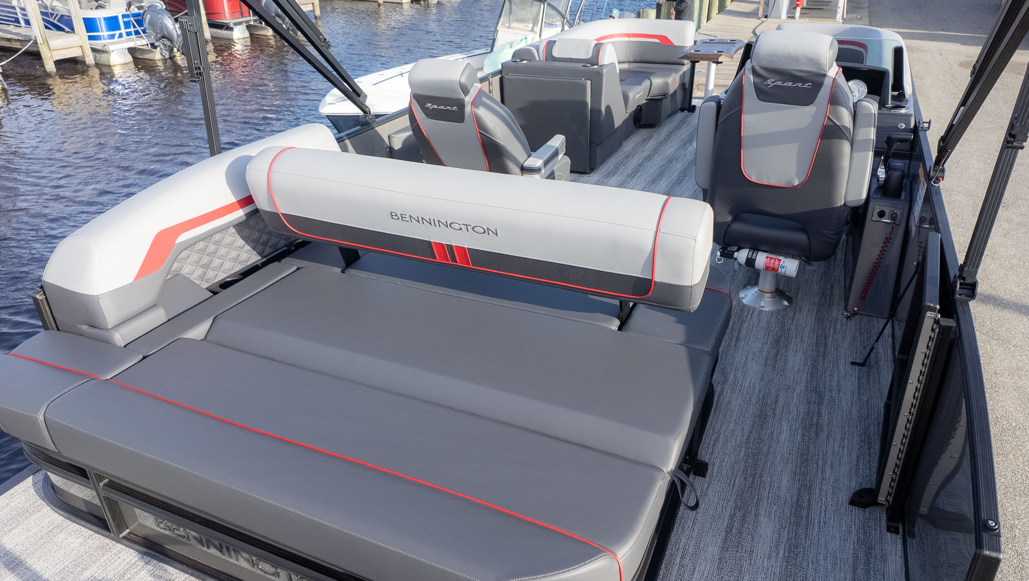 Step aboard the Bennington 22 S Swingback and you will immediately notice that this is a craft built for the ultimate socialite. If you are the person who loves being the "host with the most" at the local sandbar, this is your new favorite venue. The star of the show is the innovative Swingback floorplan, which features a massive rear lounger with a reversible backrest. With a quick slide, you can switch from a forward-facing seat for cruising to a rear-facing lounge—perfect for keeping an eye on swimmers or simply soaking in the view while anchored.