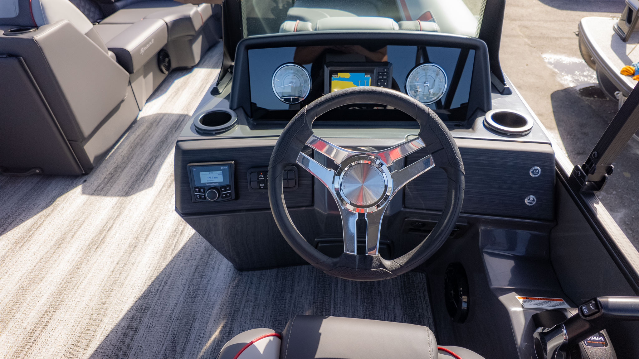 This boat is tailored for those who crave a seamless blend of luxury and action. While friends relax on the Veneto Shadow Grey vinyl with Absolute Red accents, you can tap into the smooth power of the Yamaha 150HP engine. The SPS performance package, combined with a ski tow bar, transforms this elegant cruiser into a capable watersports machine, ready to tow tubers and skiers with ease.