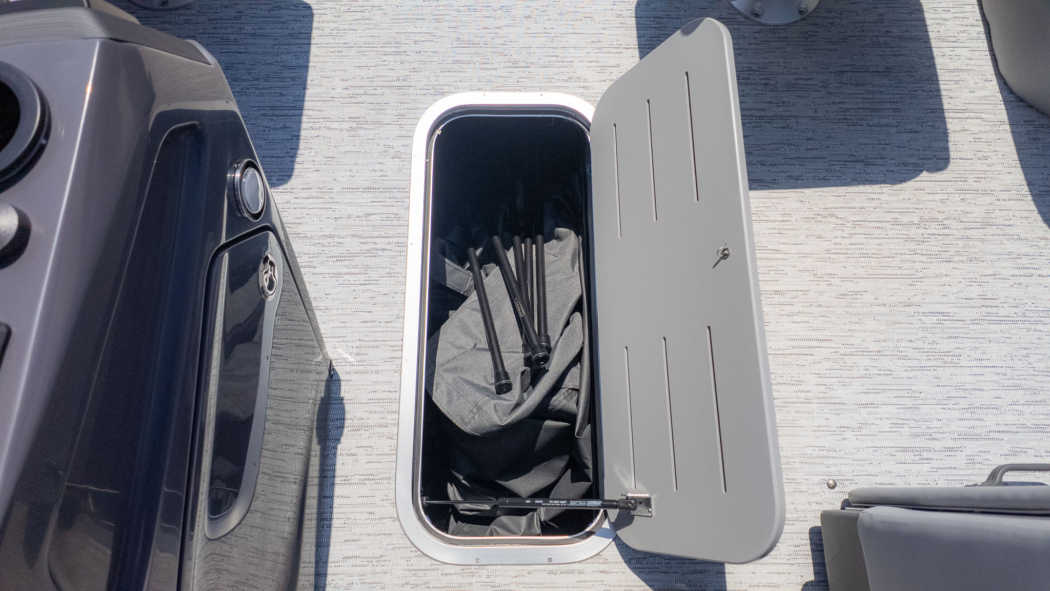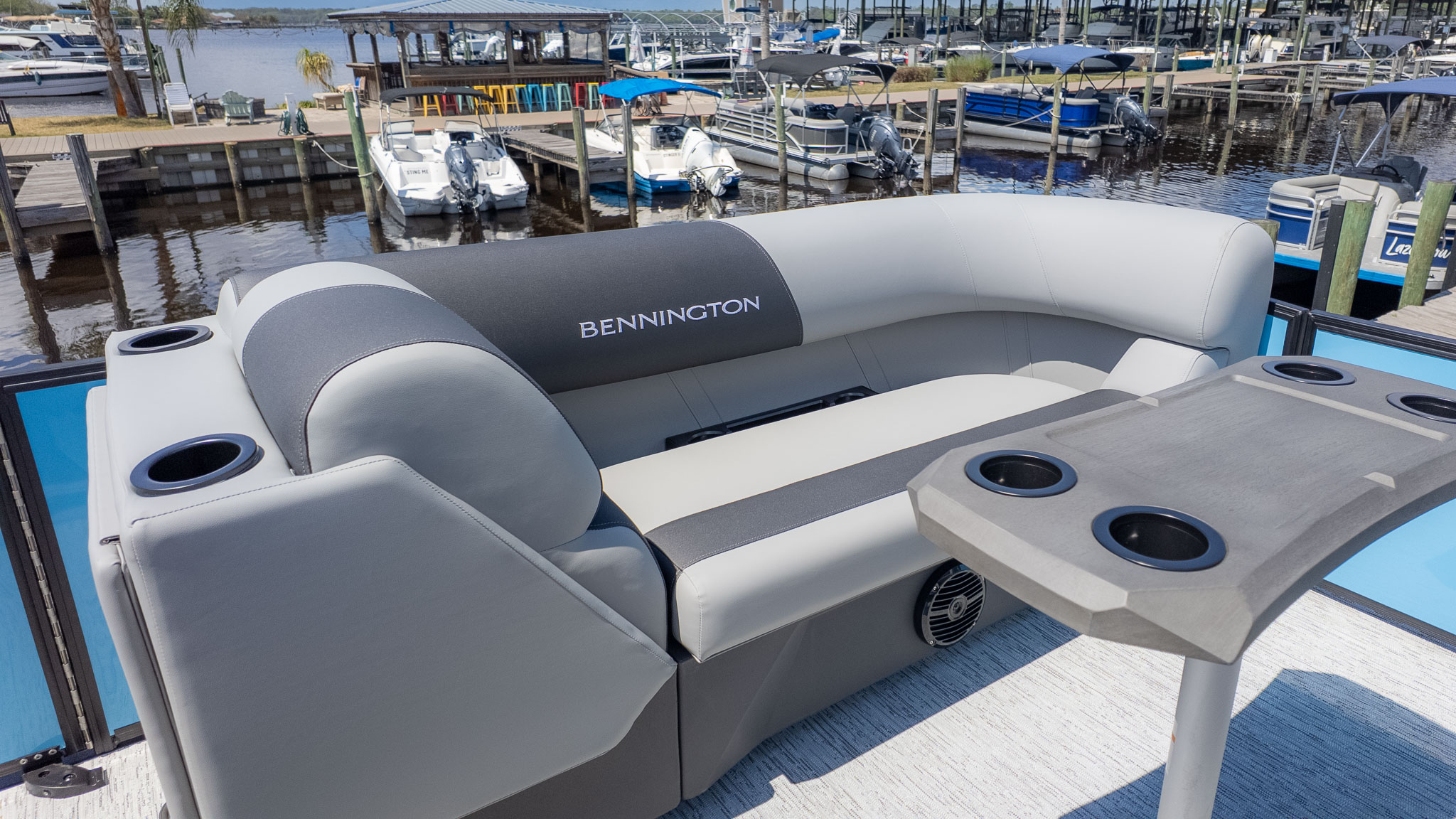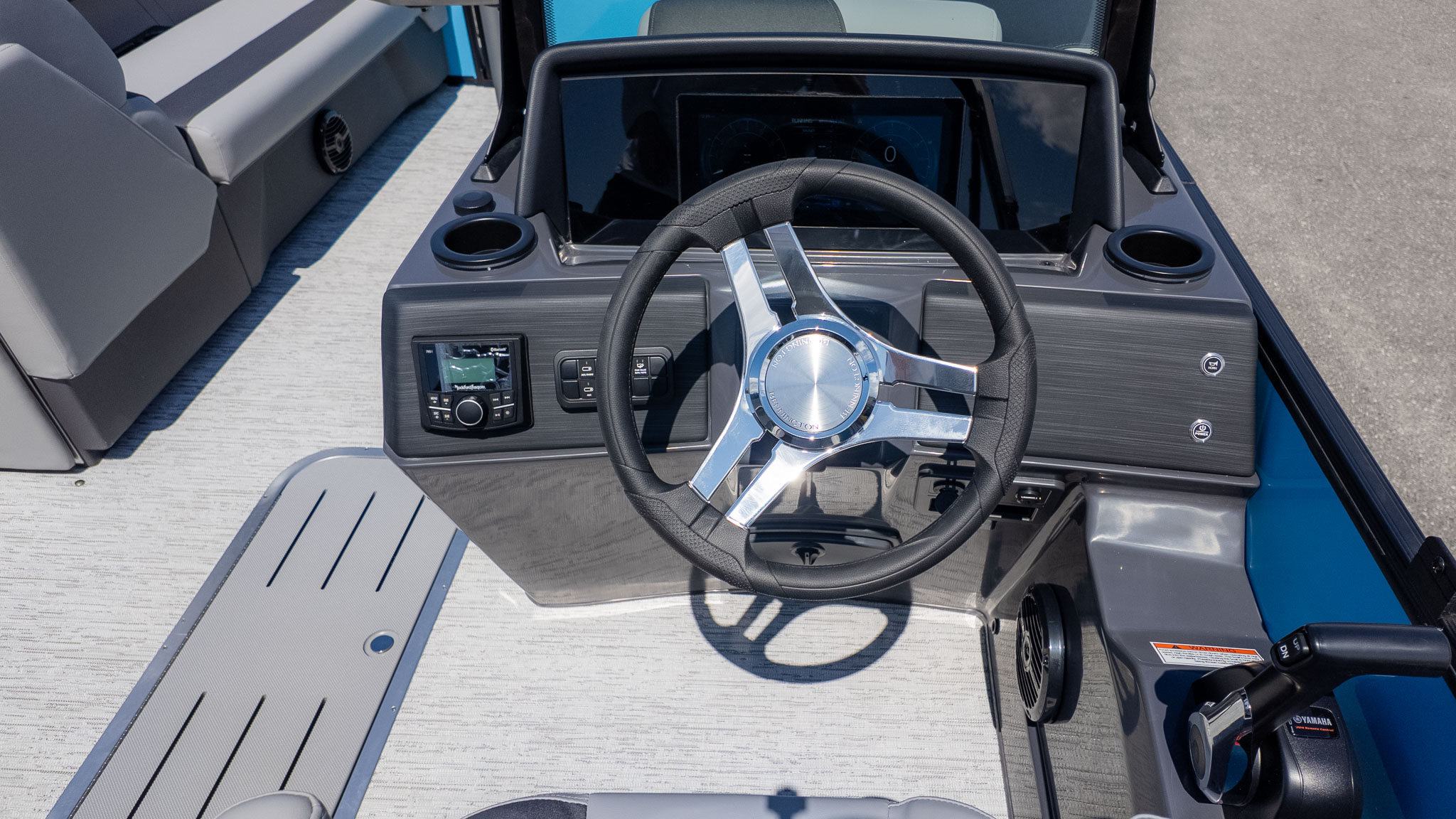 Adventure-loving families will find their match here too. Thanks to the SPS Performance Package and the muscle of a Yamaha 200HP engine, this isn't just a slow-rolling swim platform. It’s a spirited performer equipped with a ski tow bar, making it a dream for weekend watersports. Between the integrated 12-inch Vivid UX touchscreen with mapping for exploring new coves and a high-end Rockford Fosgate audio system for the perfect soundtrack, every outing feels like a main event.