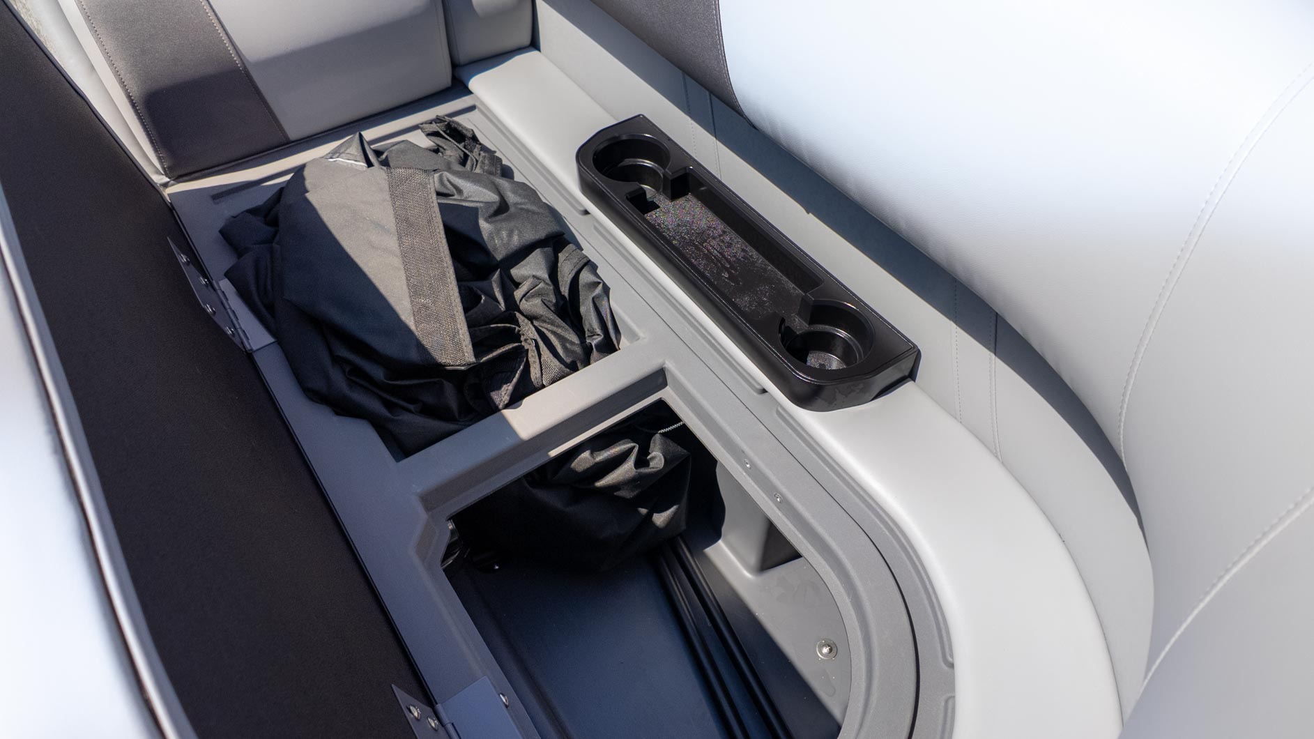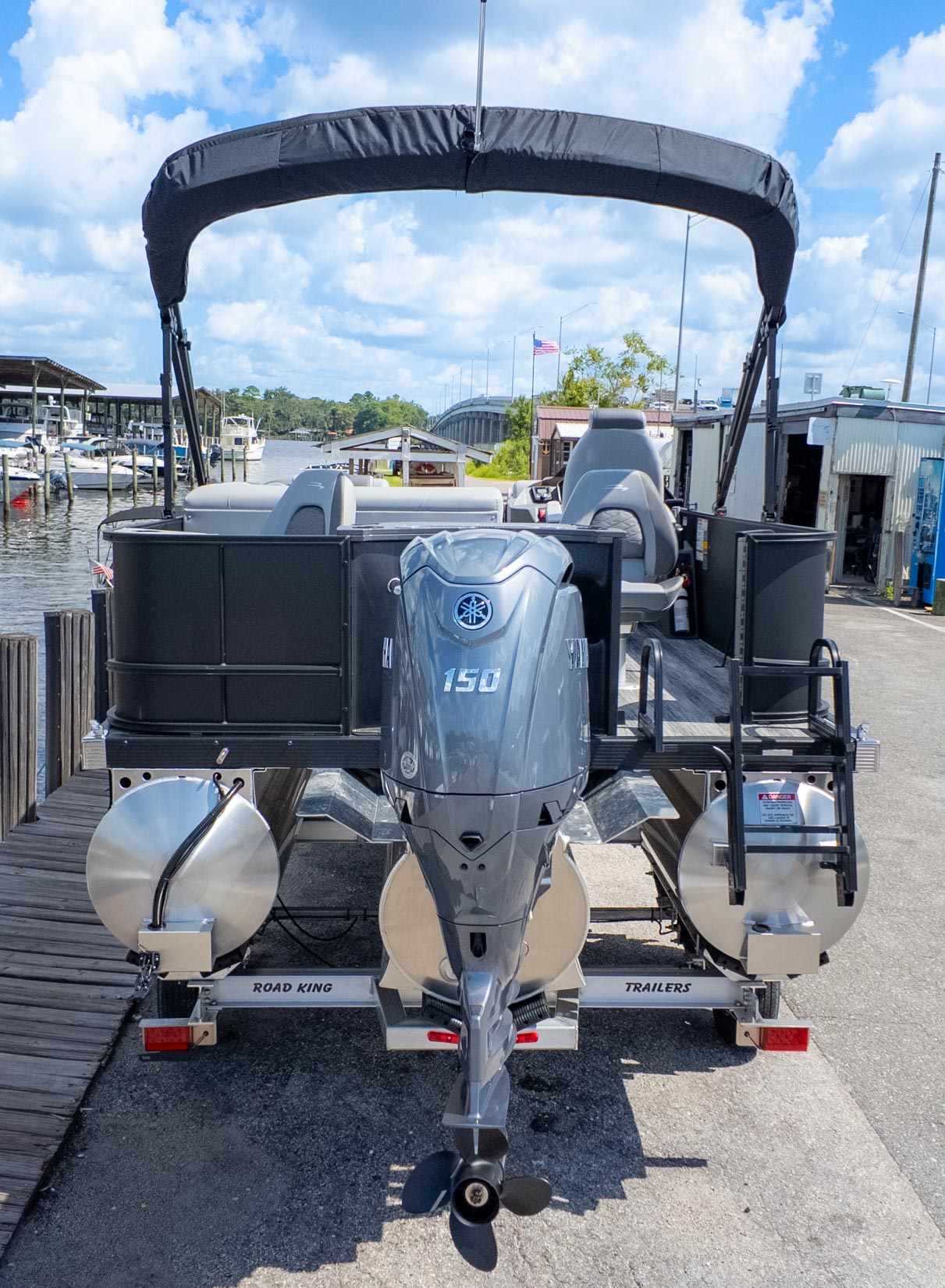 The 22 S Stern Fishing boat comes equipped with a 150 horsepower 4 Stroke Mechanical engine, ensuring a smooth and reliable ride every time. Anglers will particularly appreciate the dedicated fishing features, including a 4-pole rod holder, a Pro Angler Tackle Station, and a center-mounted aft livewell. After a successful day of fishing, relax in the comfortable Serene Soft Touch Vinyl seating with Simtex accents, and take advantage of the pure comfort reclining captain's chair.