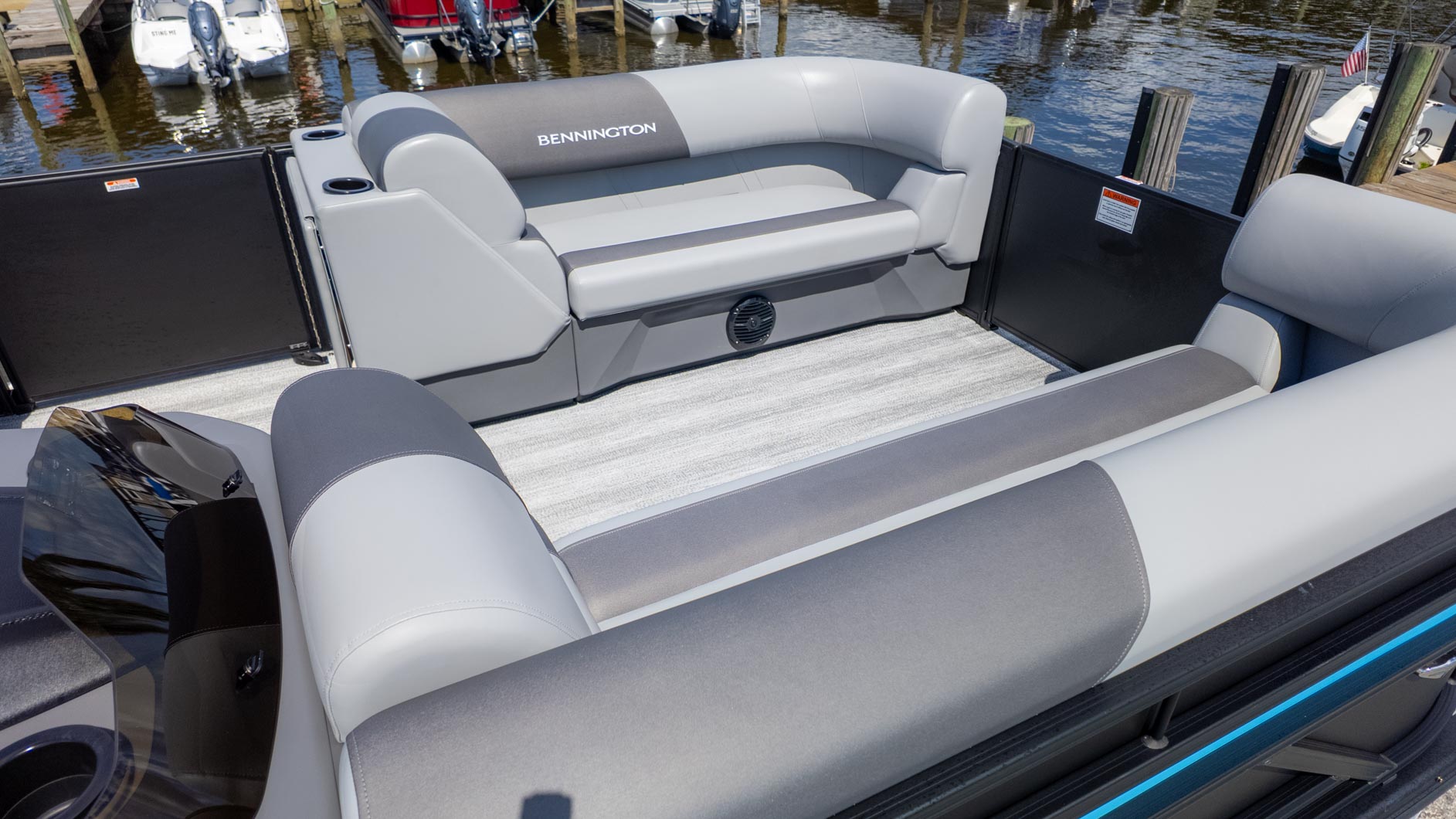 Beyond fishing, this Bennington boasts a range of amenities for pure enjoyment. The Sunshine Package adds an extra touch of luxury, while the wireless charger keeps your devices ready for capturing those perfect moments6. With integrated docking and navigation lights, you can extend your fun into the evening7. The sleek matte black panel and azure blue accents provide a stylish look that's sure to turn heads8. This boat is designed for those who seek adventure and relaxation in equal measure, offering a versatile platform for creating unforgettable memories on the water.