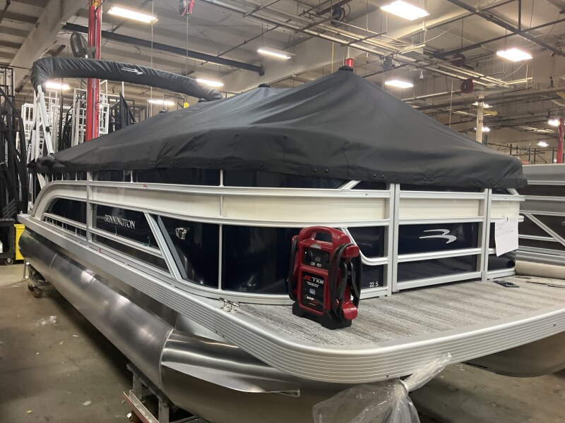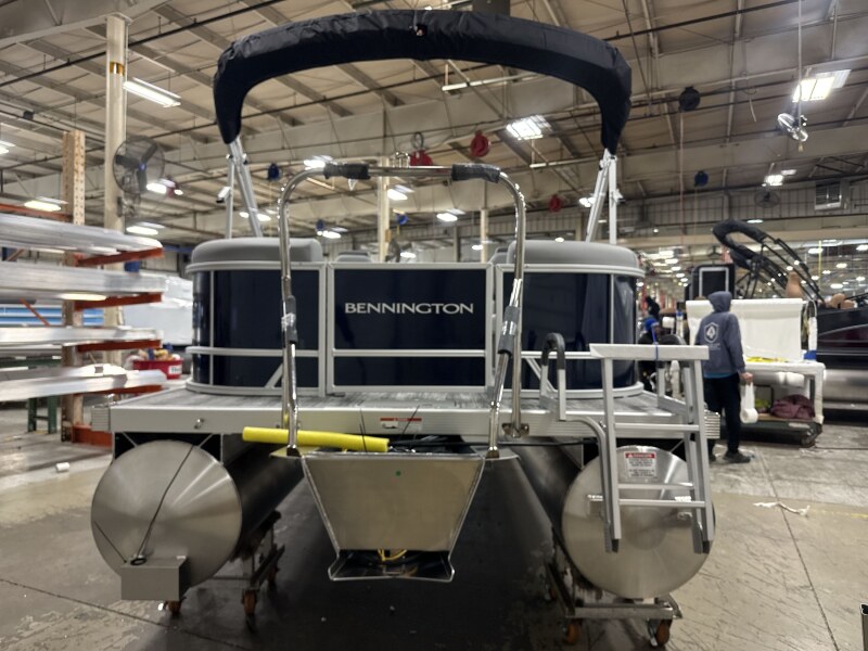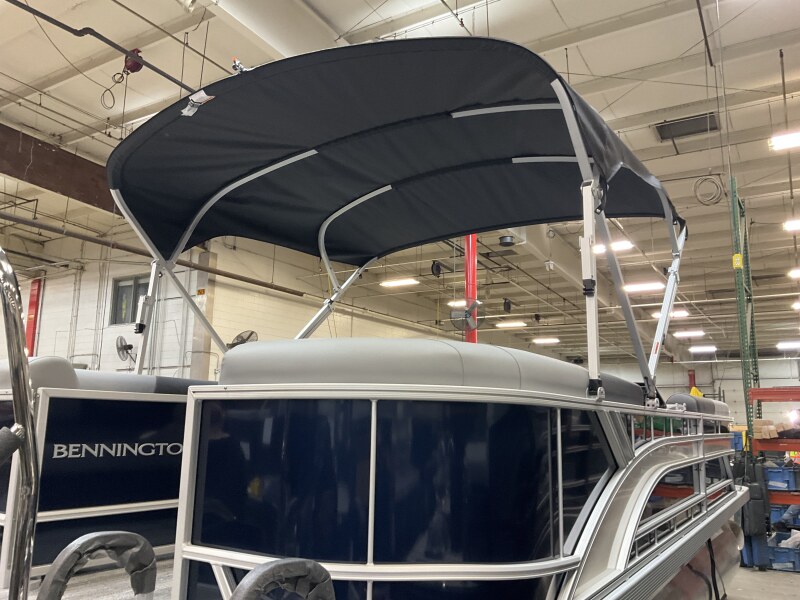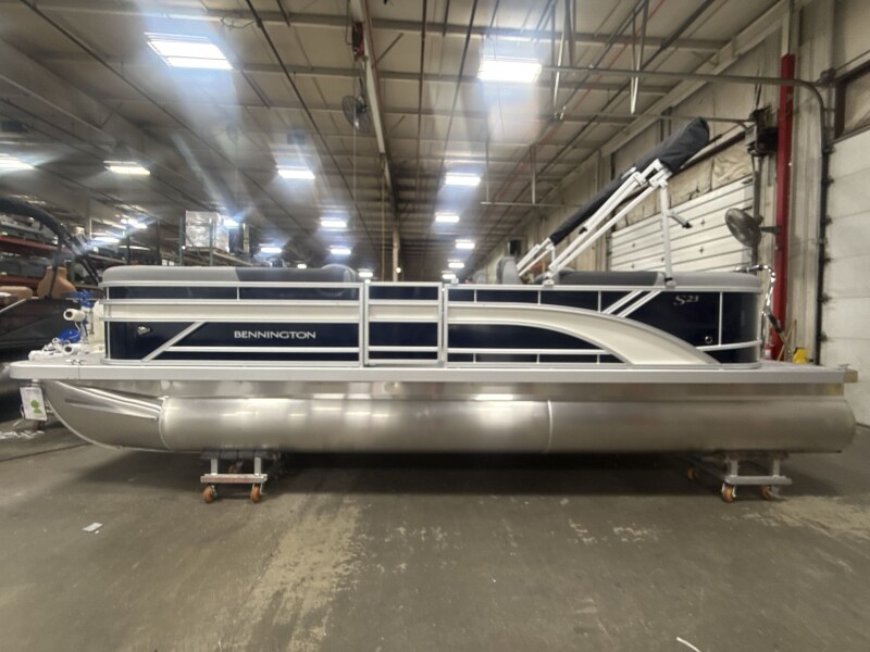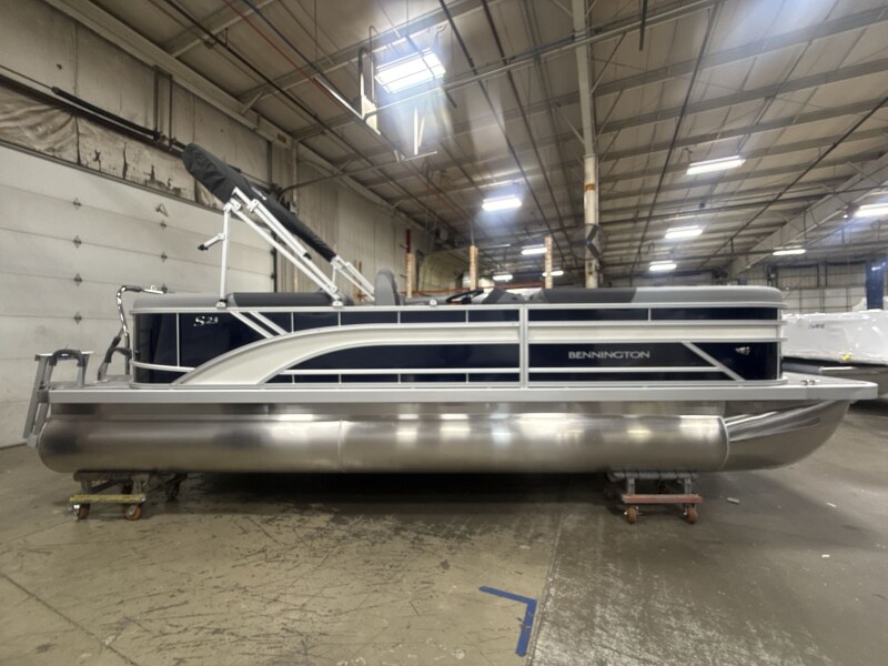 2026 Bennington 23 SSR powered by a Yamaha F115LB!Factory Installed Options:Exterior- smooth midnight blue with smooth metallic white accentsInterior- shadow grey with shadow grey & mythos accentsBlack canvasS series base trim packageIronwood trim accentShoreline grey flooringWindshieldWireless chargerTilt steeringMain display analog V3 EchomapSki tow