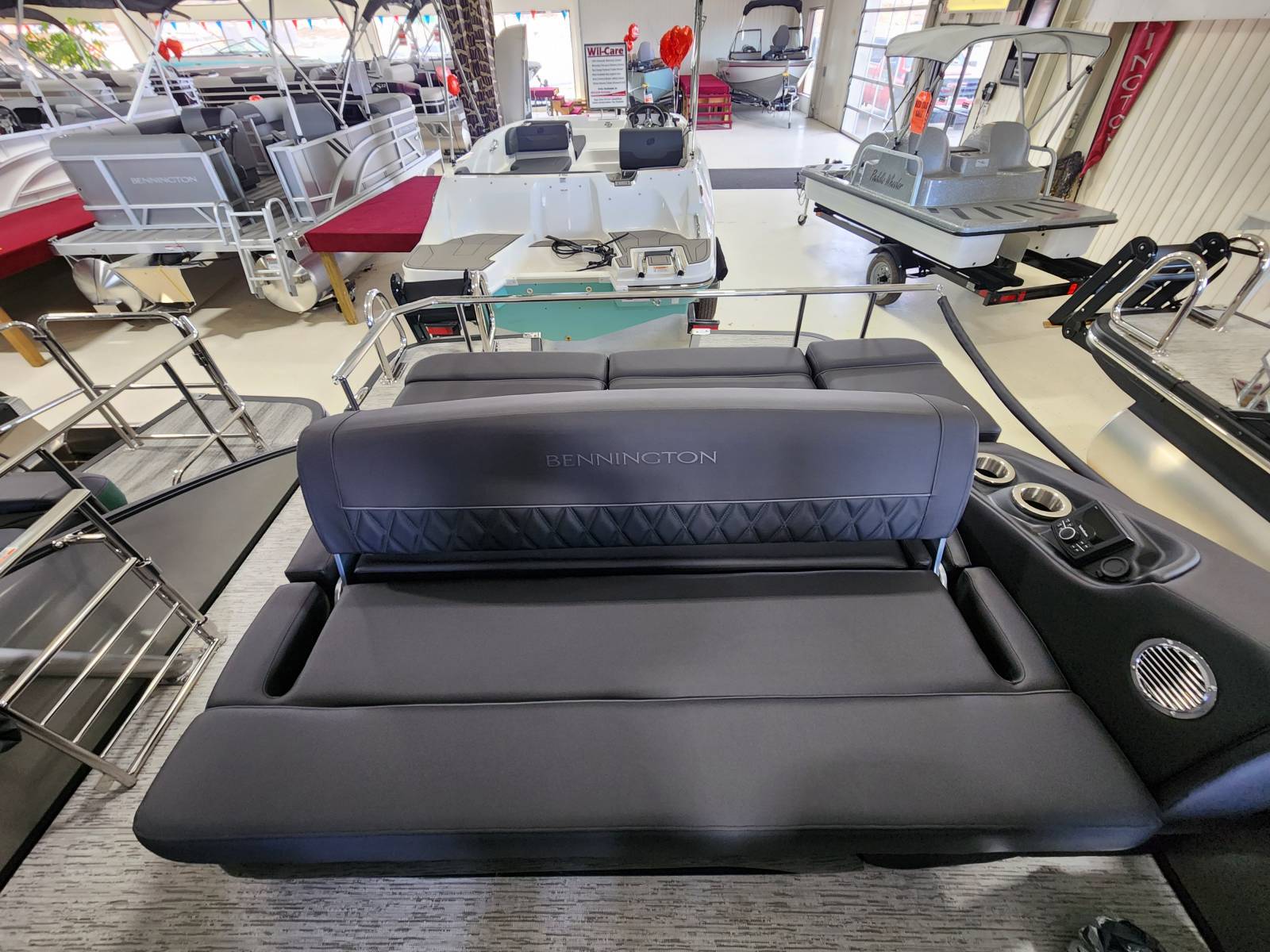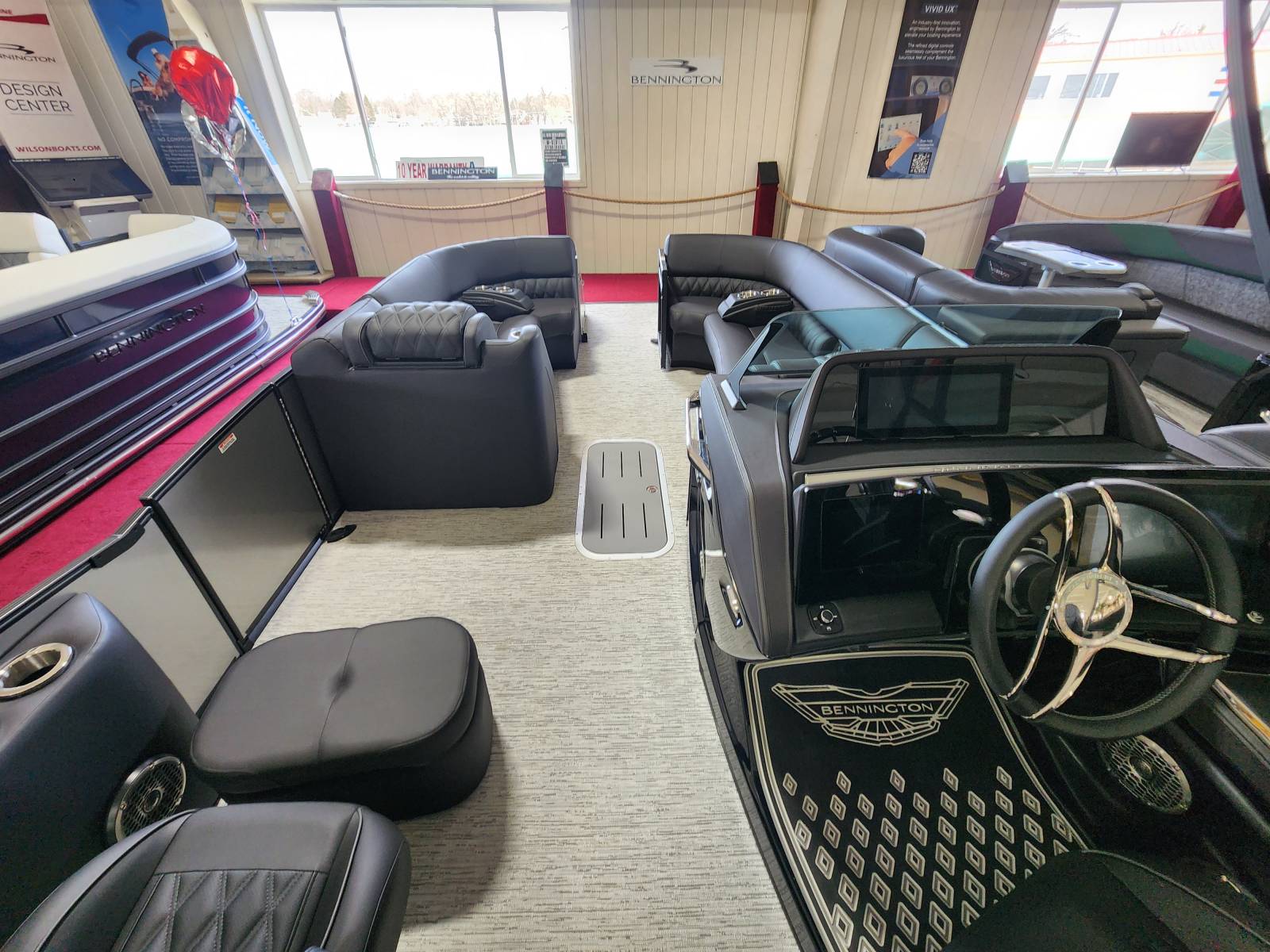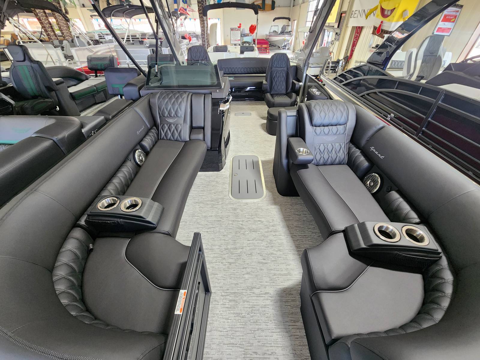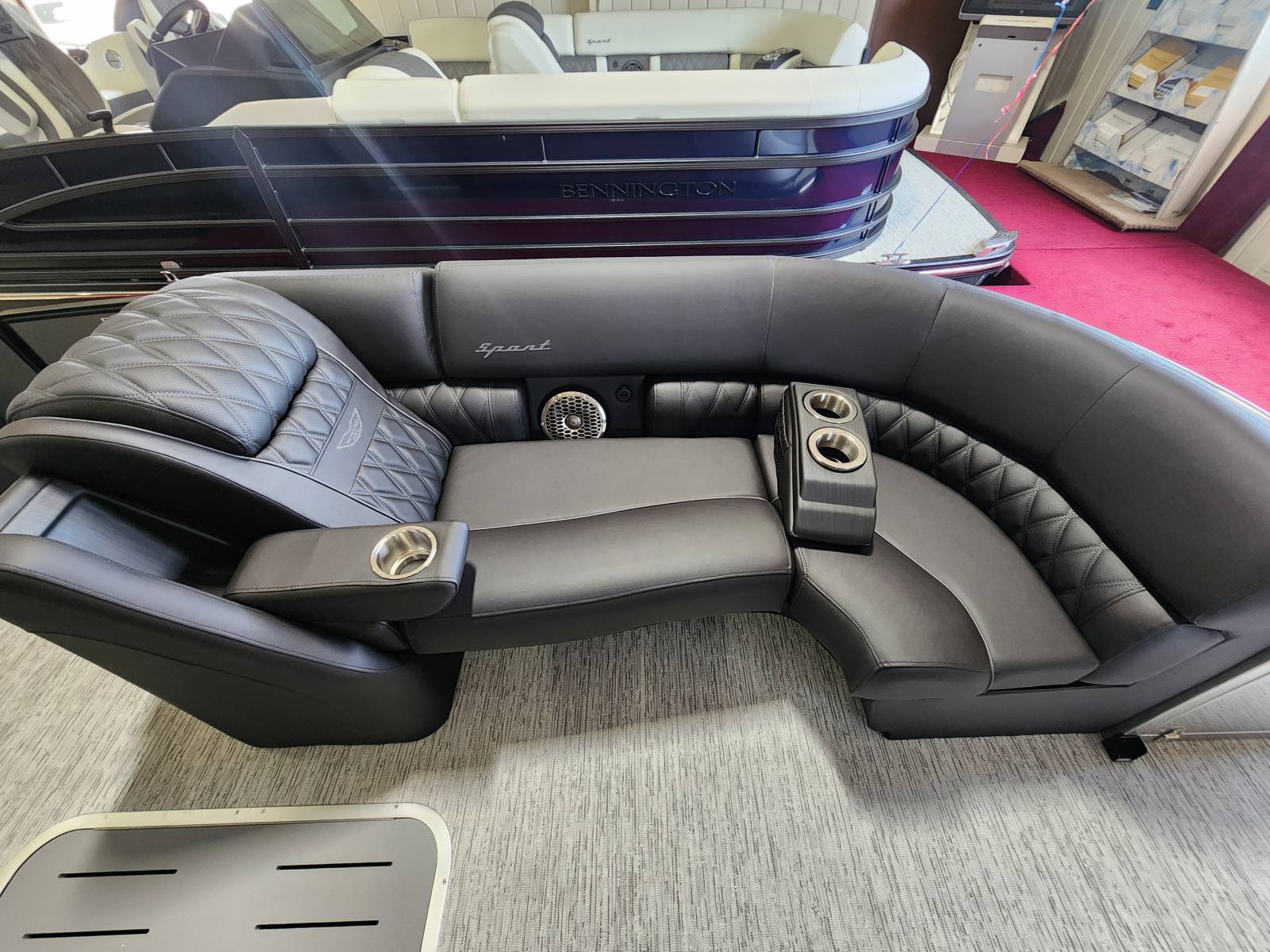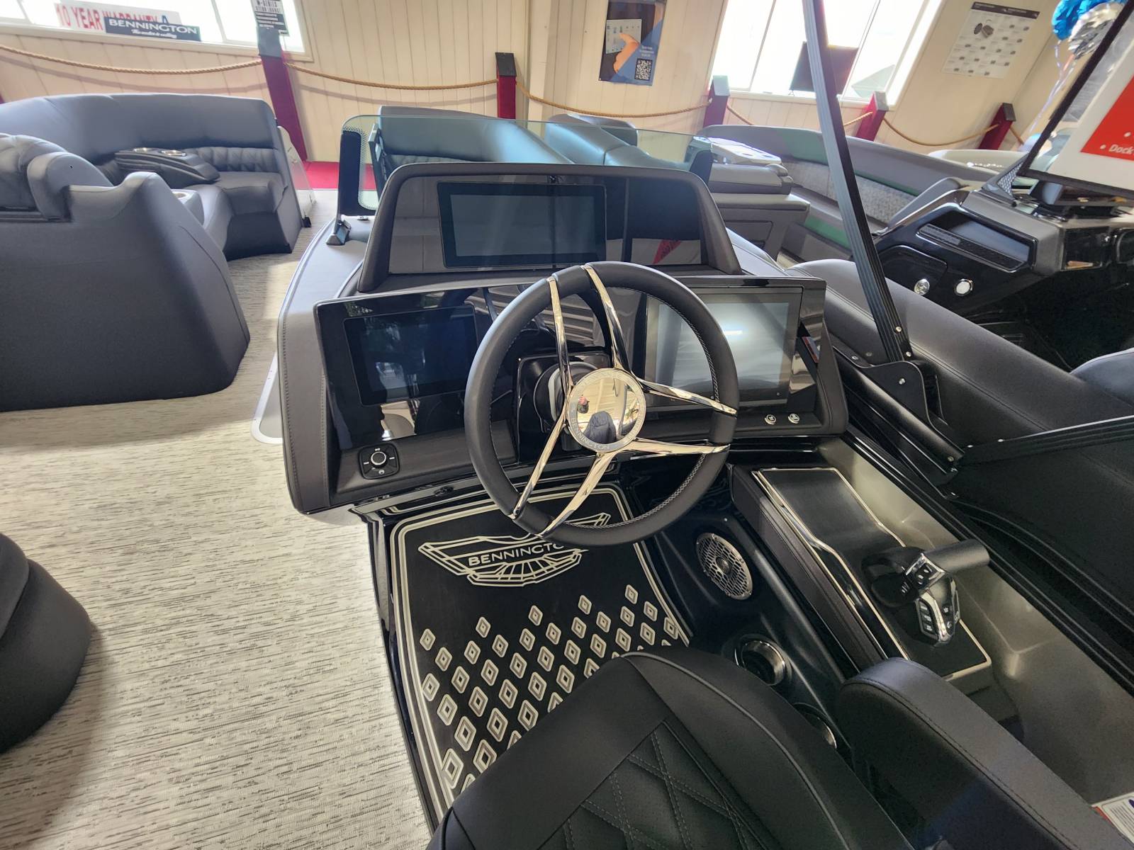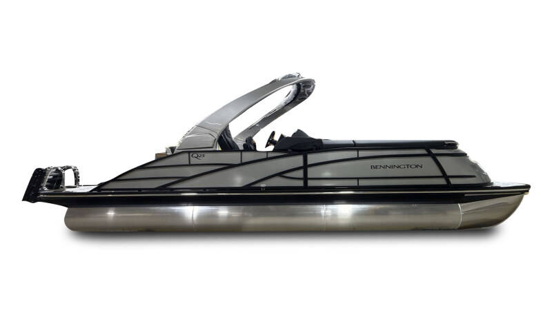 2026 Bennington 25 QSBA powered by a Yamaha F300XSB!Factory Installed Options:Exterior- smooth metallic silverInterior- pillowtop sport phantom breeze simtexBlack canvasBlackout luxeCladded power archZebrawood slate matte trim accentsValencia grey flooringUpgraded M2 speaker, sub & ampConsole exchangeStitched shroud upgradeLighted mesh logo on swing backLighted cupholdersUnderwater lightToe kick lightsRGB dashOttoman75" premium retractable keeper railDeluxe swing back queen reclinerESP upgradeFuel 73 galDual battery switchCenter storageMain display Vivid 12 MapGarmin 12 Vivid 12 Carbon displayAmerican flag54" removable aluminum ski pylonFender post with clip