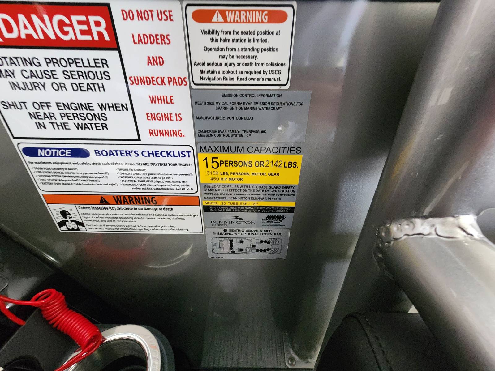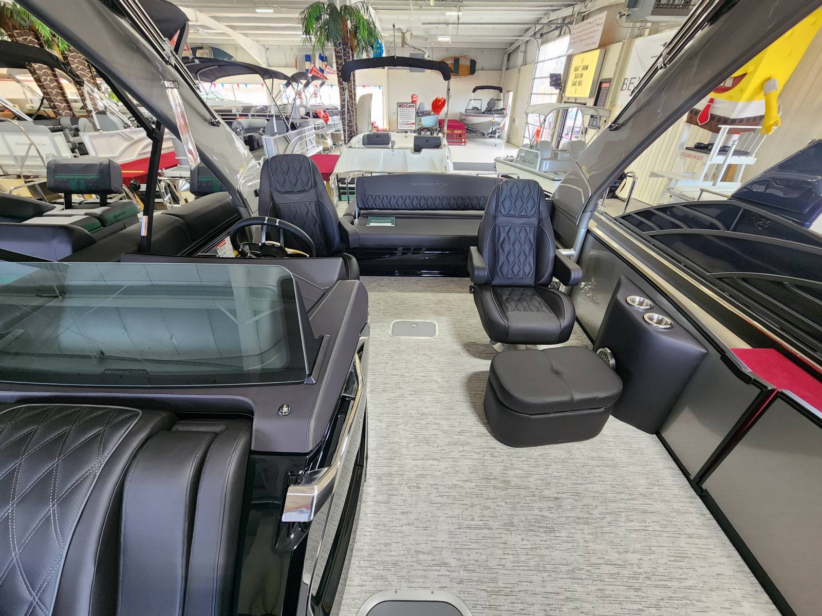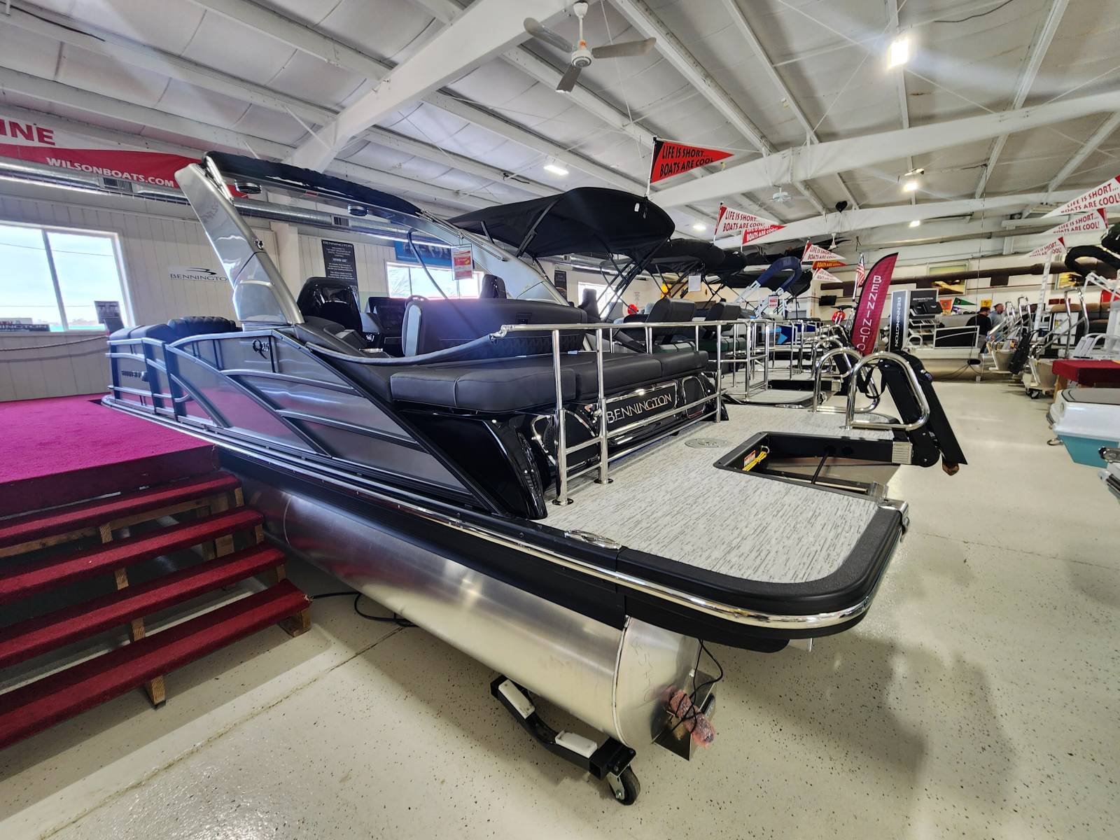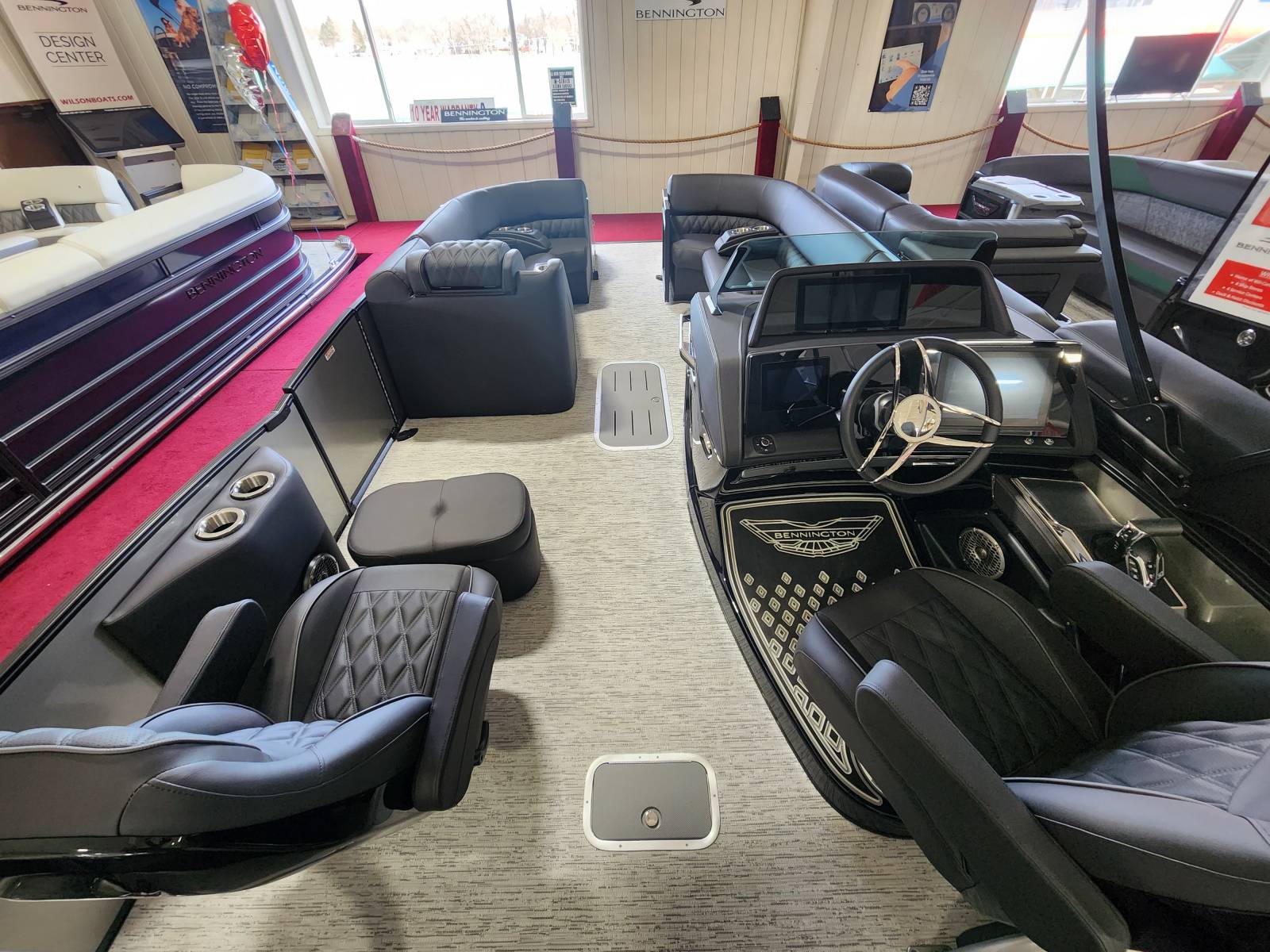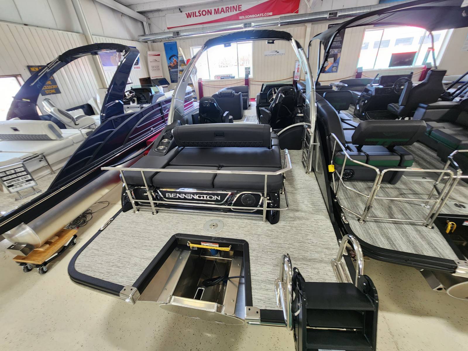2026 Bennington 25 QSBA powered by a Yamaha F300XSB!Factory Installed Options:Exterior- smooth metallic silverInterior- pillowtop sport phantom breeze simtexBlack canvasBlackout luxeCladded power archZebrawood slate matte trim accentsValencia grey flooringUpgraded M2 speaker, sub & ampConsole exchangeStitched shroud upgradeLighted mesh logo on swing backLighted cupholdersUnderwater lightToe kick lightsRGB dashOttoman75" premium retractable keeper railDeluxe swing back queen reclinerESP upgradeFuel 73 galDual battery switchCenter storageMain display Vivid 12 MapGarmin 12 Vivid 12 Carbon displayAmerican flag54" removable aluminum ski pylonFender post with clip