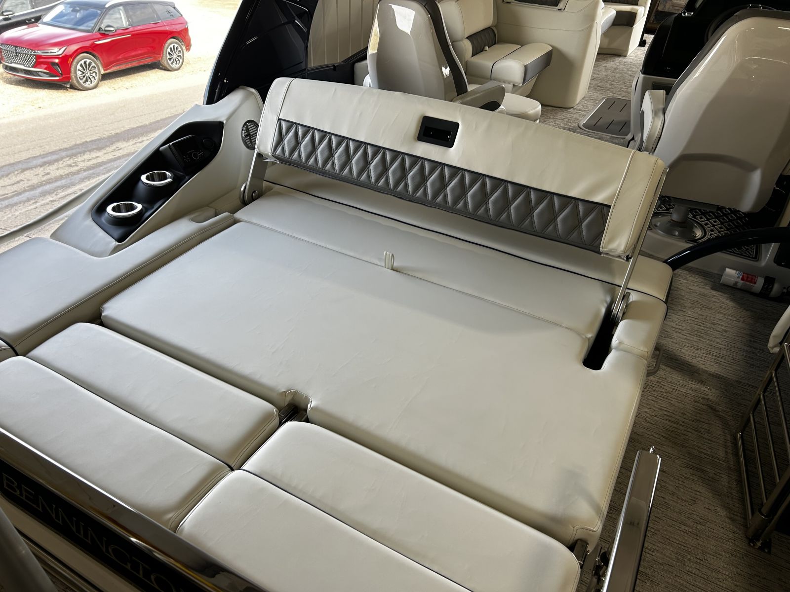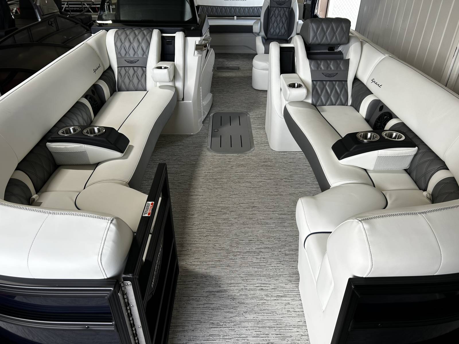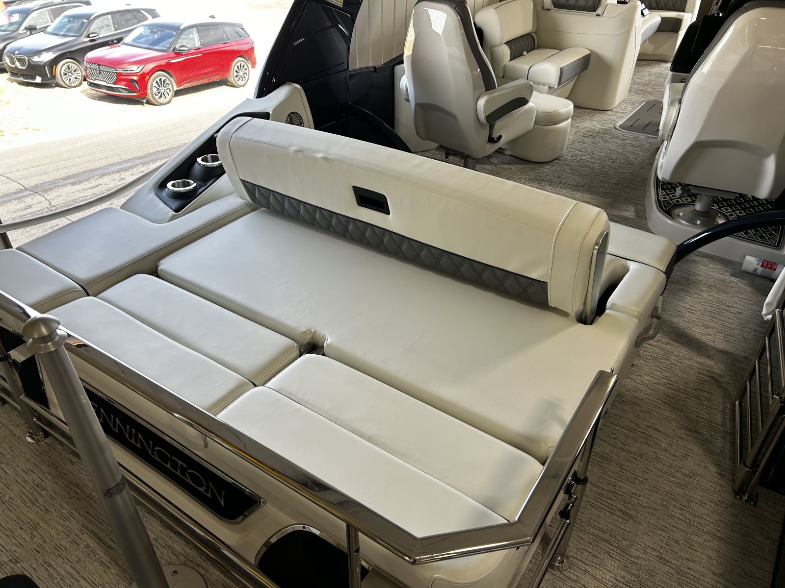 2026 Bennington 25 RSBA powered by a Yamaha F350XSA!Factory Installed Options:Exterior- smooth midnight blueInterior- pillowtop sport veneto white with perforated graphiteBlack canvasBlackout luxeCladded power archZebrawood matte slate trim accentValencia greyBlack corvina steering wheelLighted mesh logo on swing backLighted cupholdersExterior side lightsToe kick lightingOttomanAft/bow gate seat75" premium retractable keeper railDeluxe swing back queen reclinerMidnight blue embroidery packageStainless rub railPop up cleats bow & aftElliptical sport performance package 25ftFuel 73 galDual battery switchCenter storageGarmin 9 Vivid 12 Carbon displayMain display Vivid 12 Map54" removable aluminum ski pylon