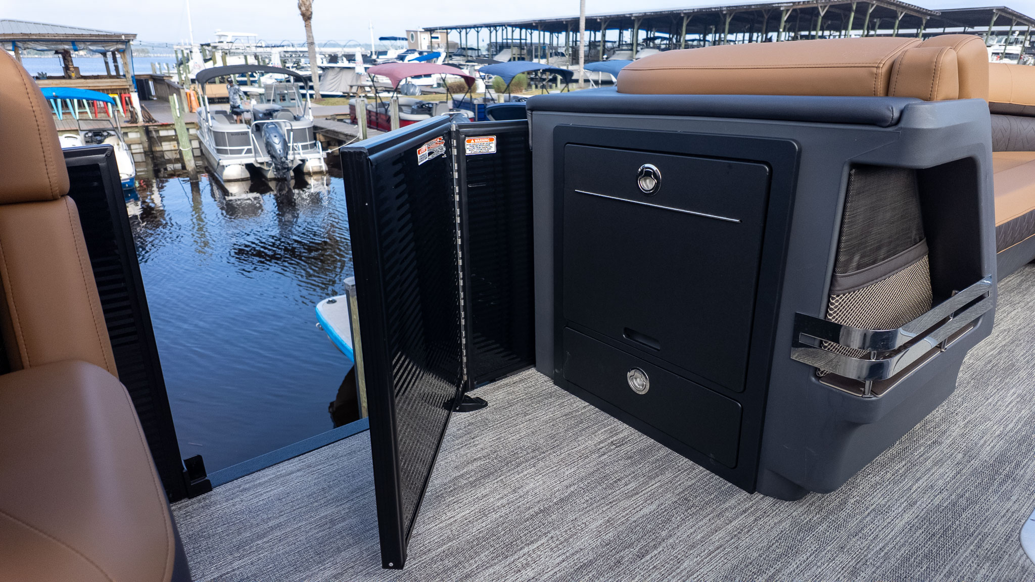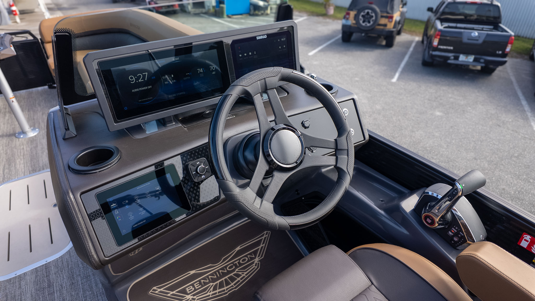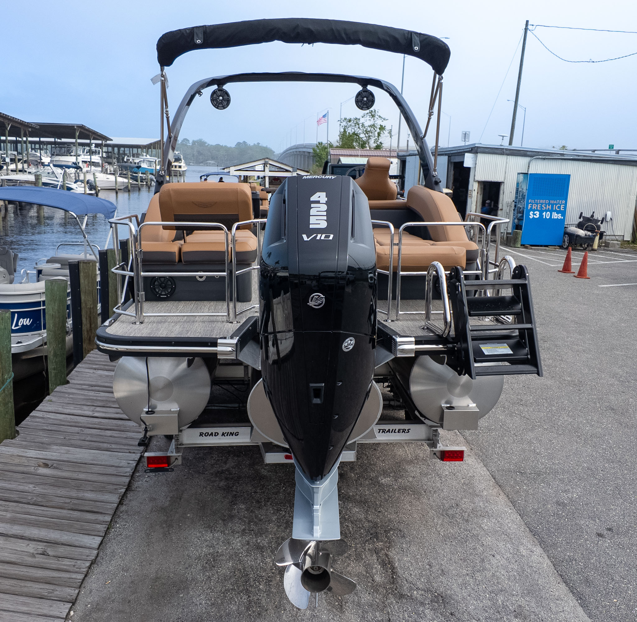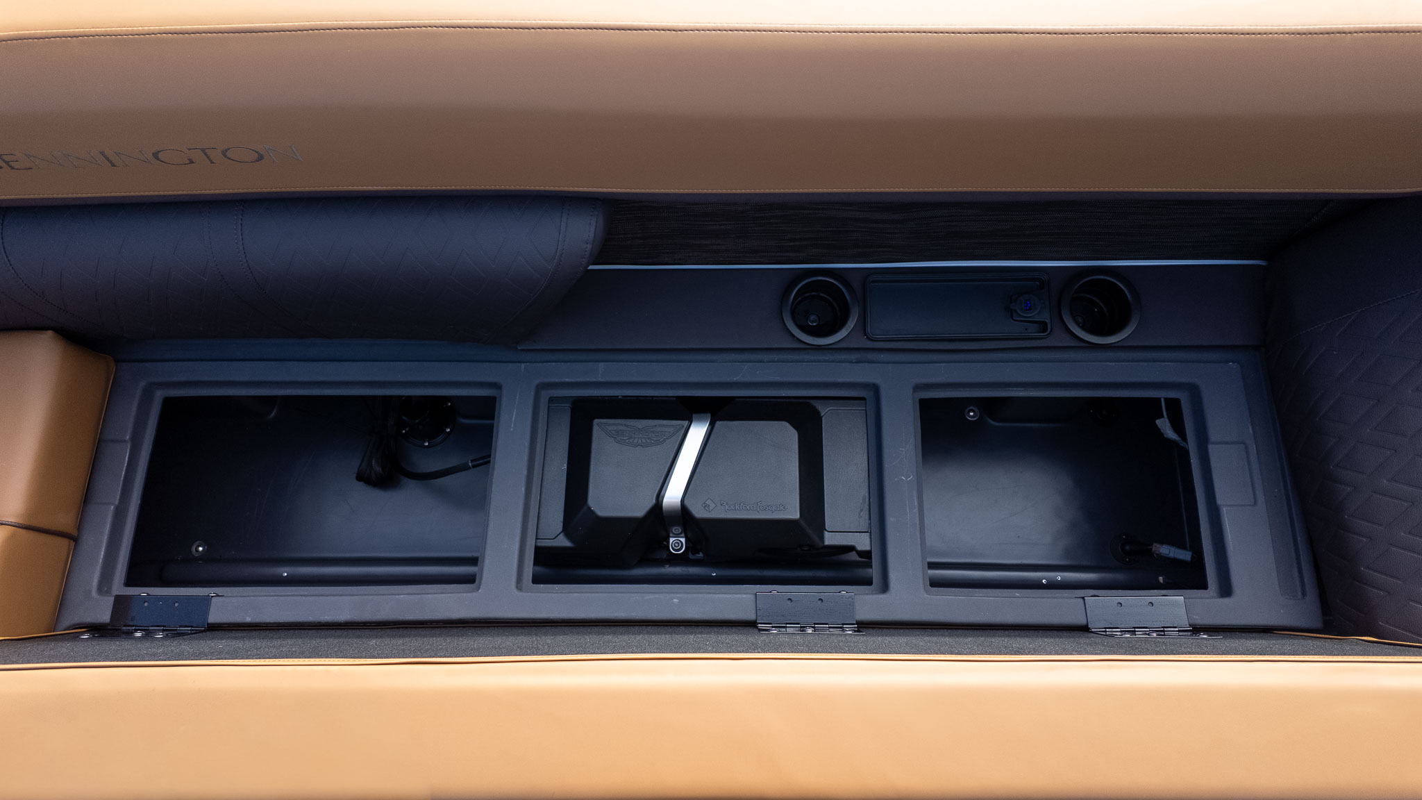 The sleek Carbon Fiber Arch and Blackout Luxe Package give this vessel a modern, athletic silhouette that turns heads at every dock. Tech-savvy captains will fall in love with the intuitive Vivid User Experience interface, which puts total vessel control and integrated mapping right at your fingertips on a stunning touchscreen display. When the mood strikes, the premium Rockford Fosgate audio system—complete with a powerful subwoofer and arch-mounted speakers—transforms the deck into a private concert venue. From the clever Benny Bowl dog dish for your four-legged first mate to the ambient glow of the toekick lights, every detail is designed to celebrate the joy of being on the water. It is more than just a boat; it is a destination for anyone who believes that life is best lived in the sunshine with great company and a perfect soundtrack.