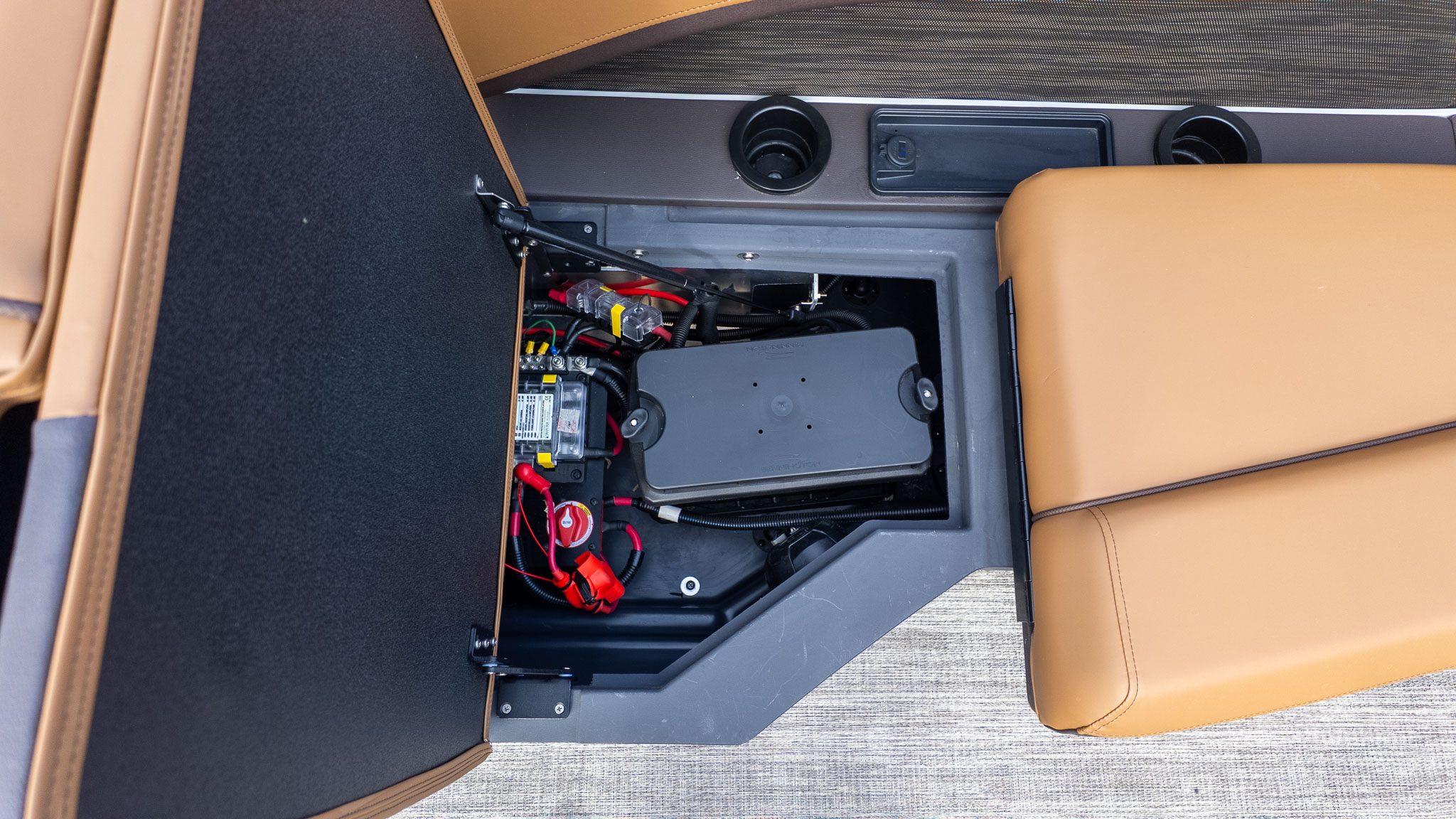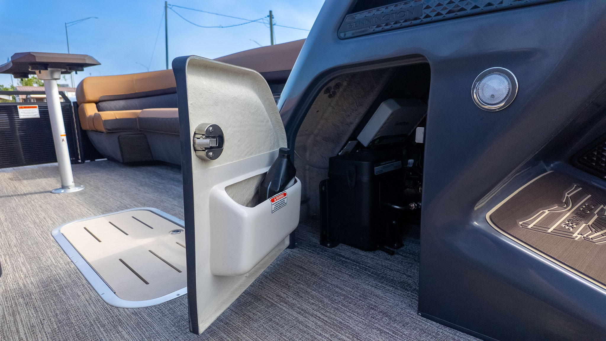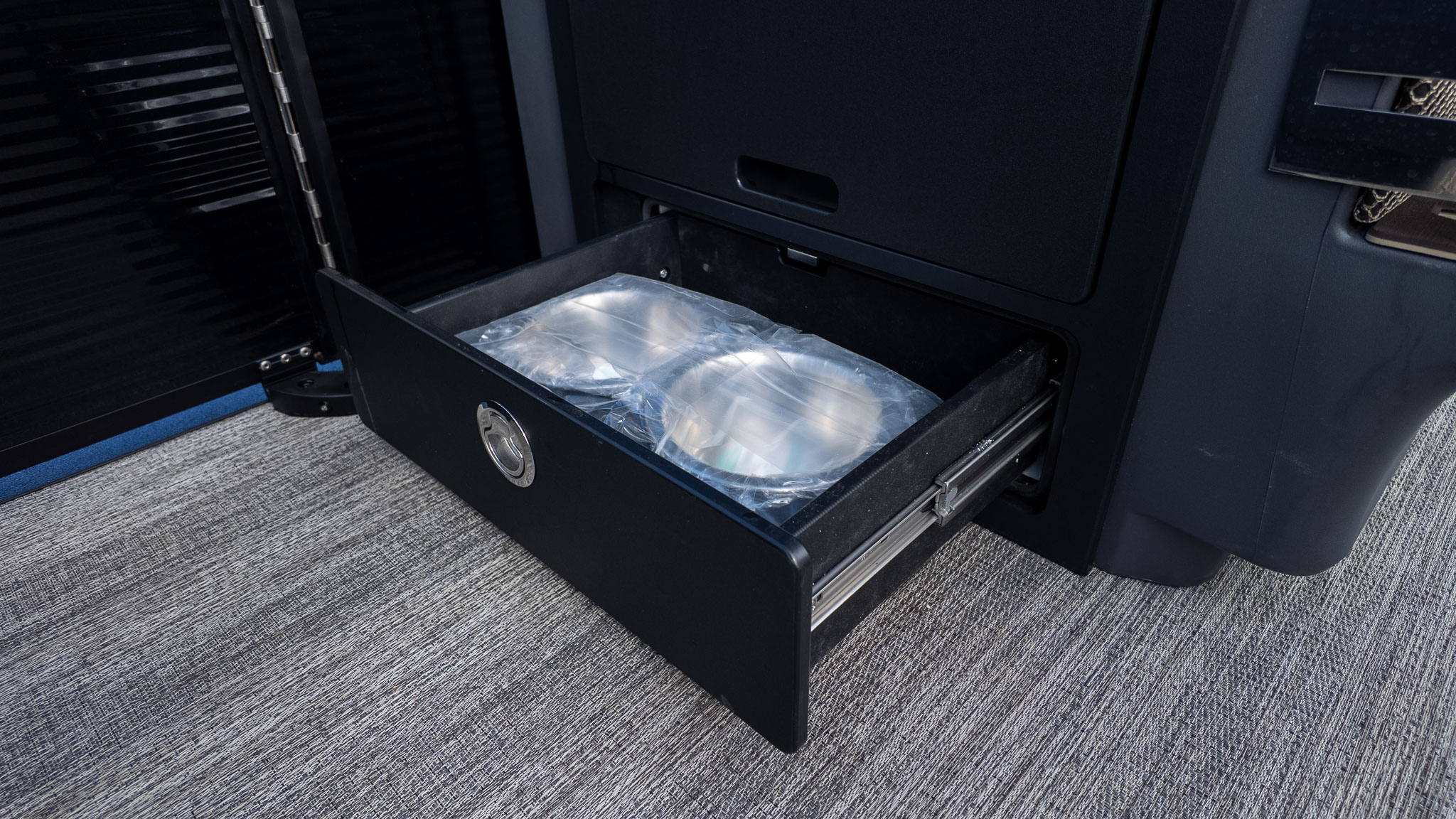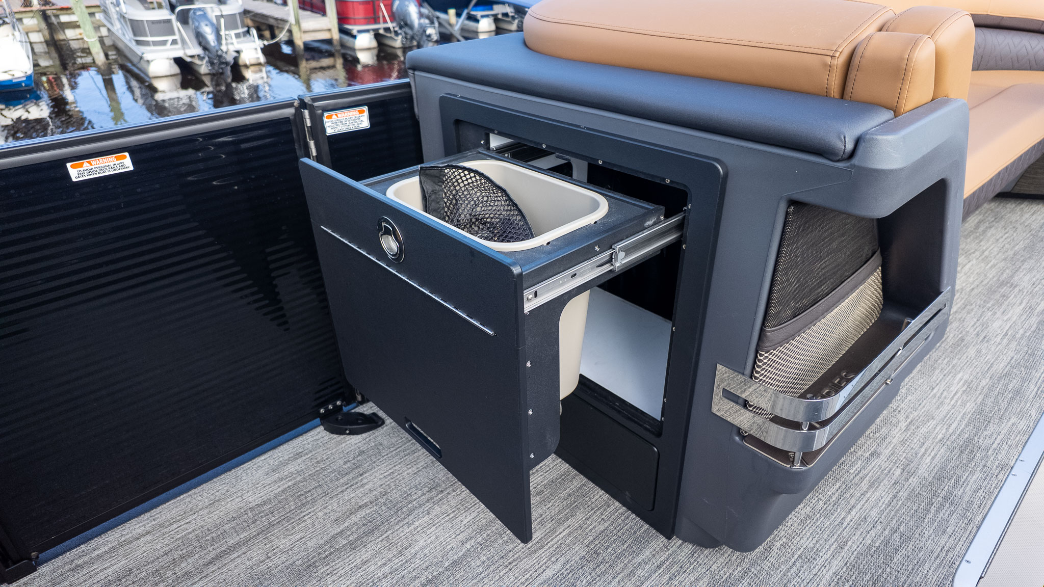 The sleek Carbon Fiber Arch and Blackout Luxe Package give this vessel a modern, athletic silhouette that turns heads at every dock. Tech-savvy captains will fall in love with the intuitive Vivid User Experience interface, which puts total vessel control and integrated mapping right at your fingertips on a stunning touchscreen display. When the mood strikes, the premium Rockford Fosgate audio system—complete with a powerful subwoofer and arch-mounted speakers—transforms the deck into a private concert venue. From the clever Benny Bowl dog dish for your four-legged first mate to the ambient glow of the toekick lights, every detail is designed to celebrate the joy of being on the water. It is more than just a boat; it is a destination for anyone who believes that life is best lived in the sunshine with great company and a perfect soundtrack.