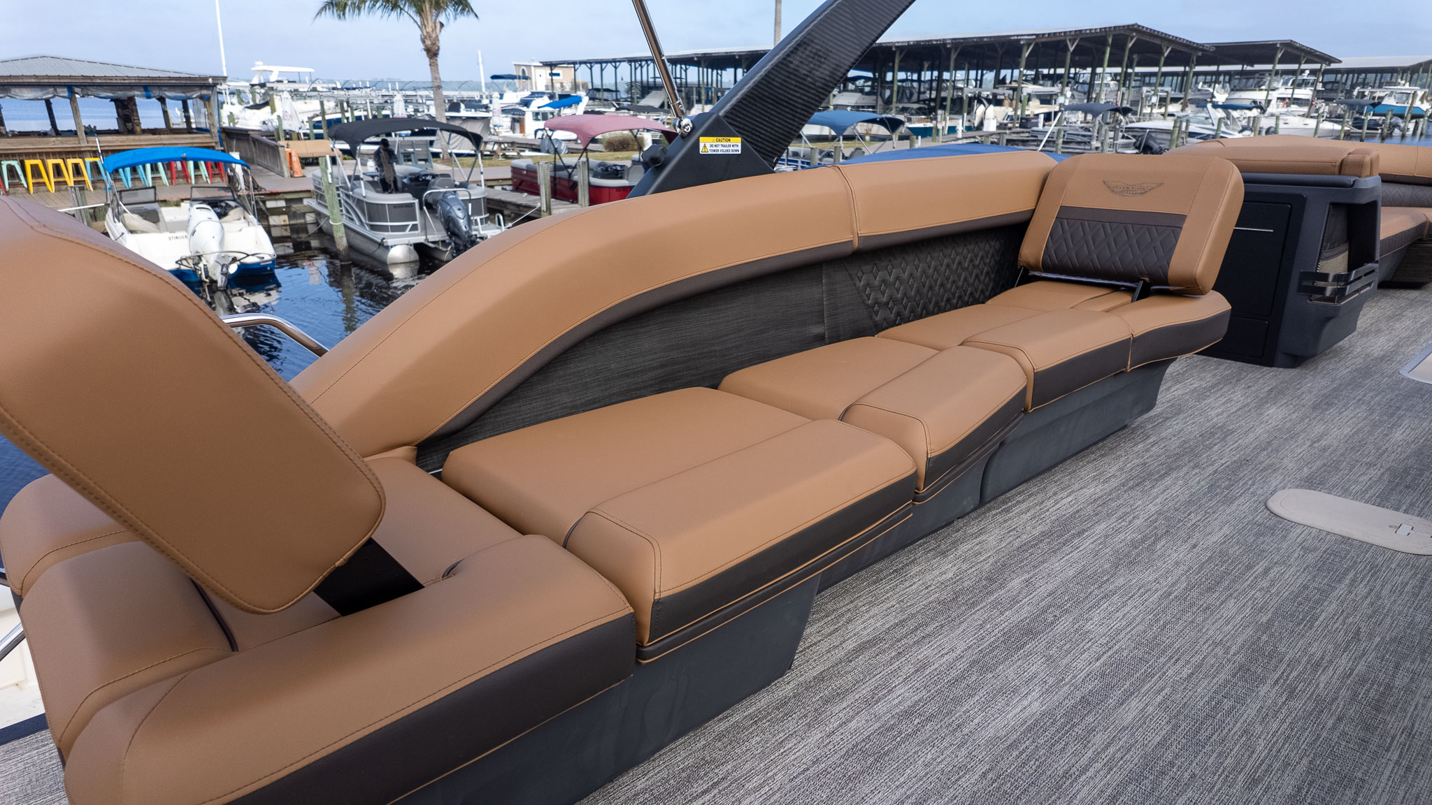 Imagine a sunset cruise where the conversation flows as effortlessly as the water beneath you. The M Series Stern Lounge is the ultimate sanctuary for social butterflies and relaxation enthusiasts alike. With its signature dual aft-facing loungers, this boat is tailor-made for those who live for long afternoons at anchor, watching the world go by from the most comfortable seat in the house. Whether you are hosting a lively group of fourteen or seeking a quiet moment with a book, the ergonomically enhanced cushions and multi-density foam provide a level of luxury that feels more like a high-end living room than a pontoon.