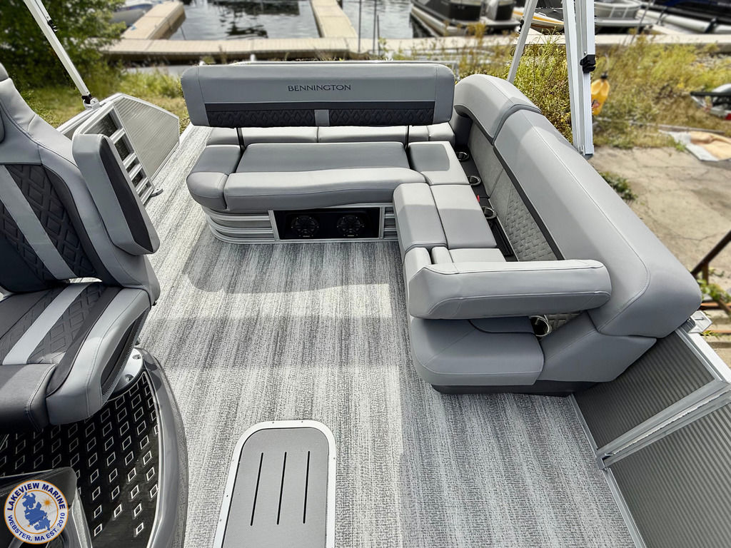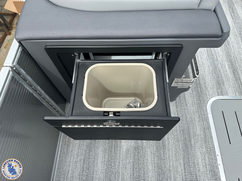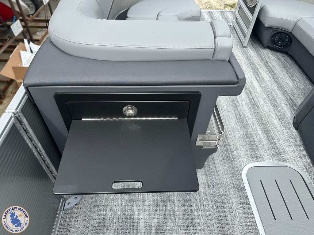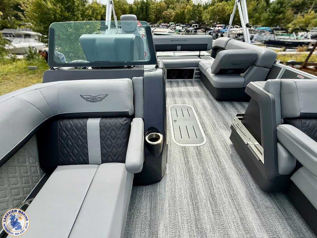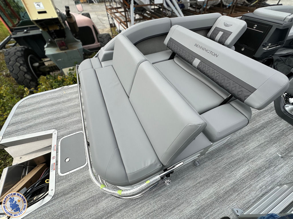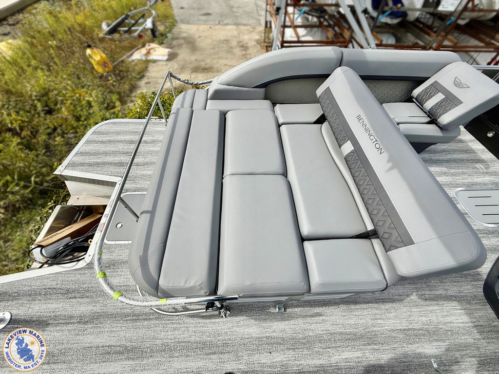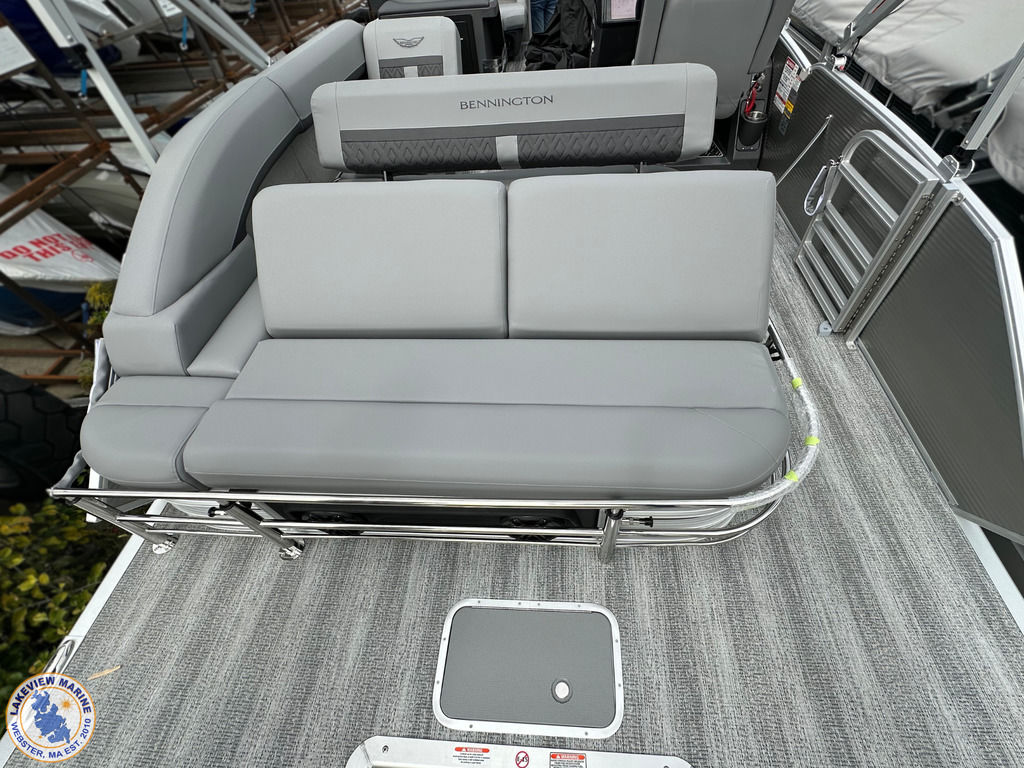 Swingback Tritoon with 150hp Yamaha engine & Saltwater Package! Whether you're cruising the lake or heading into saltier waters, this tritoon offers comfortable seating for up to 12 people and features the new retractable keeper rail around the swingback for added safety, port bench exchange for flexible seating/layout options, built in dog bowl and in-floor storage for your anchor as well as other essentials!