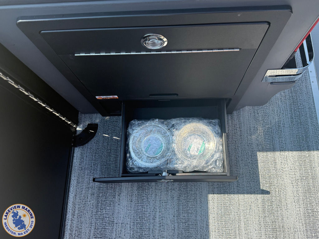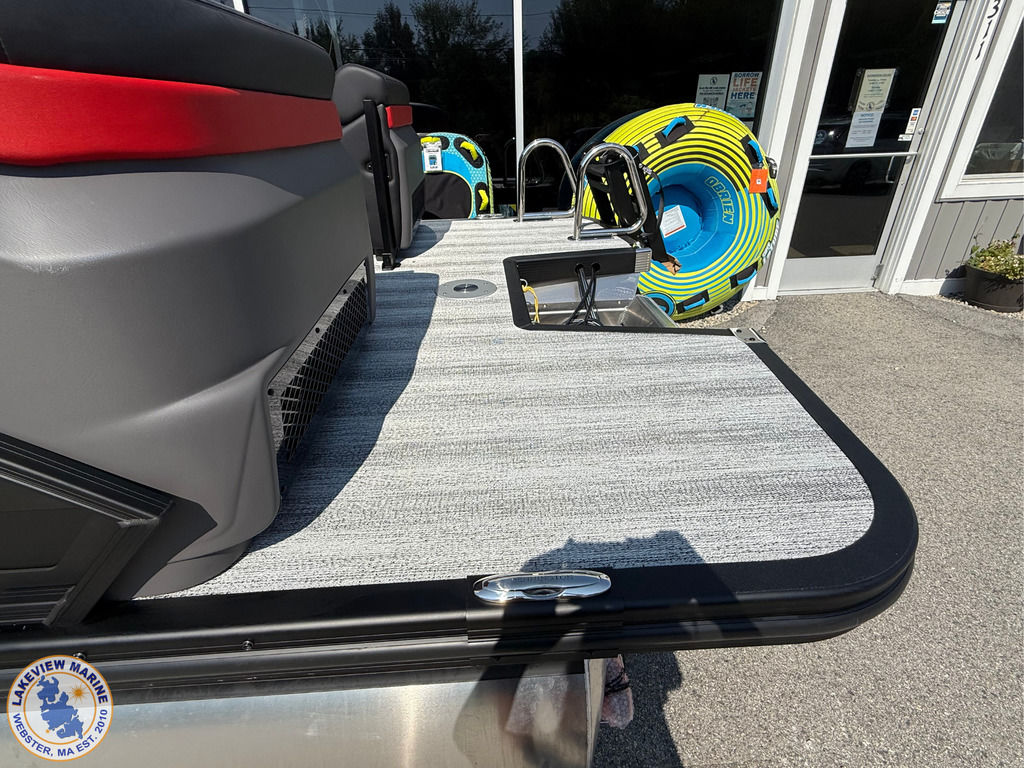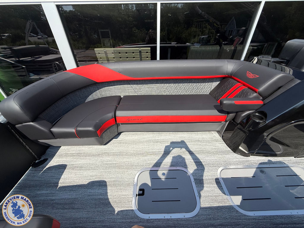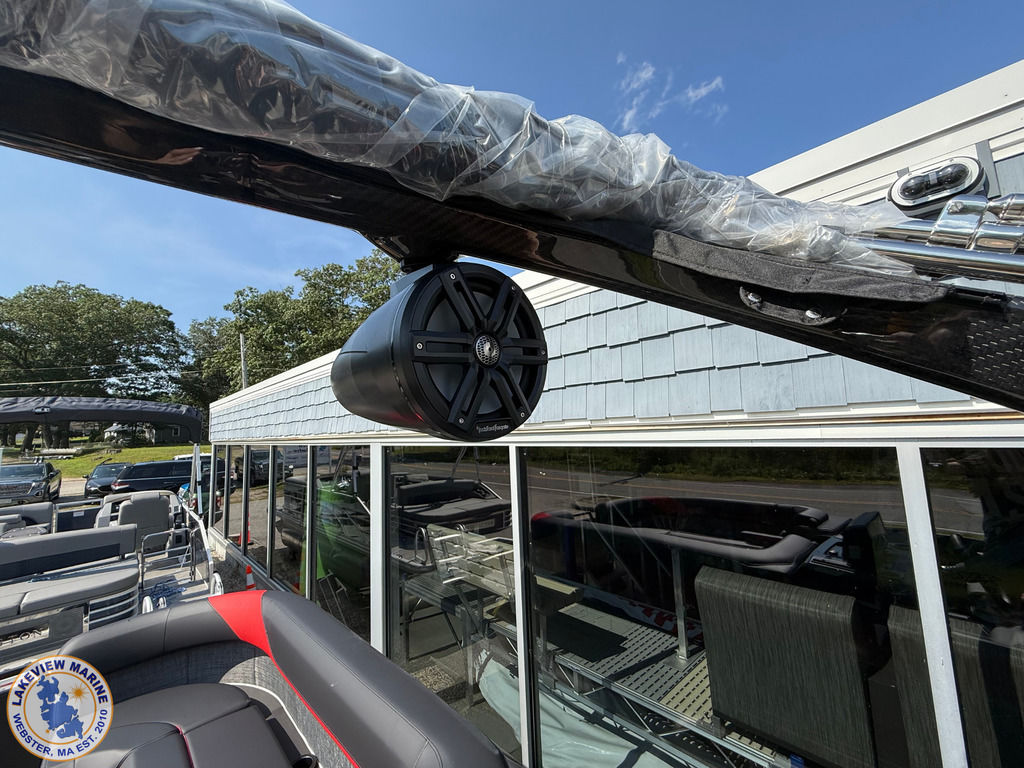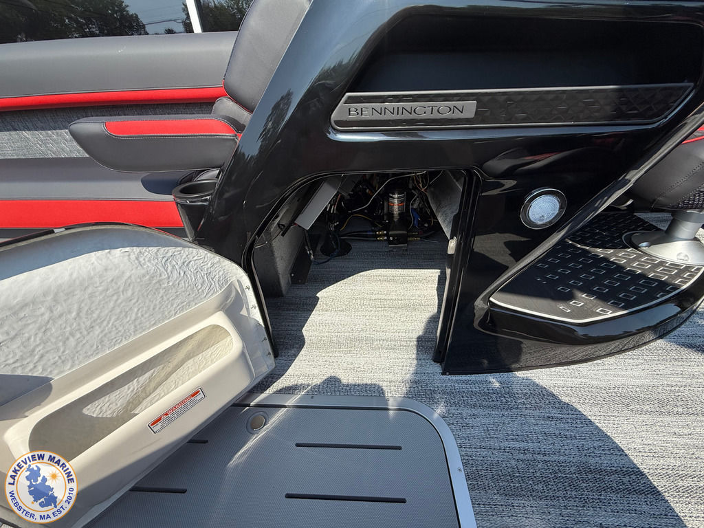 We're excited to welcome the all-new Bennington M Series to our lineup! This sleek model has a Matte Black exterior with the Absolute Red accent panel and can be powered up to 250hp. Features include a Carbon Fiber Tower, 12" Vivid UX touchscreen, 9" Garmin Multi-Function Display and Rockford Fosgate 10" Subwoofer and Amplifier!