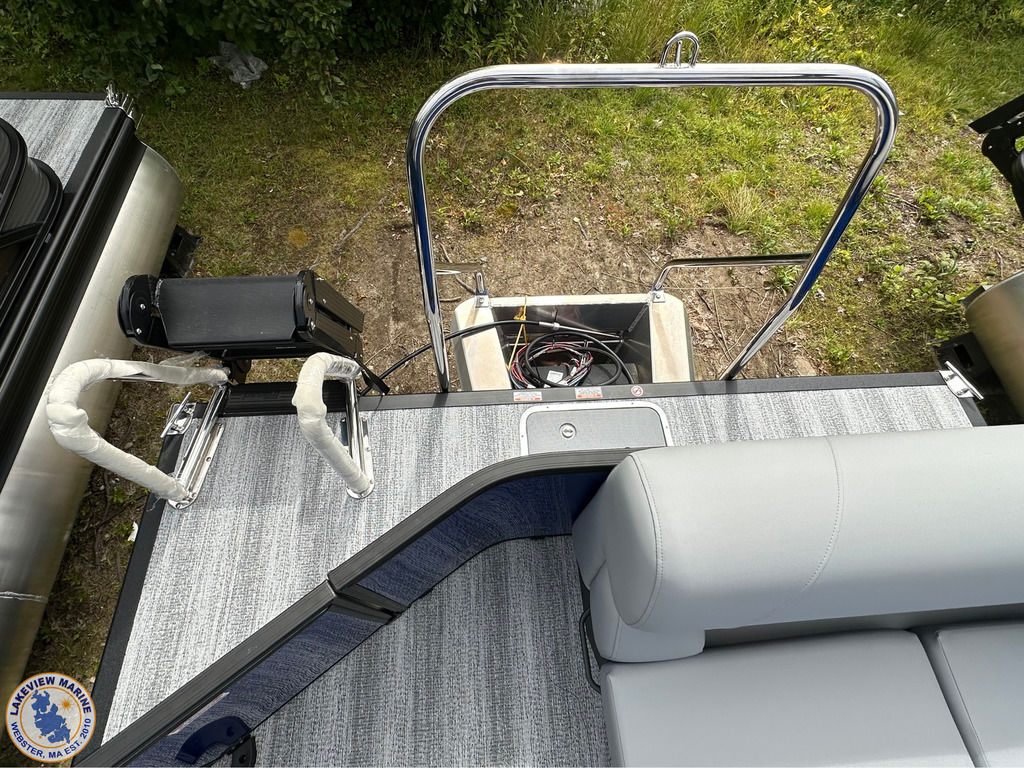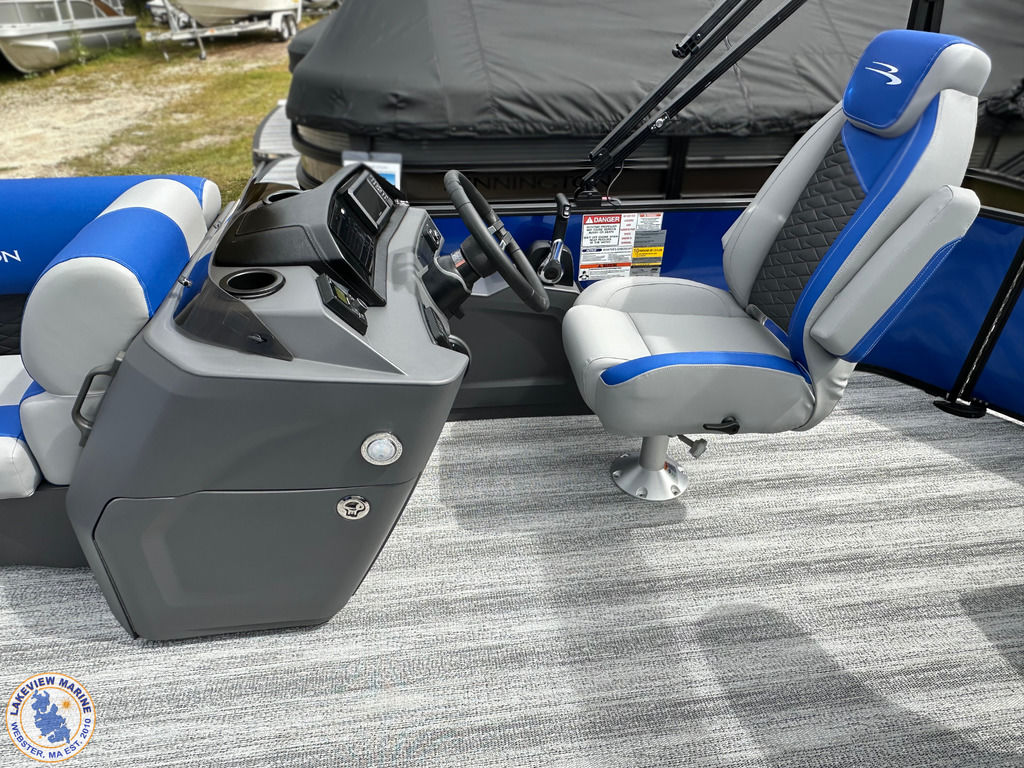 Gorgeous Luminous Blue/Metallic White Bennington with the blackout package paired with the Yamaha 90hp engine just arrived! Ask us about the new Lillipad ladder!