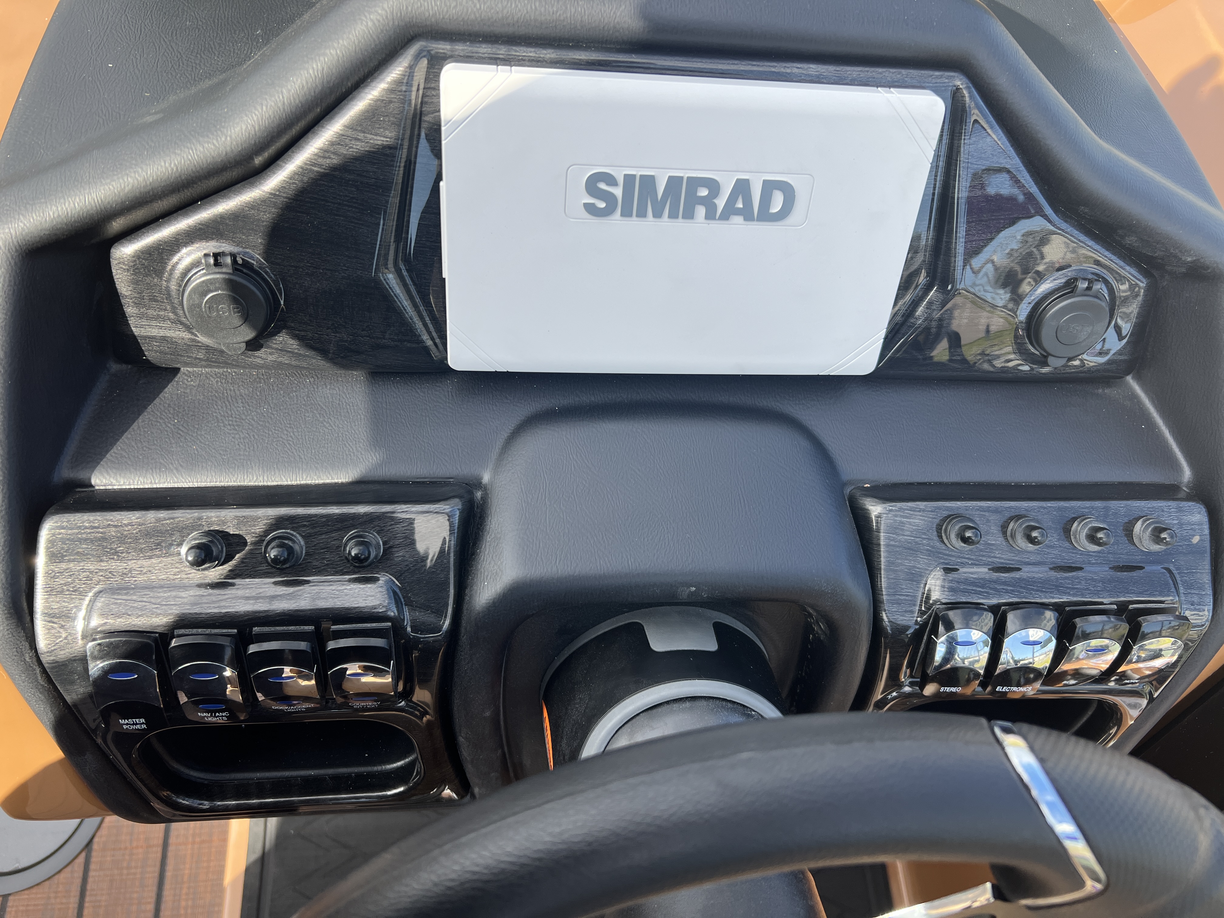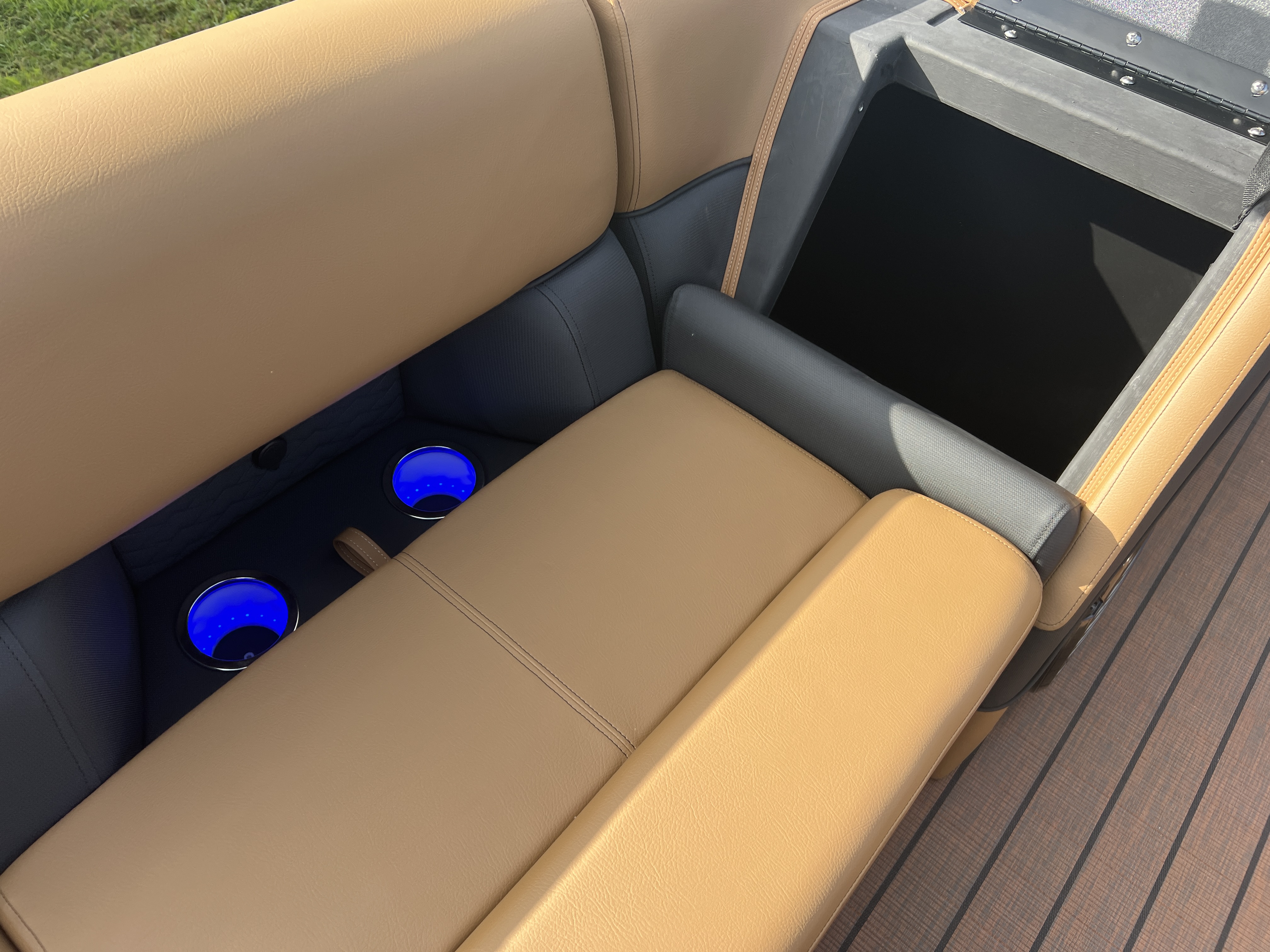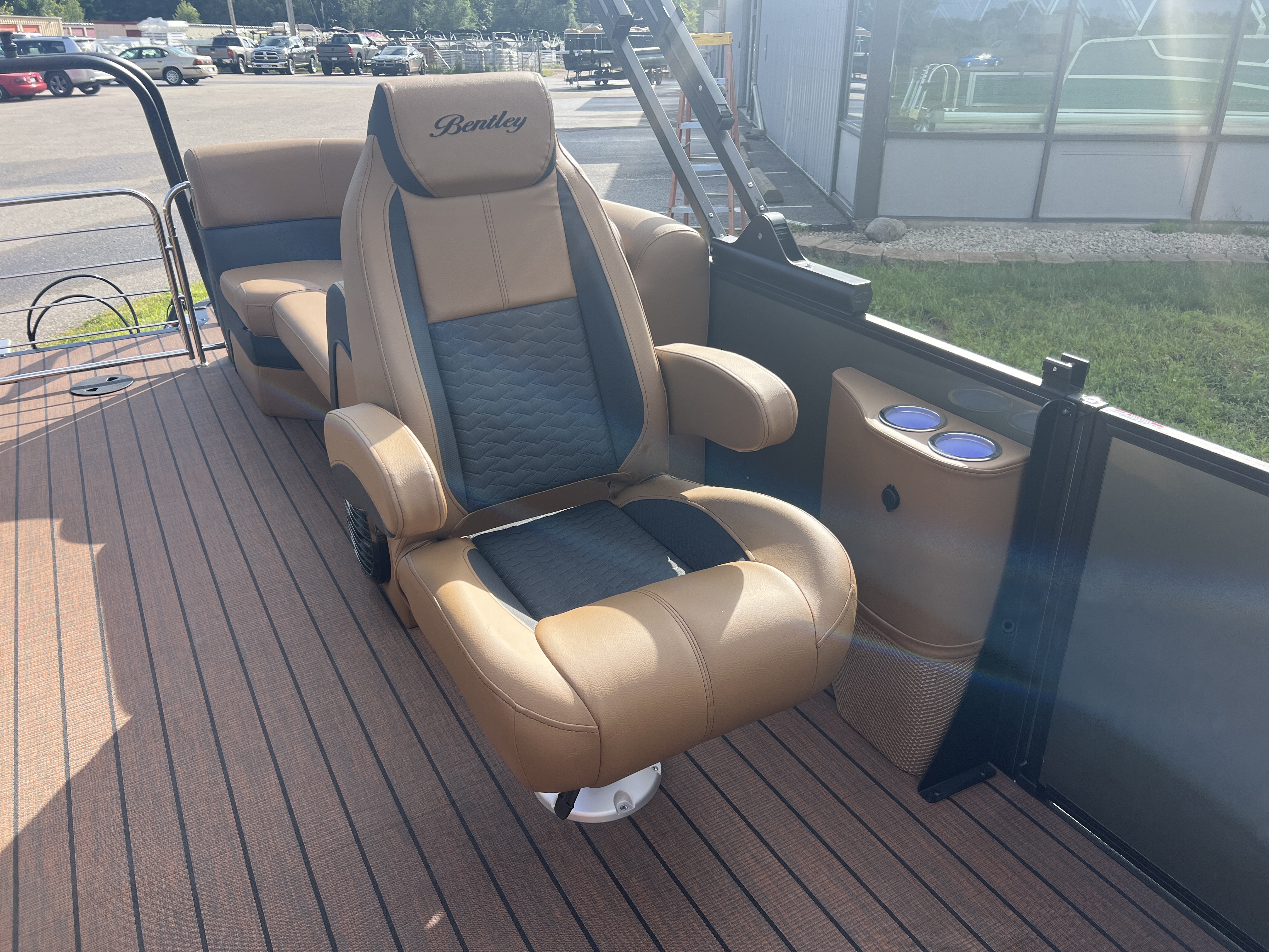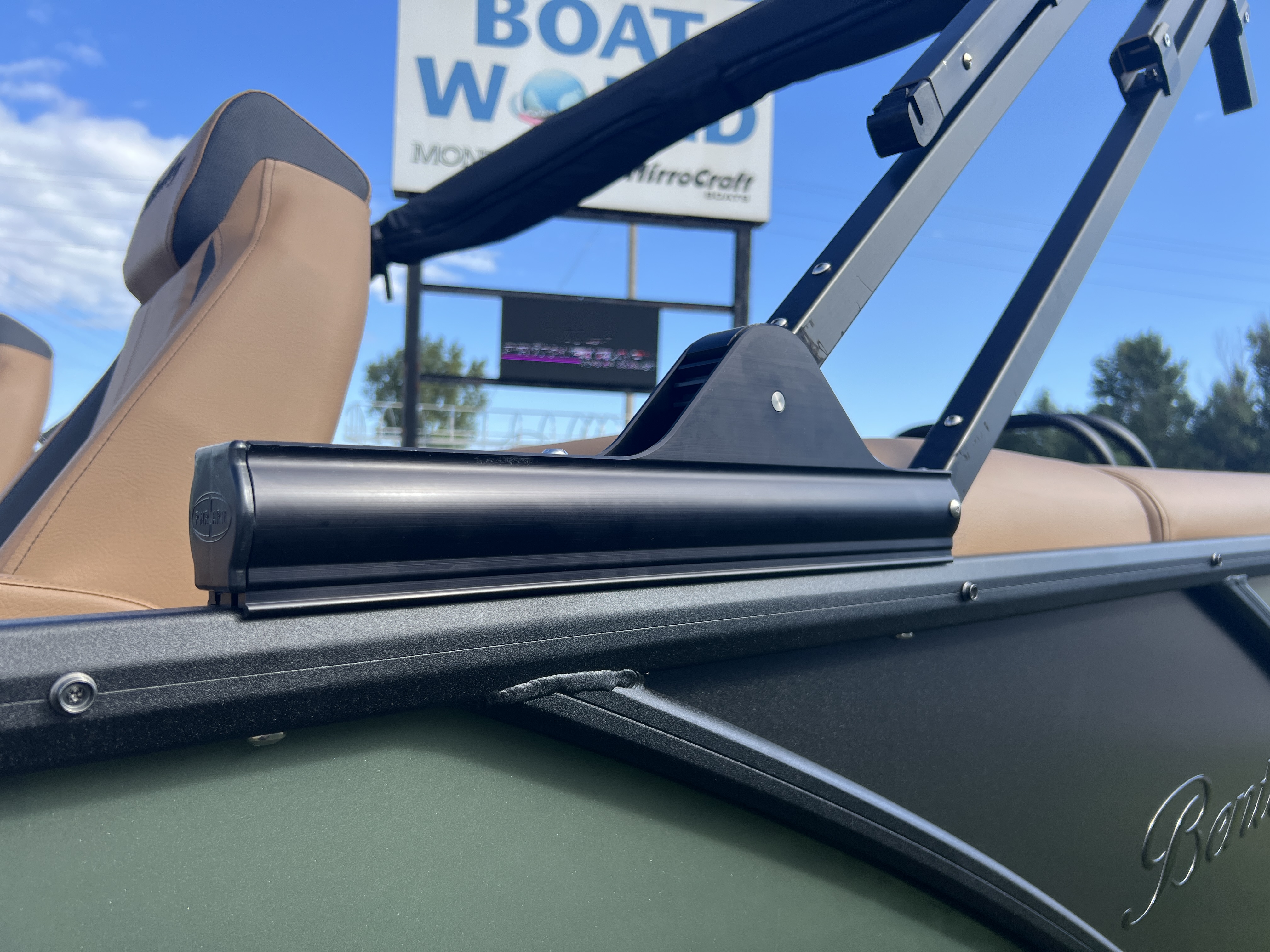 2026 Bentley Elite 223 Admiral Quad Lounge Tritoon Pontoon & Honda 4-Stroke EFI. This Sage Green/Matte Black 22' Quad Lounger Has Front Chaise Lounge Seating With Storage, Rear Chaise Lounge Seating W/Storage, Side By Side Highback Reclining Captain's Seats, Interior Blue LED Package (Lighted Cup Holders & Courtesy Lights), Exterior LED Blue Light Package w/Under Water & Under Deck Lights, Powder Coated Rails, Stainless Steel Flip Up Cleats, Simrad GPS Touch Screen Gauges, Simrad GPS Depth Finder, Black Ski Tow Bar, Premium Sound Package w/Bluetooth Radio w/6 Speakers & 10" Sub, Table, Raised Fiberglass Helm w/Storage, Walnut Teak Vinyl Flooring, Playpen Cover, Hydraulic Tilt Steering, Lifting Strakes, Lillipad Easy Step Ladder, 4 Fender Pro, Brandy Interior Package, 25" Tubes, Wireless Phone Charger, Multiple USB Charging Ports, Lounge End Table, Movable Bow Filler, New Battery, Electric Bimini Top, LED Docking Lights, LED NAV Lights, Blackout Package, Black Graphics Package, EZ View Bow Gate, Dog Bowls, Ski Locker Storage In Tube, Built-In 54 Gallon Gas Tank. Rated For 15 People!