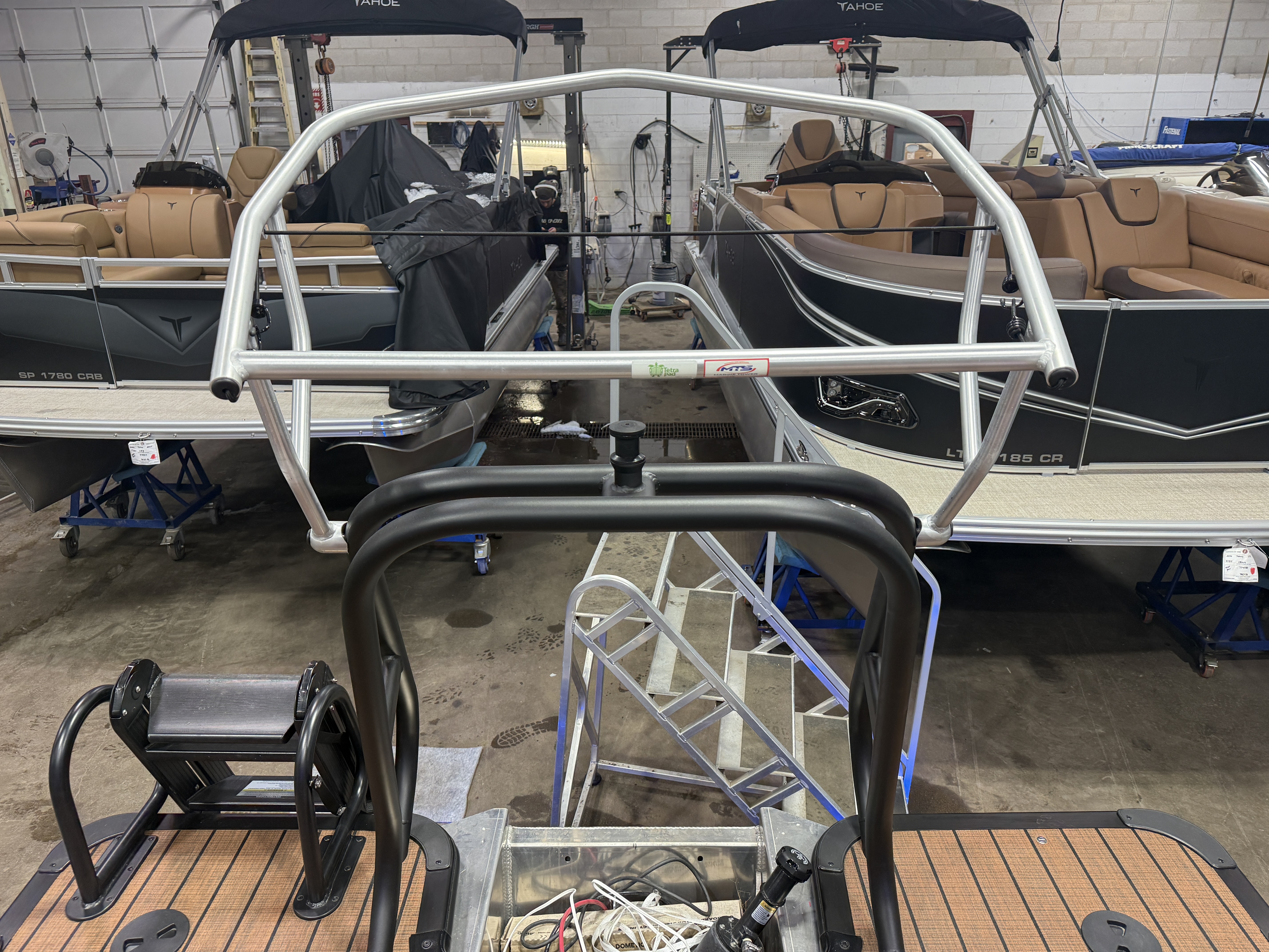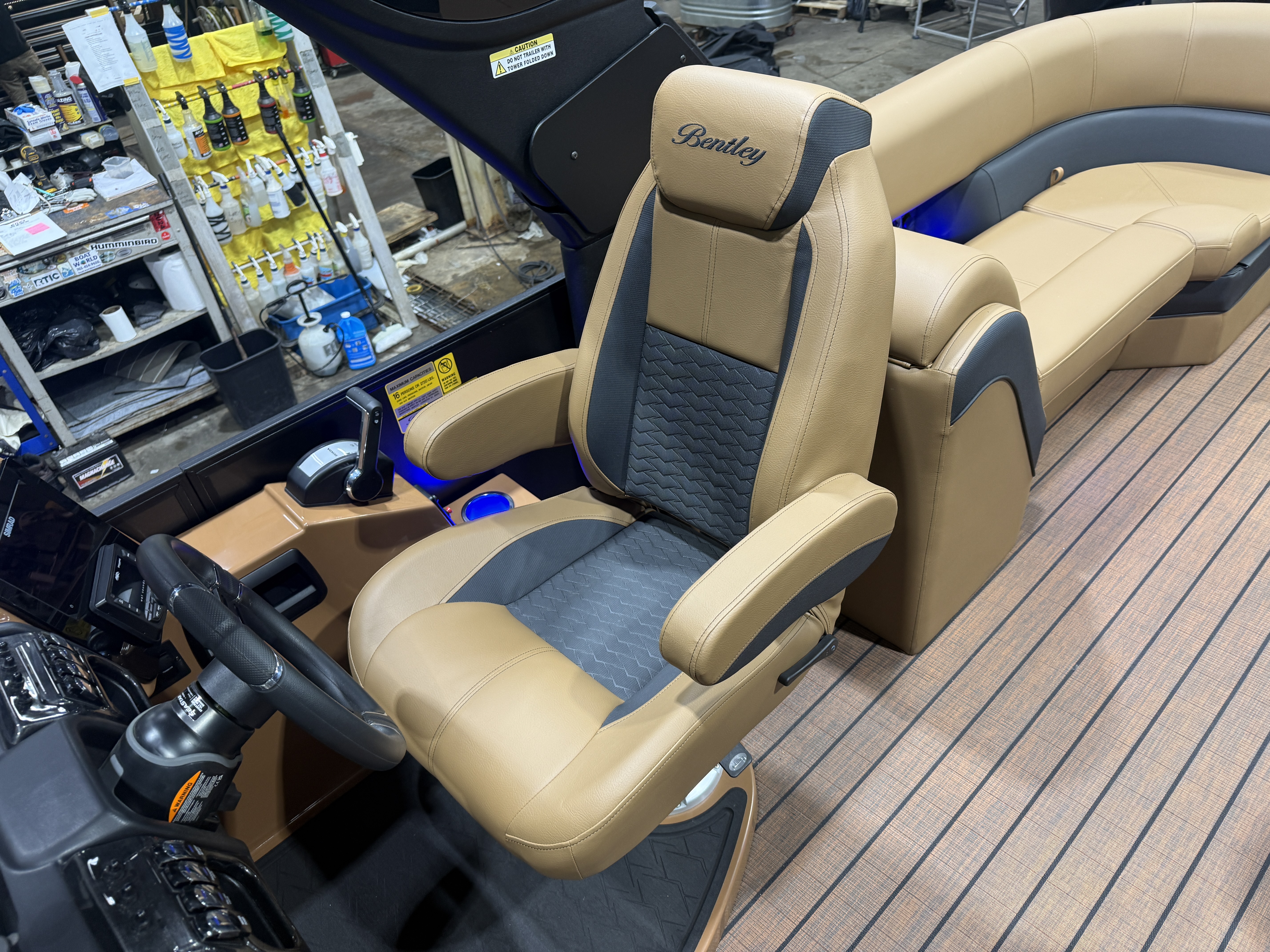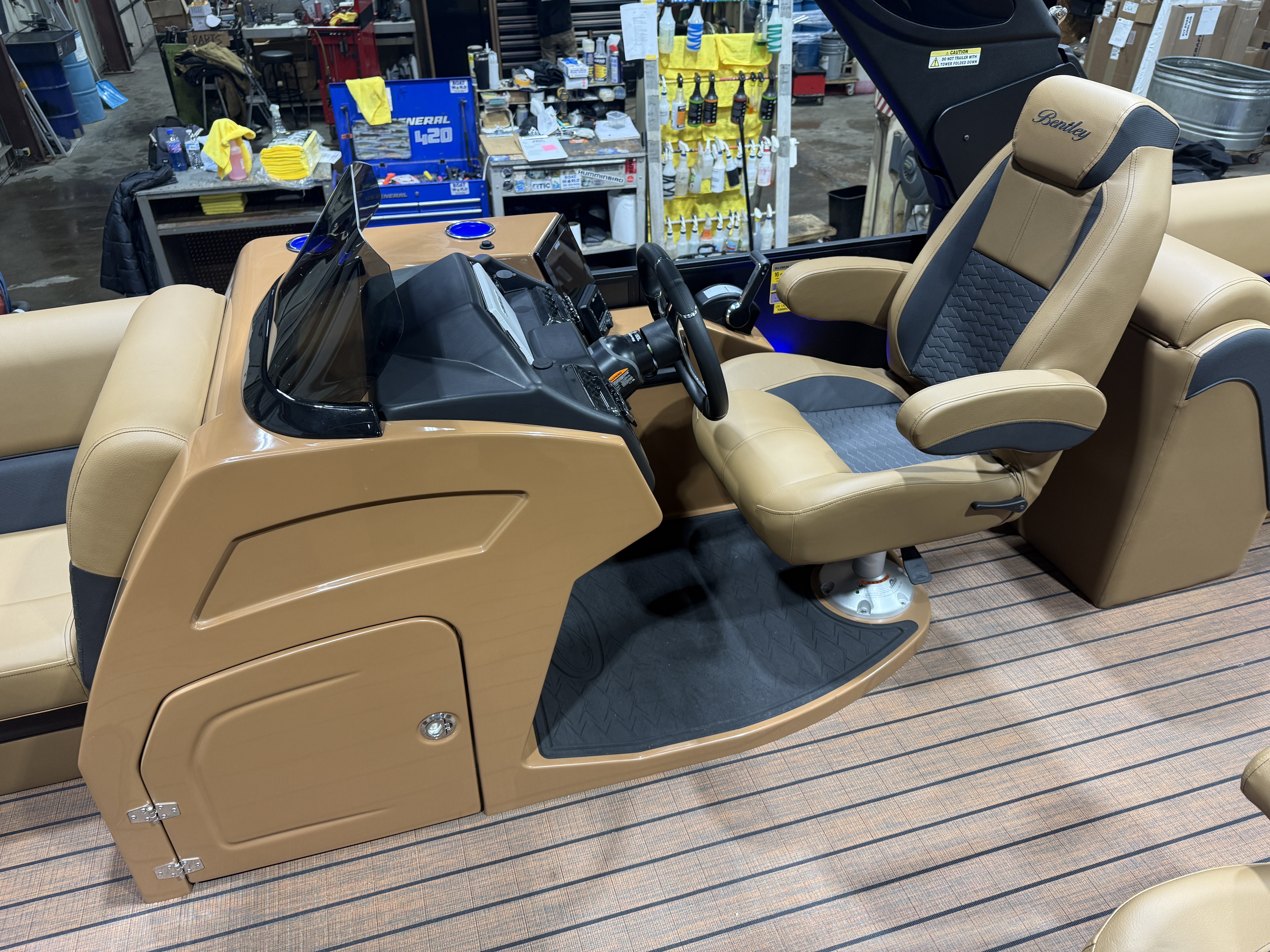 2026 Bentley Elite 253 Admiral Quad Lounge Tritoon Pontoon & Honda 350HP 4-Stroke EFI. This Matte Black Walls 25' Tri-toon Quad Lounger Has Front Chaise Lounge Seating With Storage, Rear Chaise Lounge Seating W/Storage, Side By Side Highback Reclining Captain's Seats, Interior & Exterior LED Blue Light Package w/Under Water & Under Deck Lights, Powder Coated Rails, Stainless Steel Flip Up Cleats, Simrad GPS Touch Screen Gauges, Simrad GPS Depth Finder, Black Ski Tow Bar, Premium Wet Sound Package w/Bluetooth Radio w/6 Speakers & 10" Sub, Two Tables, Raised Fiberglass Helm w/Storage, Walnut Teak Vinyl Flooring, Playpen Cover, Power Assist Steering, Upgraded 6 Lifting Strakes, High HD Package, Underneath Sheeting, Lillipad Easy Step Ladder, 4 Fender Pro, Brandy Interior Package w/Black Accent, 25" Tubes, Wireless Phone Charger, Multiple USB Charging Ports, Lounge End Table, Movable Bow Filler(Not In Pics), New Battery, Noco Battery Charger, Electric Wake Tower w/Bimini Top & Speakers, Blackout Package, Windshield, Black Graphics Package, EZ View Bow Gate, Dog Bowls, LED Docking Lights, LED NAV Lights, Ski Locker Storage In Tube, Built-In 54 Gallon Gas Tank, Stainless Steel Rail Mount Flag Holder w/AMERICAN Flag, Tetra-Pad Ski Tow Rack, Ghost Mounts For Lillipad Accessories. Rated For 16 People!