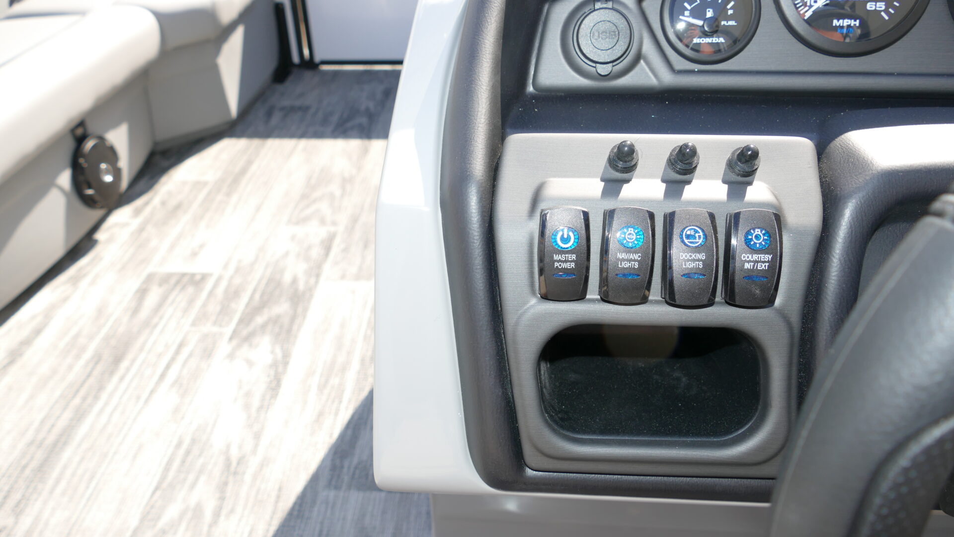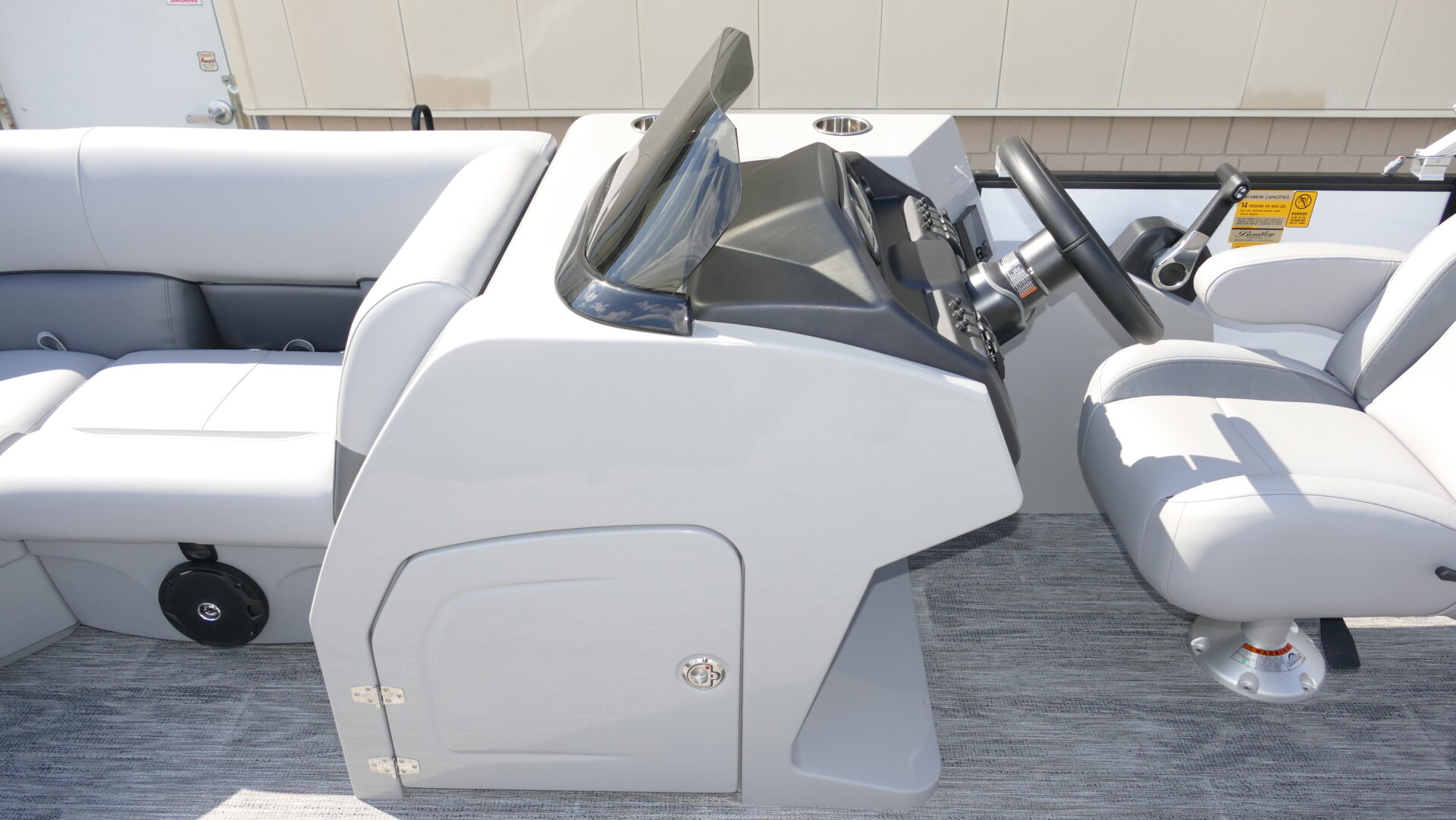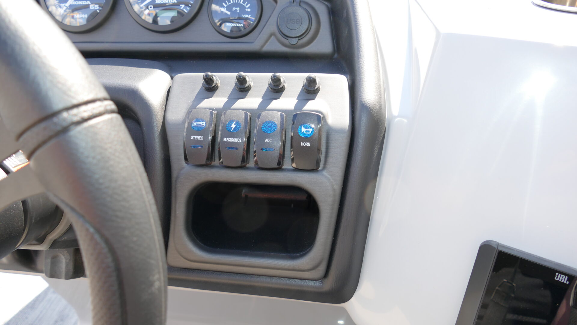 Exterior Colors : White, Exterior Accent Color: Matte Black, Rail Color: Textured Black, Interior Colors : Gray, Flooring : Lakeport Plank Full Length Flooring, Honda BF90 4 Stroke, SE Package Includes: Soft Touch Upholstery, Stainless Steel Cup Holders, Integrated Cupholders, Black Graphics Package, 10″ Bimini Top, Playpen Cover, Windshield, Honda Analog Gauges, Installed Battery Cables, Aluminum Propeller, 1 Cranking Battery, Fire Extinguisher, Lifetime Plus 5 Year Warranty. Trailer Available For An Additional Cost.