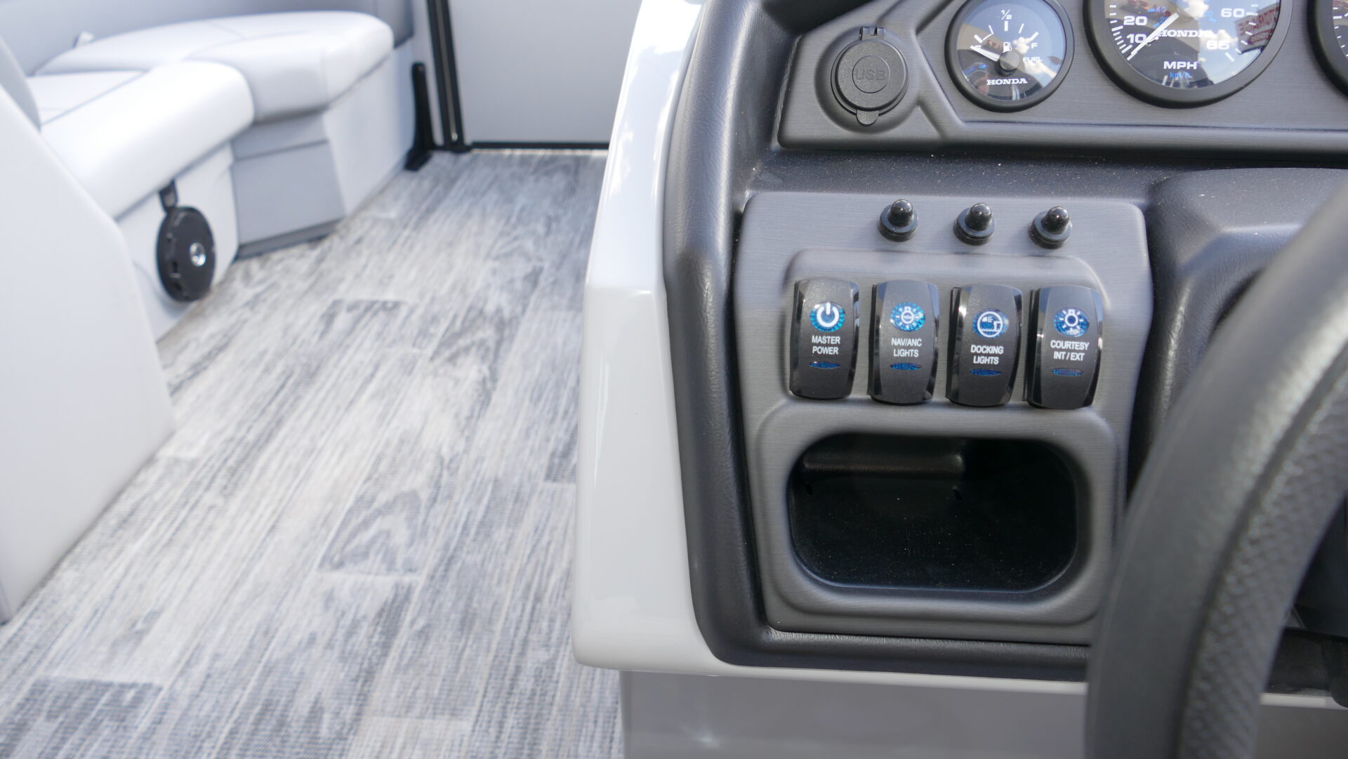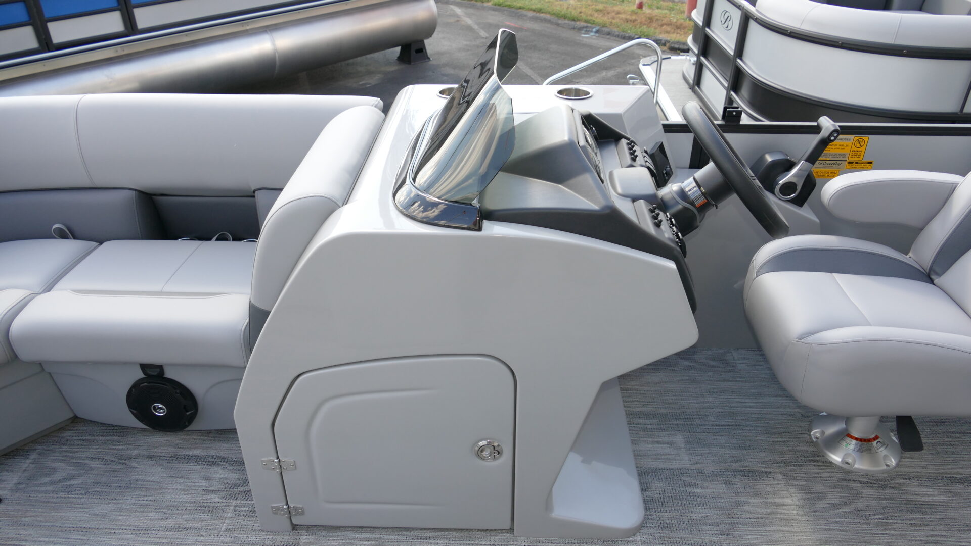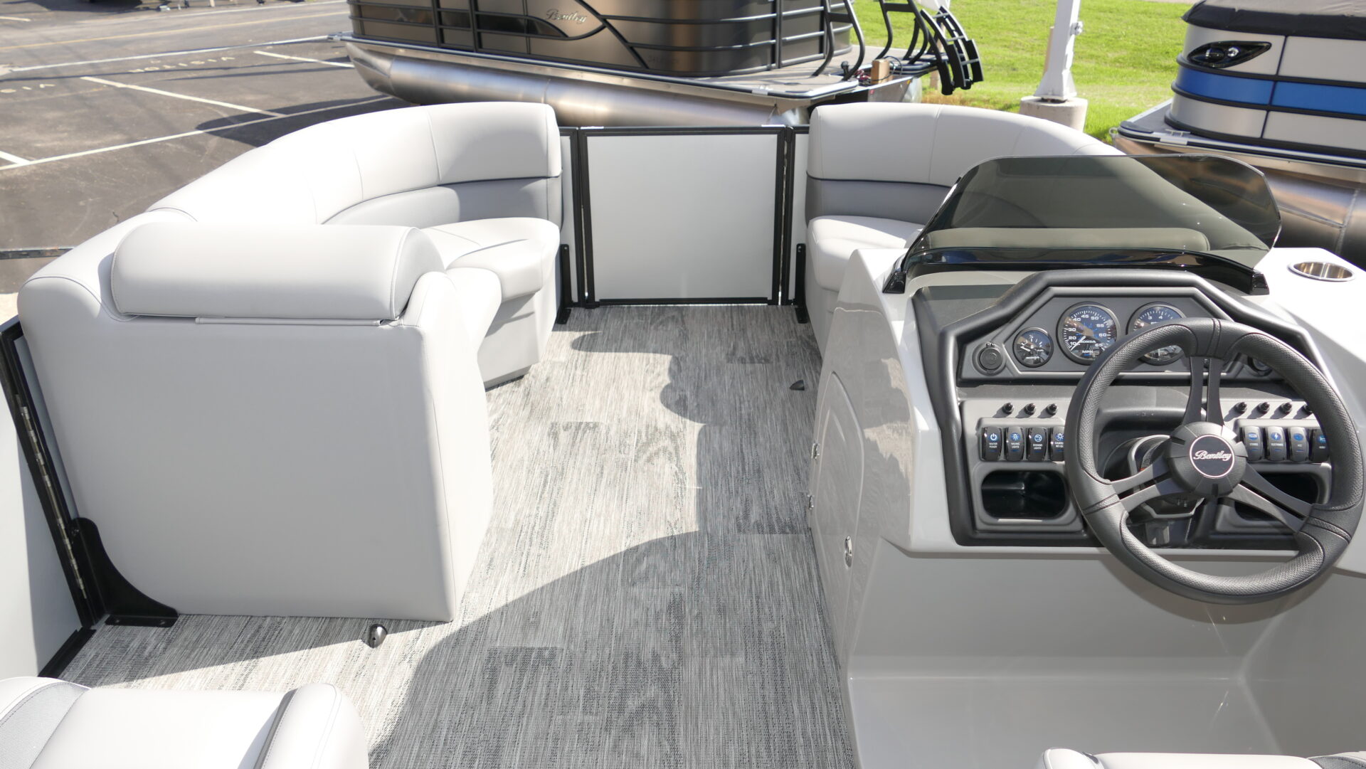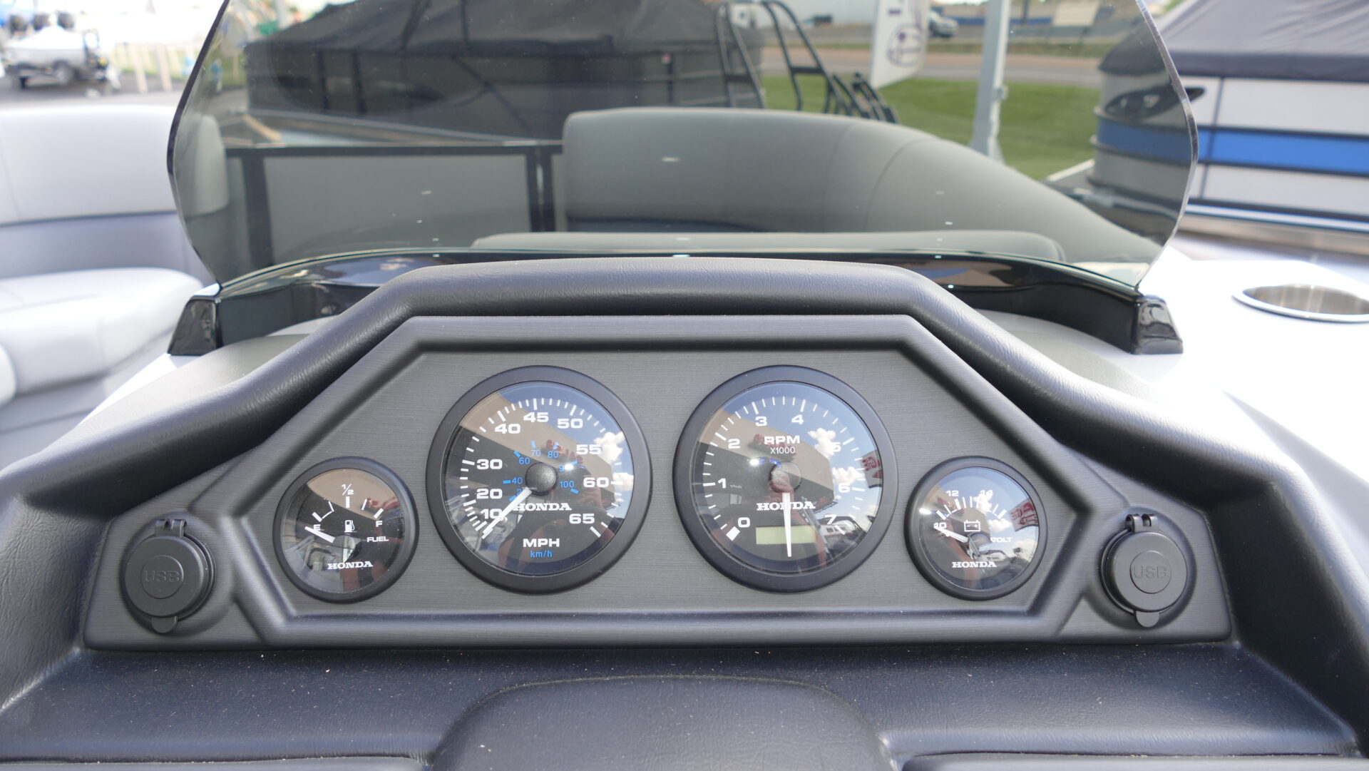 Exterior Colors : Matte Silver, Exterior Accent Color: Indigo Blue, Rail Color: Textured Black, Interior Colors : Gray, Flooring : Lakeport Plank Gray Full Length Flooring, Honda BF115 4 Stroke, SE Package Includes: Soft Touch Upholstery, Stainless Steel Cup Holders, Integrated Cupholders, Xtreme Tilt Steering, 10′ Bimini Top, Ski Tow Bar, Playpen Cover, Windshield, Honda Analog Gauges, Installed Battery Cables, Aluminum Propeller, 1 Cranking Battery, Fire Extinguisher, Lifetime Plus 5 Year Warranty. Trailer Available For An Additional Cost.