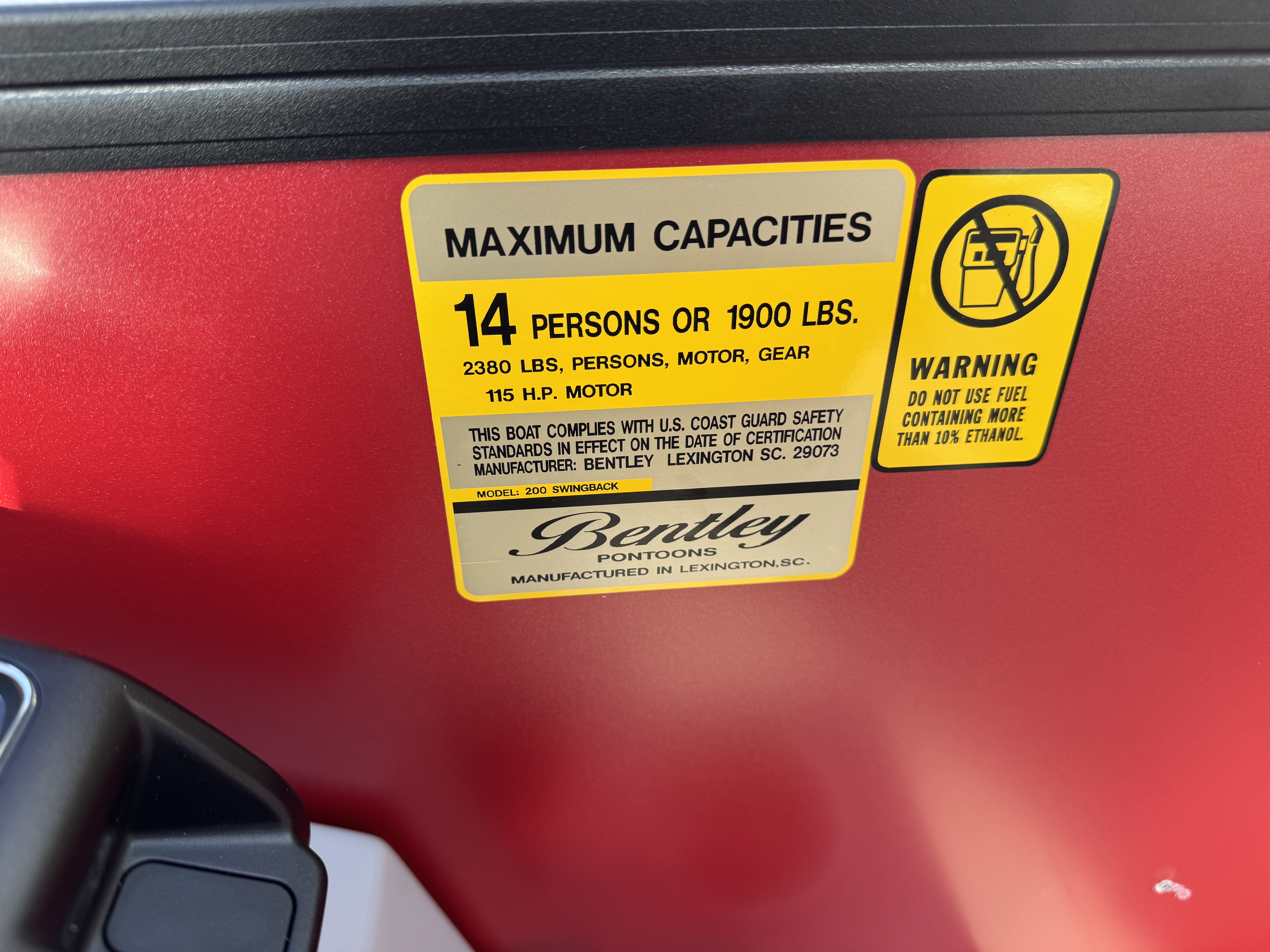 2026 Bentley Legacy 200 Swingback Pontoon & Honda 4-Stroke EFI. This 20' Matte Red Walls Pontoon