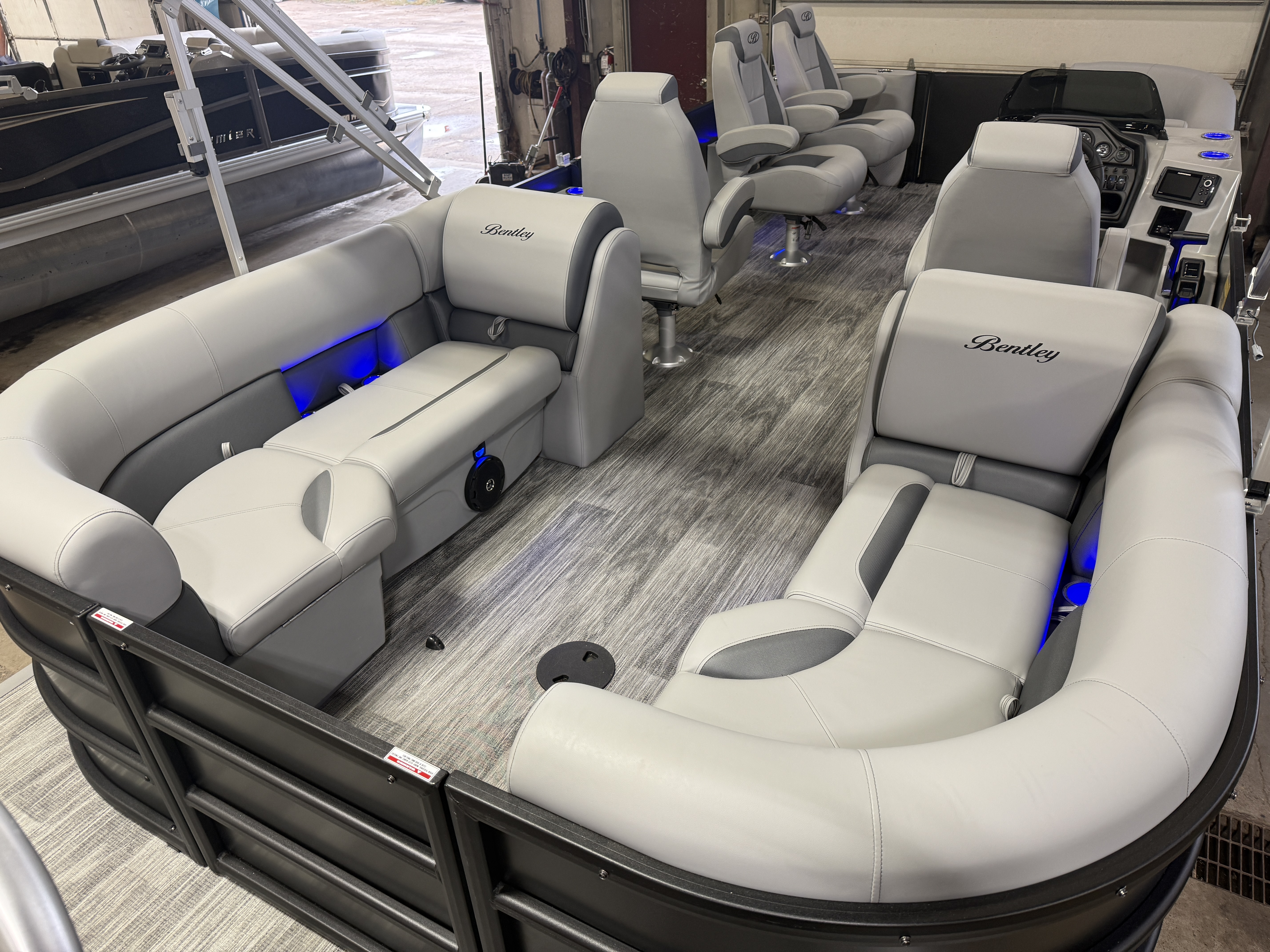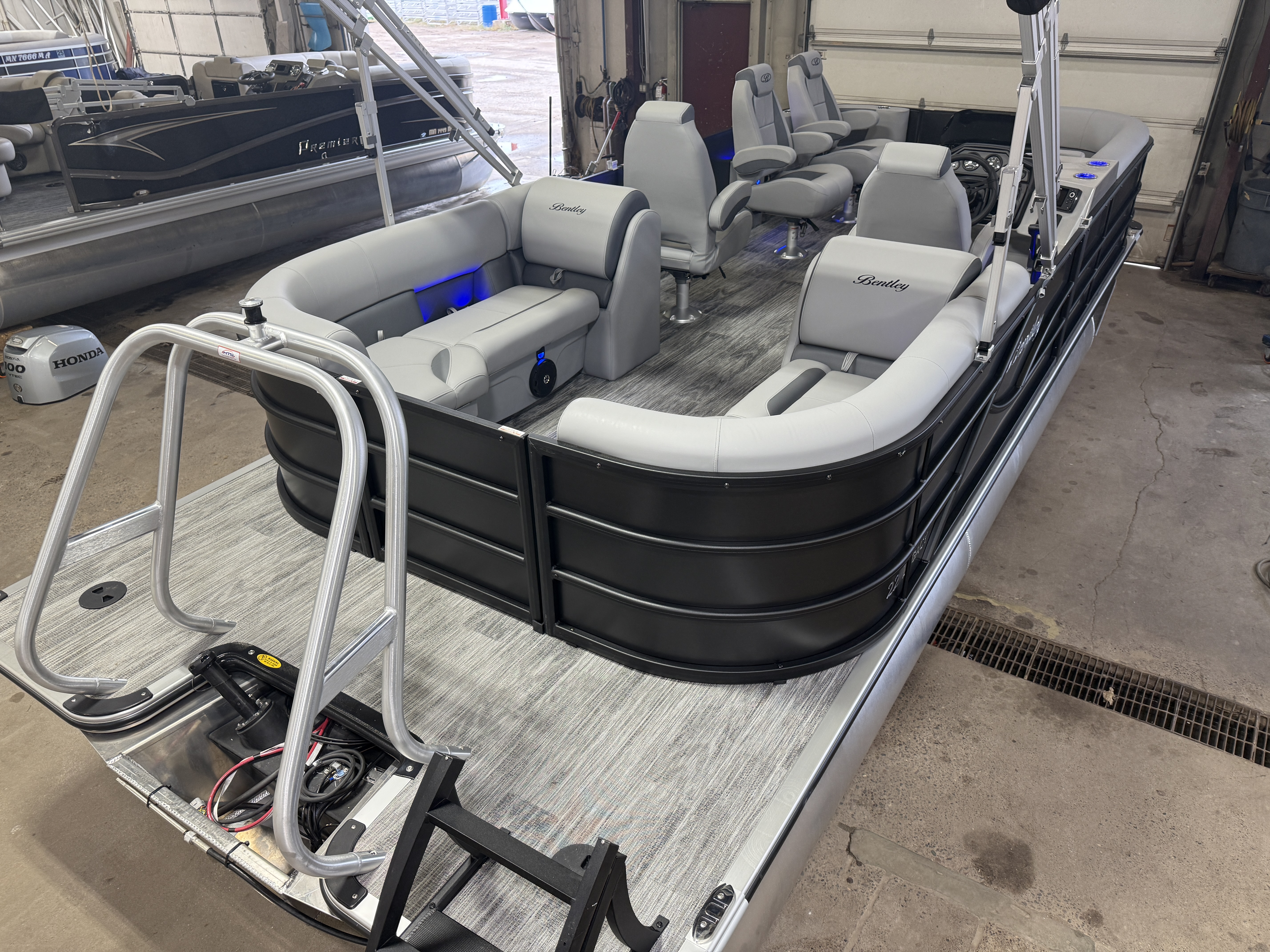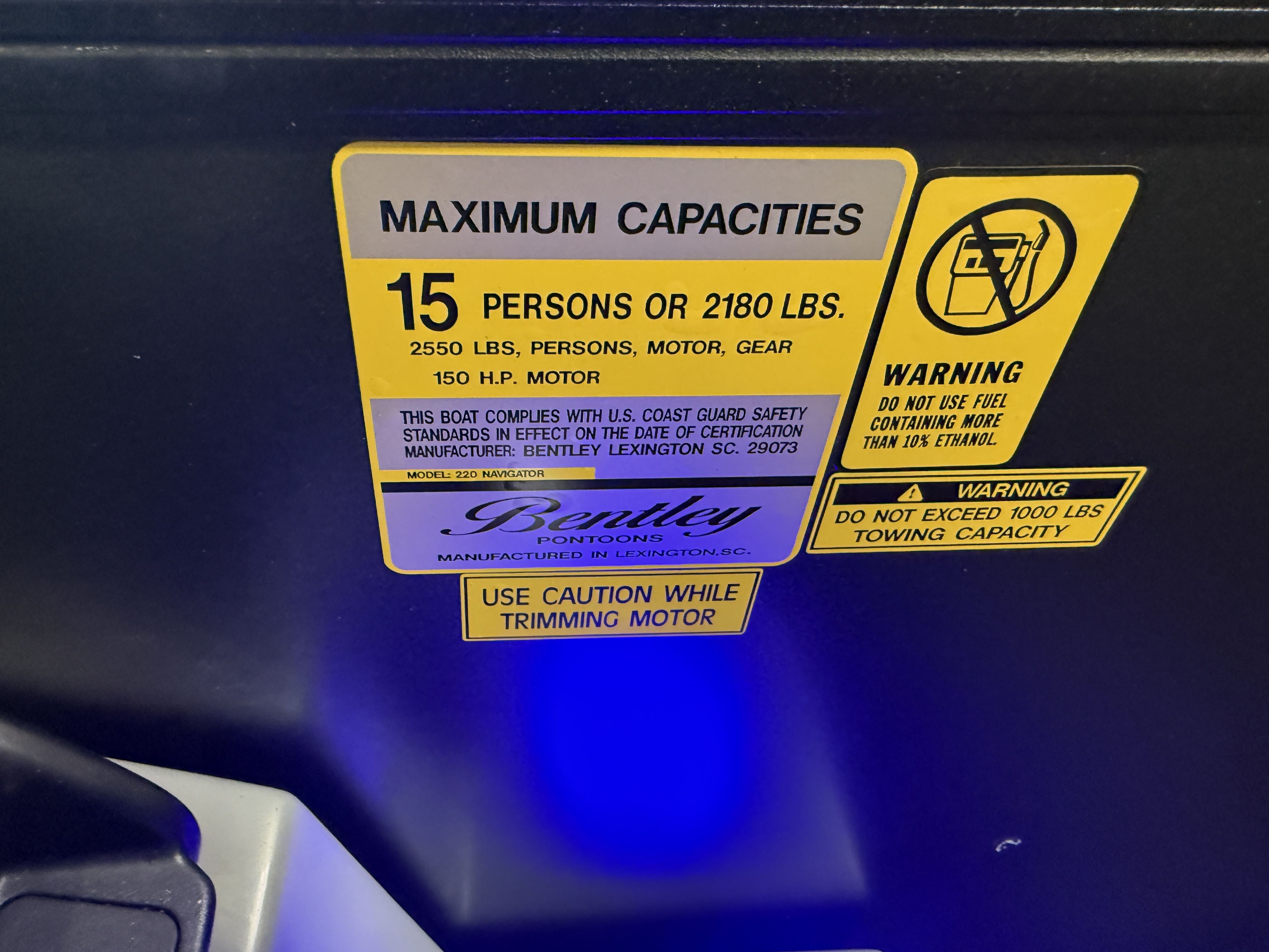 2026 Bentley Legacy 220 Navigator DL Quad Lounge Pontoon & Honda 4-Stroke EFI. This 22' Has Starboard Front Chaise Lounge Seating With Storage, Portside Side By Side High Back Relining Seats w/Cup Holders, Rear Chaise Lounge Seating W/Storage, Side By Side High-Back Reclining Captain's Seats, Interior Blue LED Package (Lighted Cup Holders & Courtesy Lights), Powder Coated Rails, Stainless Steel Flip Up Cleats, Humminbird Helix 5 GPS & Depth Finder, Ski Tow Bar, Bluetooth Radio w/4 Speakers, Table, Fiberglass Helm w/Storage, Lakeport Plank Vinyl Flooring, Playpen Cover, Livewell, Tilt Steering, Rear Ladder, Windshield, Built-In Garbage Can, Gauge Package w/ Hour Meter, 25" Tubes, LED NAV Lights, LED Docking Lights, New Battery, Bimini Top, Built-In 32 Gallon Gas Tank. Rated For 15 People!