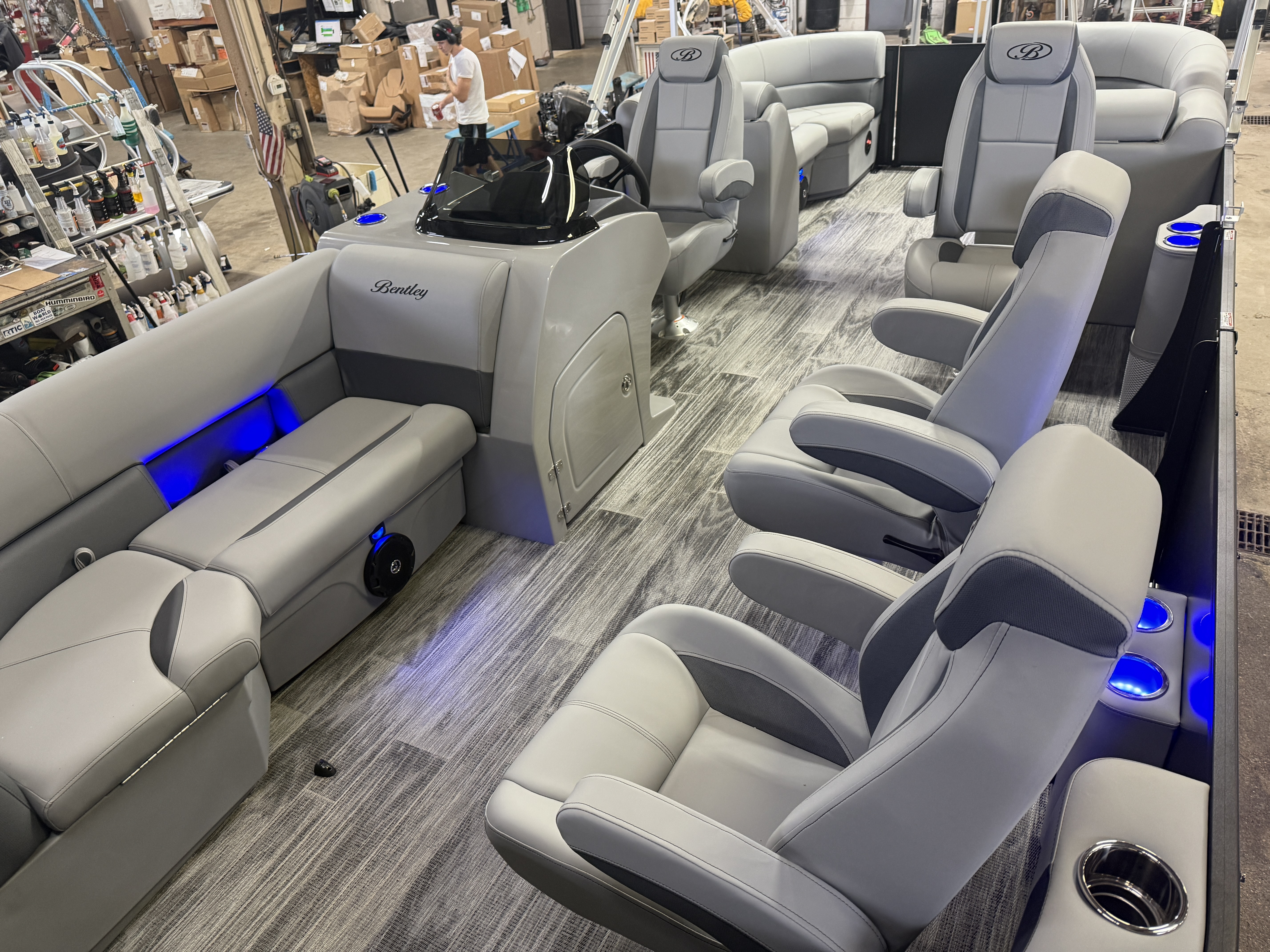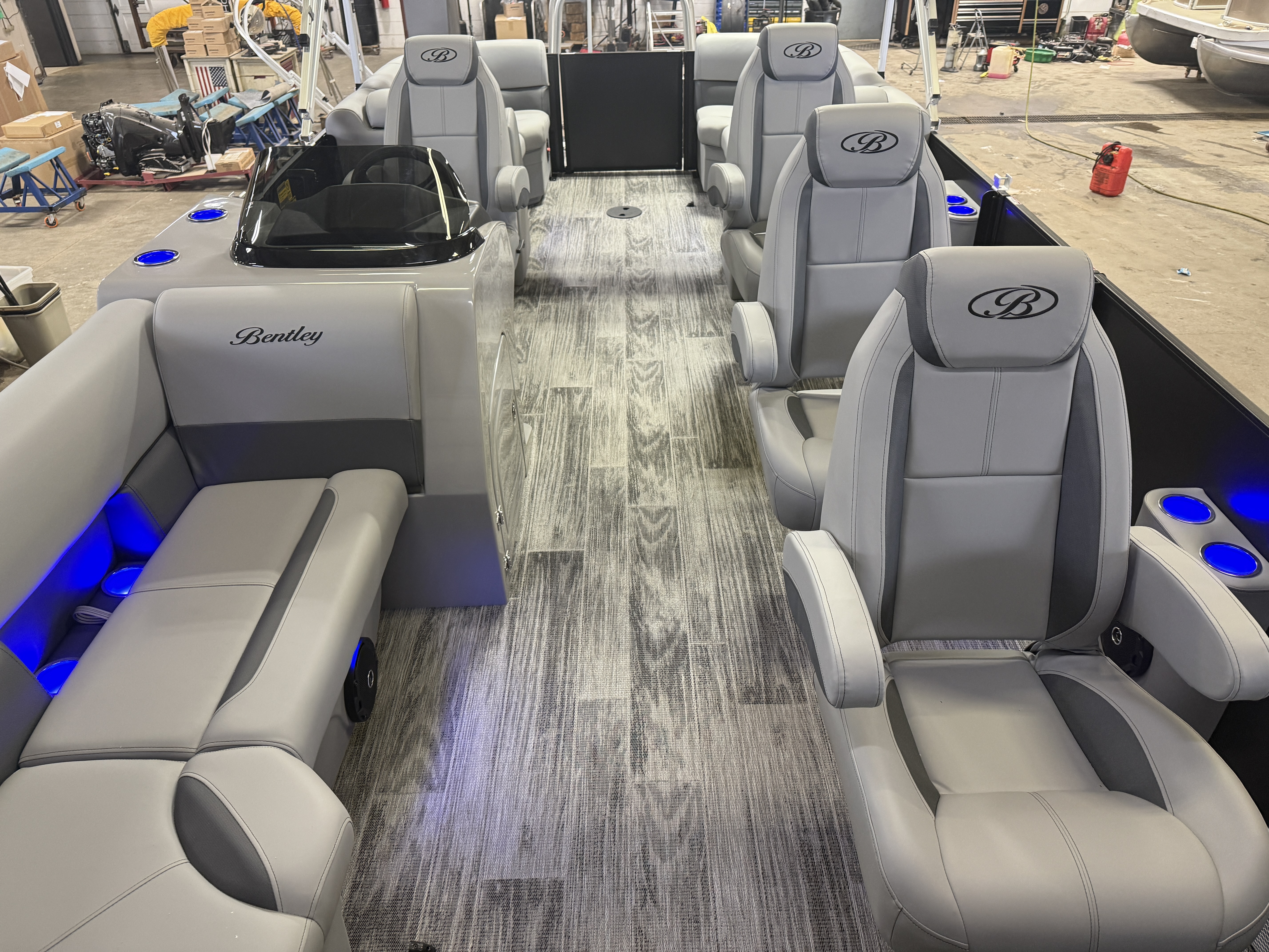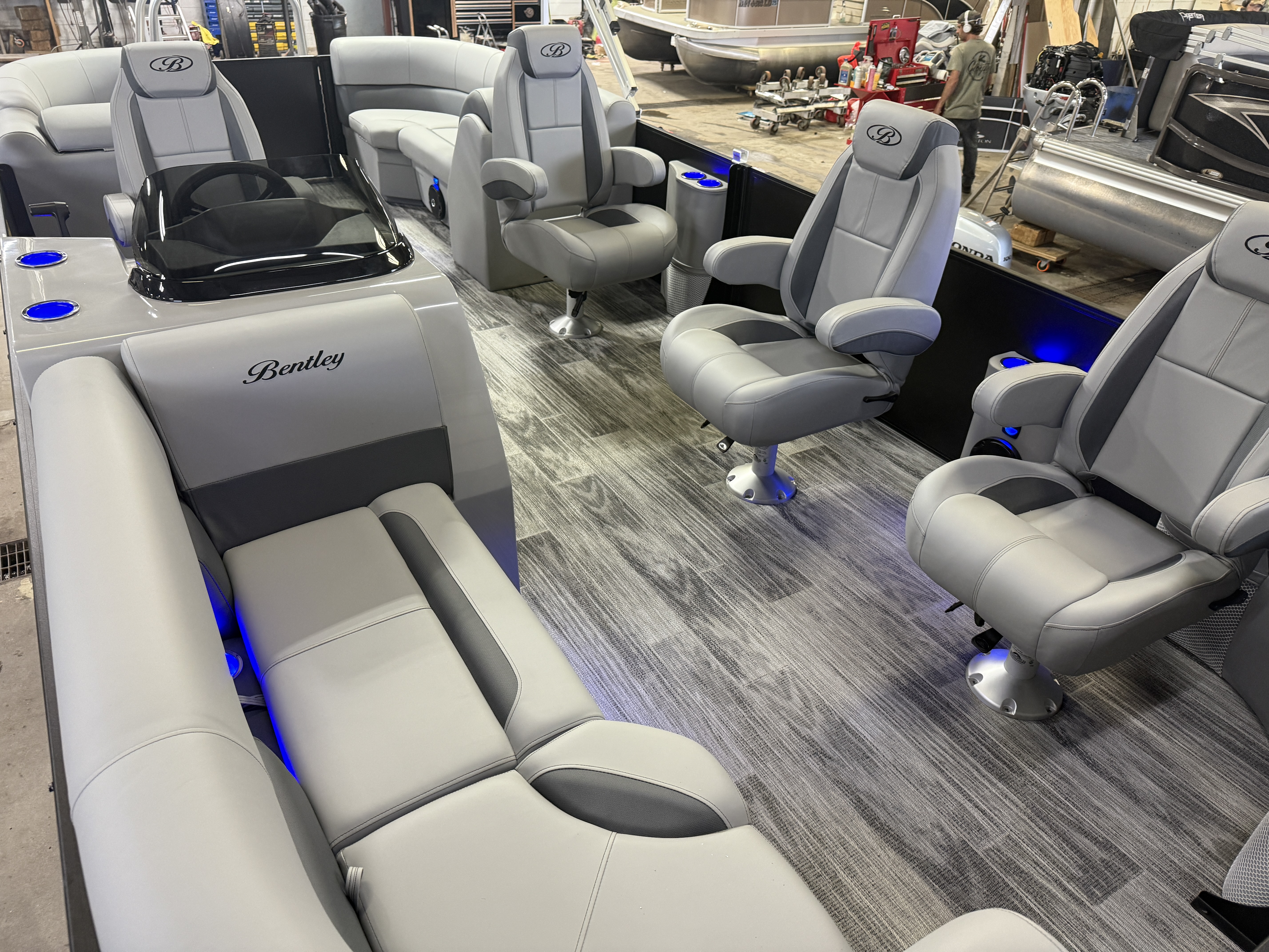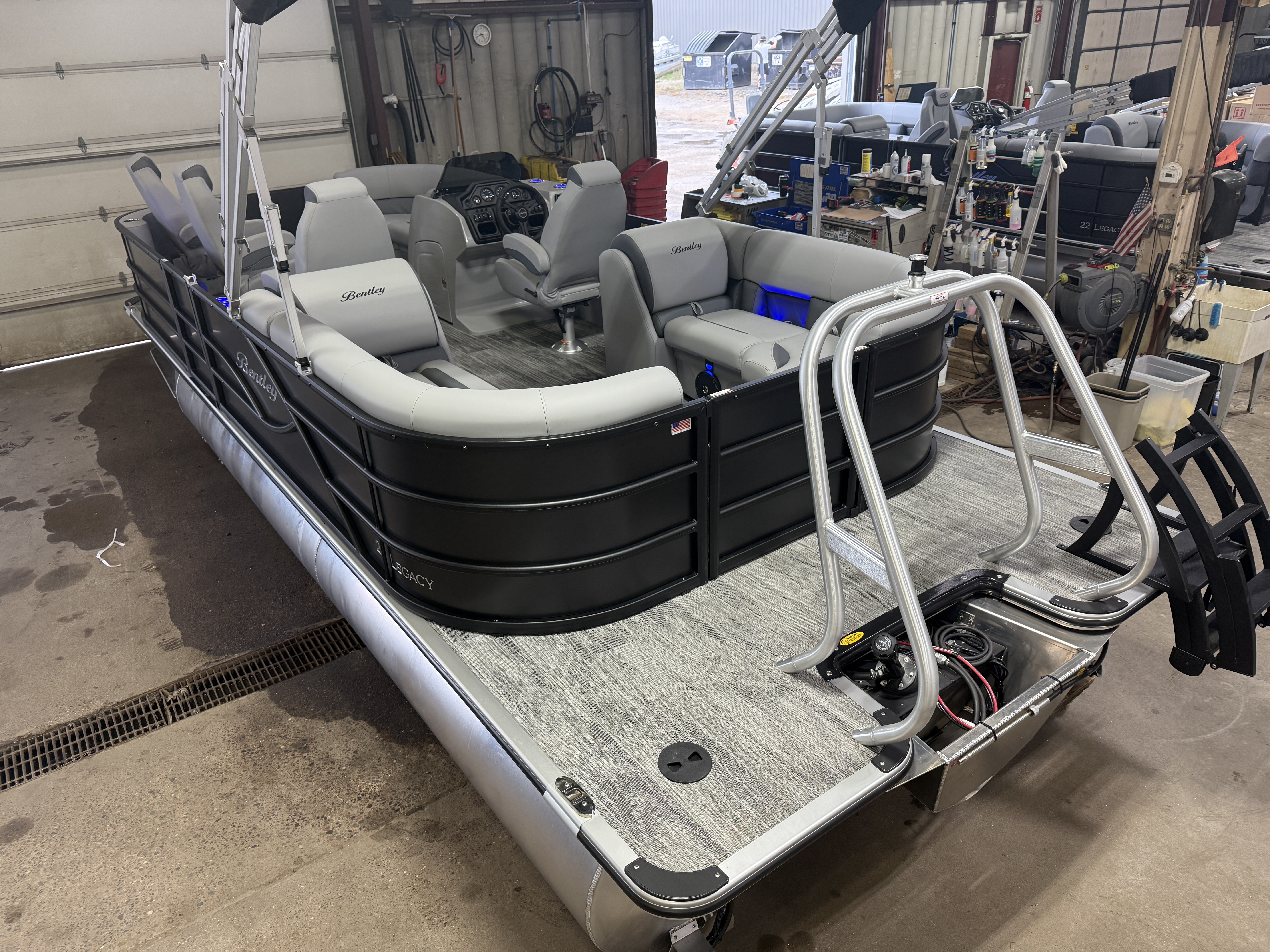 2026 Bentley Legacy 220 Navigator DL Quad Lounge Pontoon & Honda 4-Stroke EFI. This 22' Has Starboard Front Chaise Lounge Seating With Storage, Portside Side By Side High Back Relining Seats w/Cup Holders, Rear Chaise Lounge Seating W/Storage, Side By Side High-Back Reclining Captain's Seats, Interior Blue LED Package (Lighted Cup Holders & Courtesy Lights), Powder Coated Rails, Stainless Steel Flip Up Cleats, Humminbird Helix 5 GPS & Depth Finder, Ski Tow Bar, Bluetooth Radio w/4 Speakers, Table, Fiberglass Helm w/Storage, Lakeport Plank Vinyl Flooring, Playpen Cover, Livewell, Tilt Steering, Rear Ladder, Windshield, Built-In Garbage Can, Gauge Package w/ Hour Meter, 25" Tubes, LED NAV Lights, LED Docking Lights, New Battery, Bimini Top, Built-In 32 Gallon Gas Tank. Rated For 15 People!