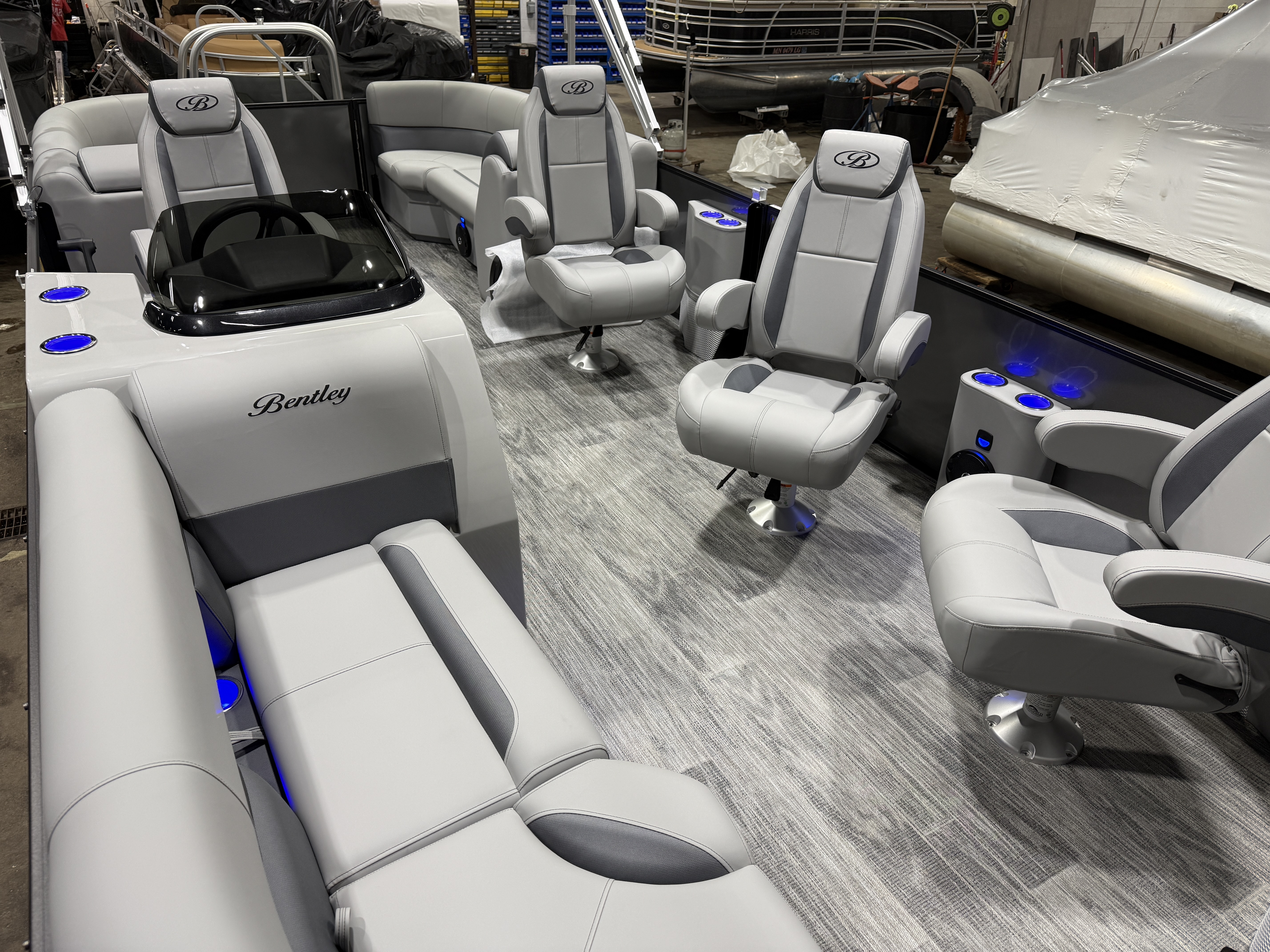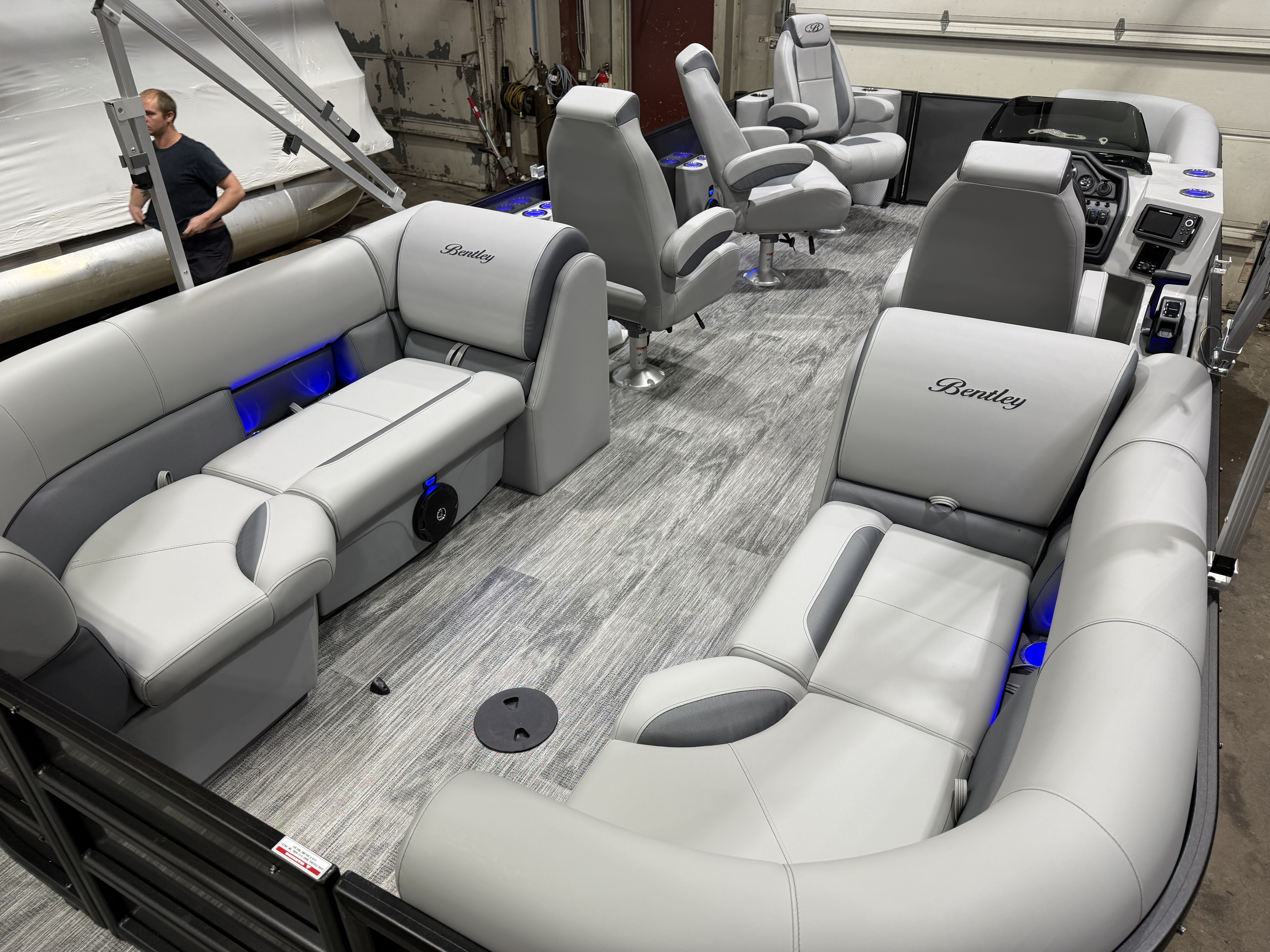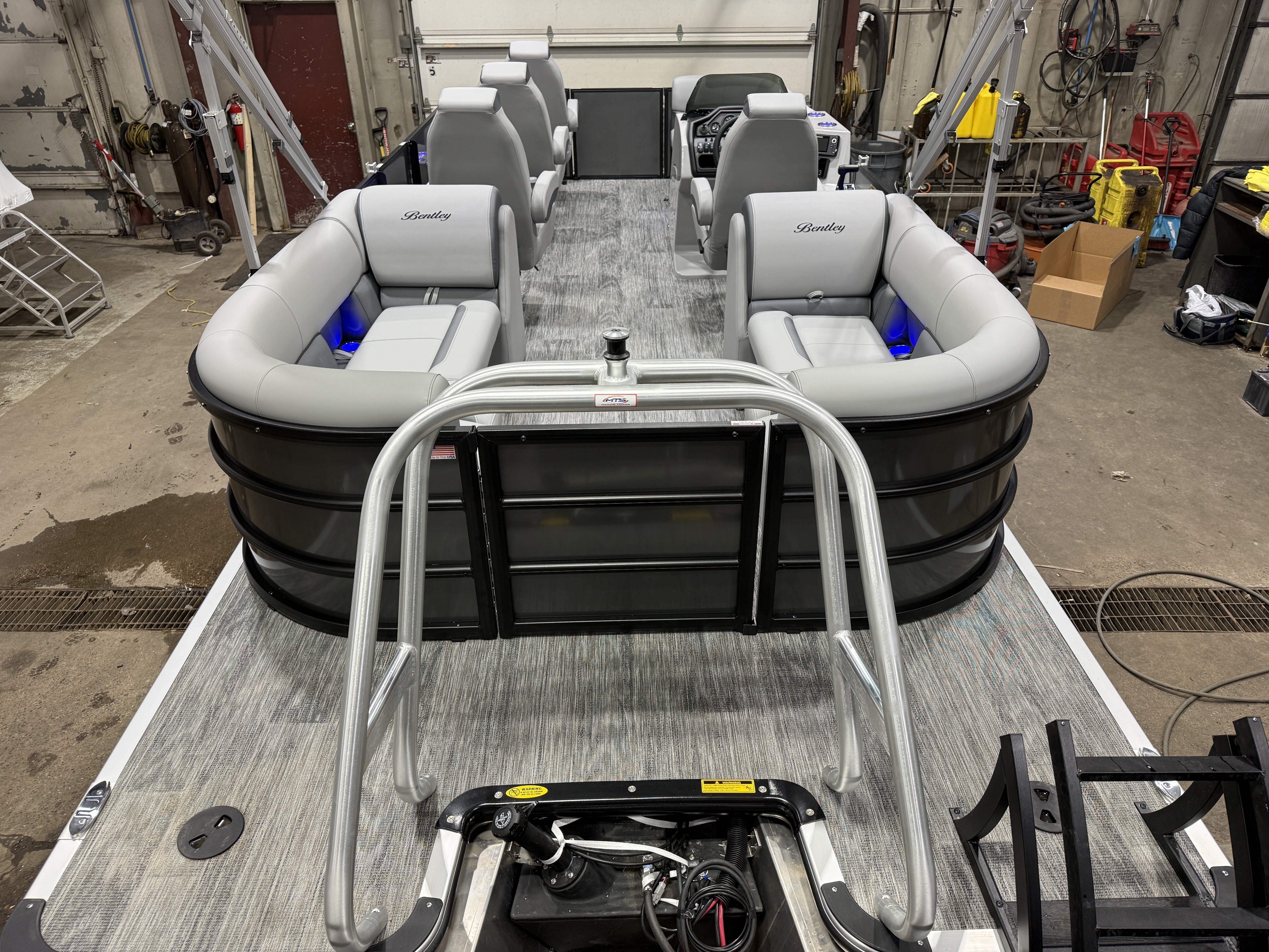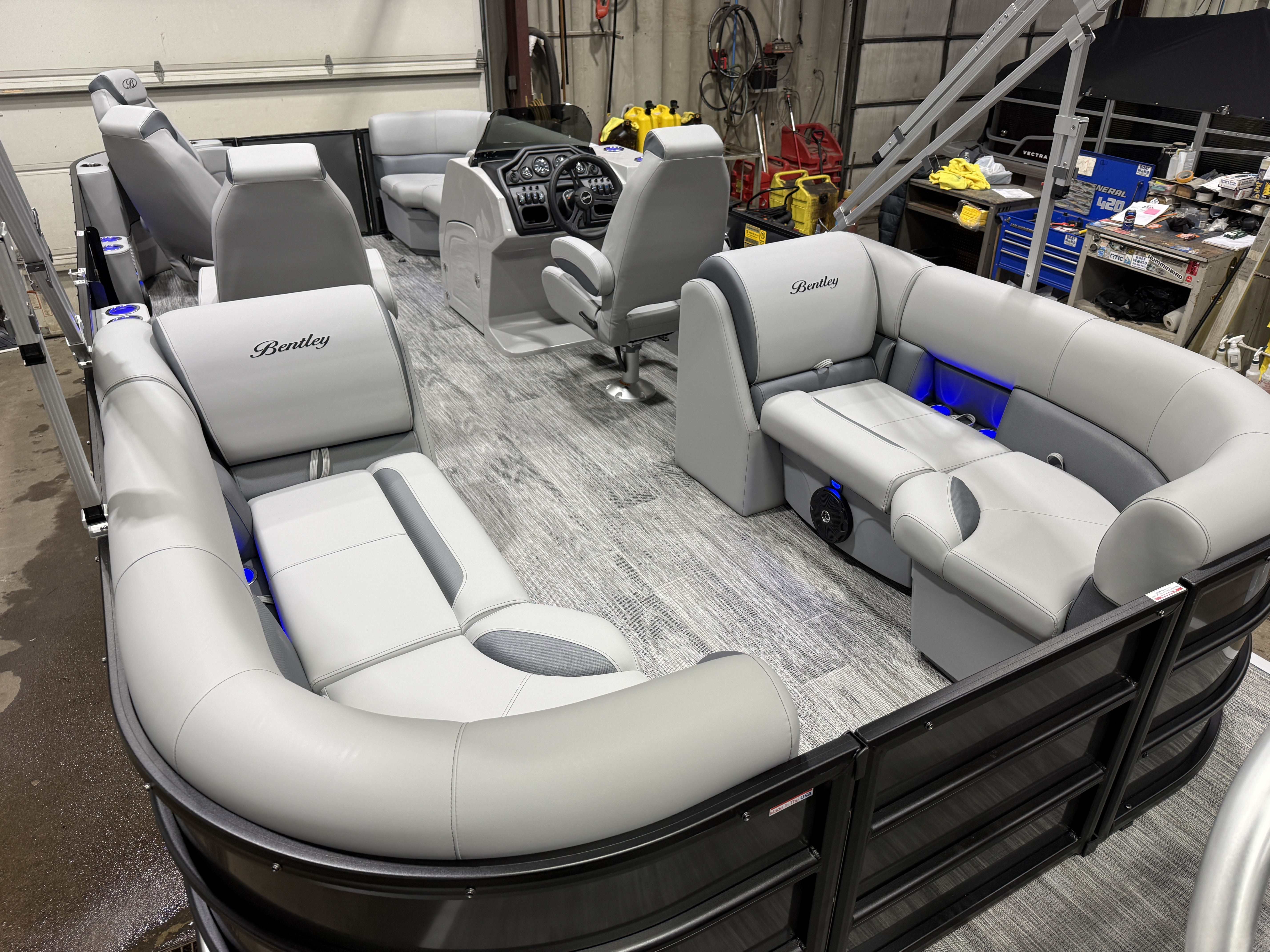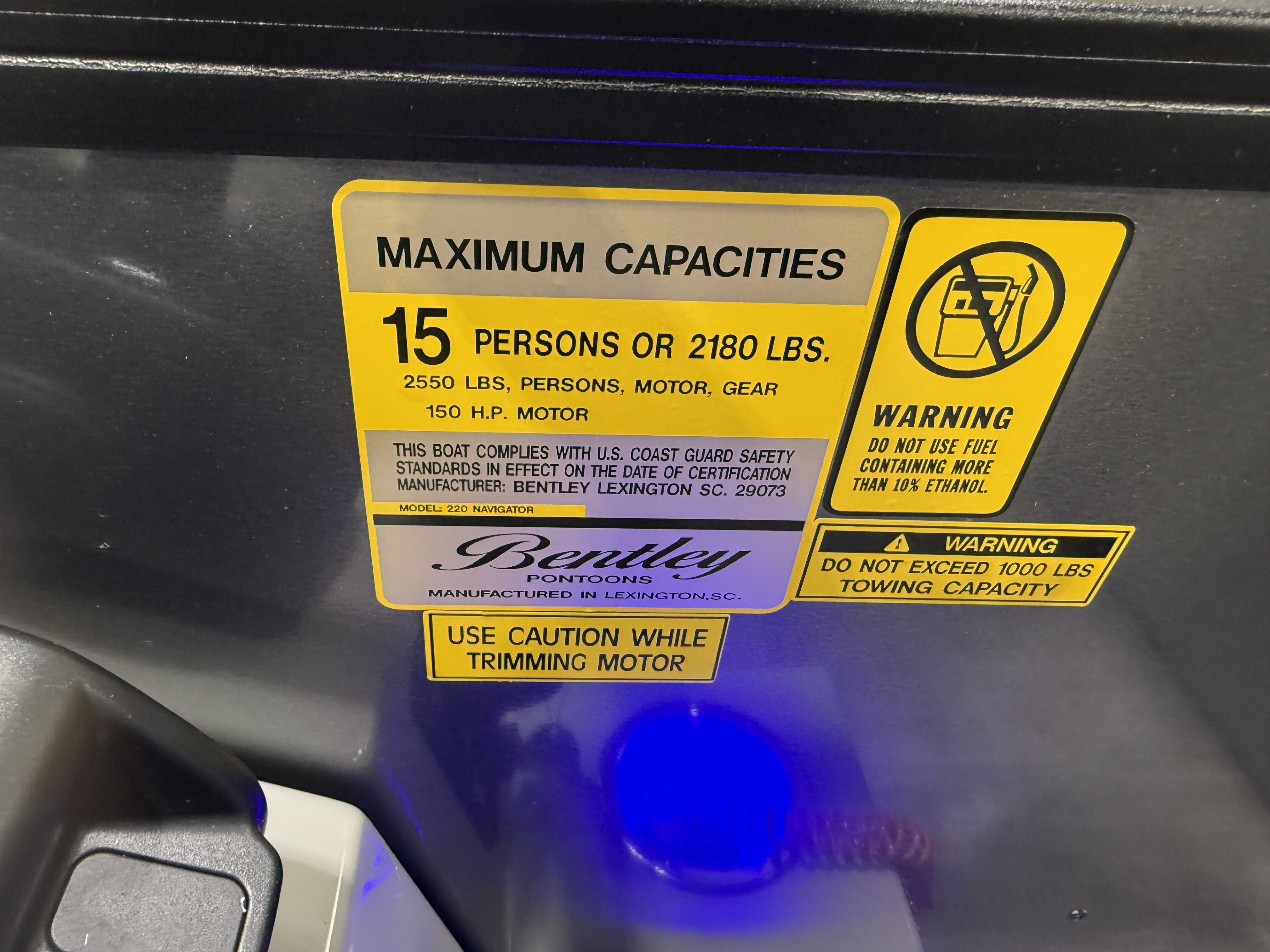 2026 Bentley Legacy 220 Navigator DL Quad Lounge Pontoon & Honda 4-Stroke EFI. This 22' Has Starboard Front Chaise Lounge Seating With Storage, Portside Side By Side High Back Relining Seats w/Cup Holders, Rear Chaise Lounge Seating W/Storage, Side By Side High-Back Reclining Captain's Seats, Interior Blue LED Package (Lighted Cup Holders & Courtesy Lights), Powder Coated Rails, Stainless Steel Flip Up Cleats, Humminbird Helix 5 GPS & Depth Finder, Ski Tow Bar, Bluetooth Radio w/4 Speakers, Table, Fiberglass Helm w/Storage, Lakeport Plank Vinyl Flooring, Playpen Cover, Livewell, Tilt Steering, Rear Ladder, Windshield, Built-In Garbage Can, Gauge Package w/ Hour Meter, 25" Tubes, LED NAV Lights, LED Docking Lights, New Battery, Bimini Top, Built-In 32 Gallon Gas Tank. Rated For 15 People!
