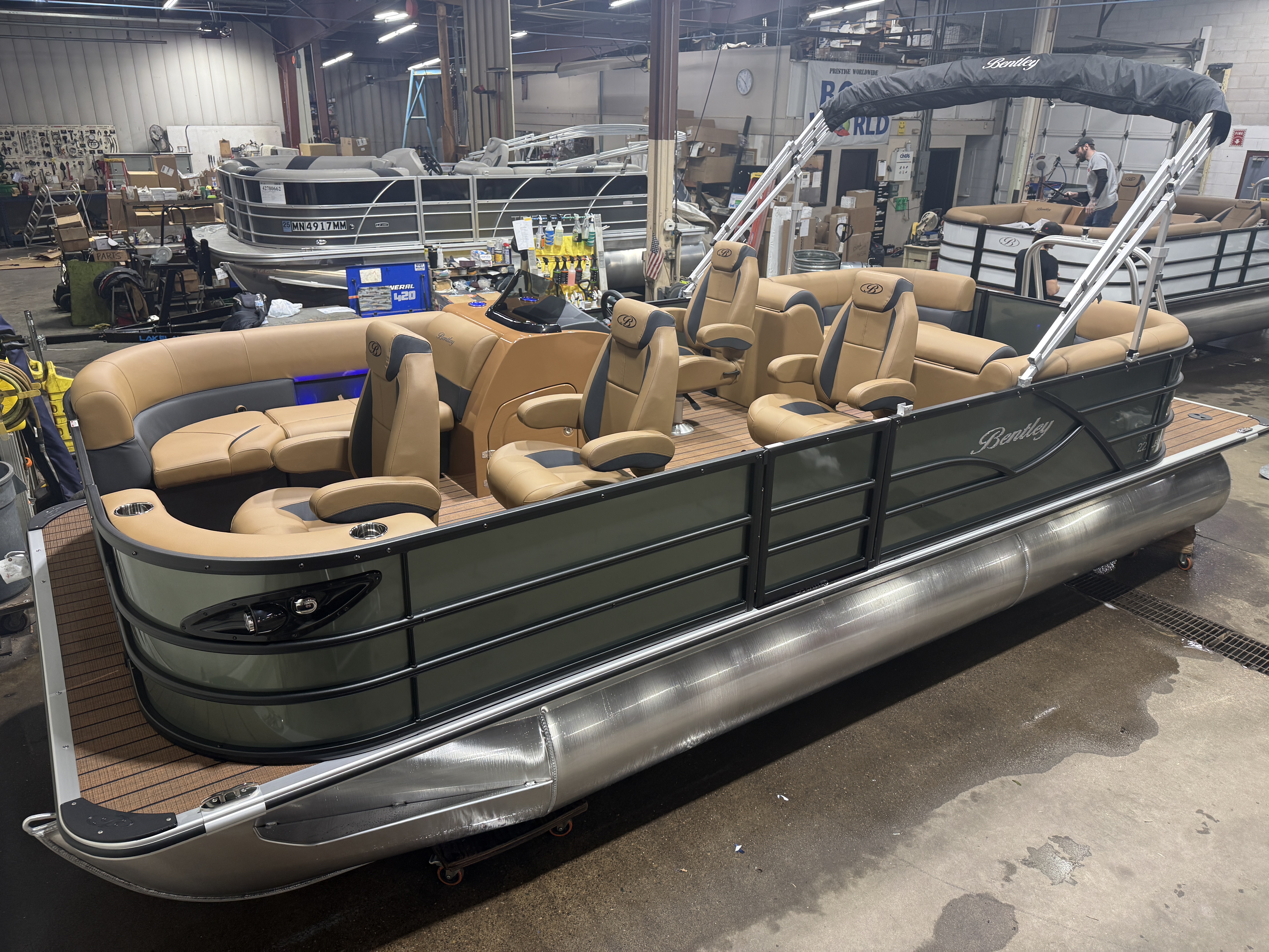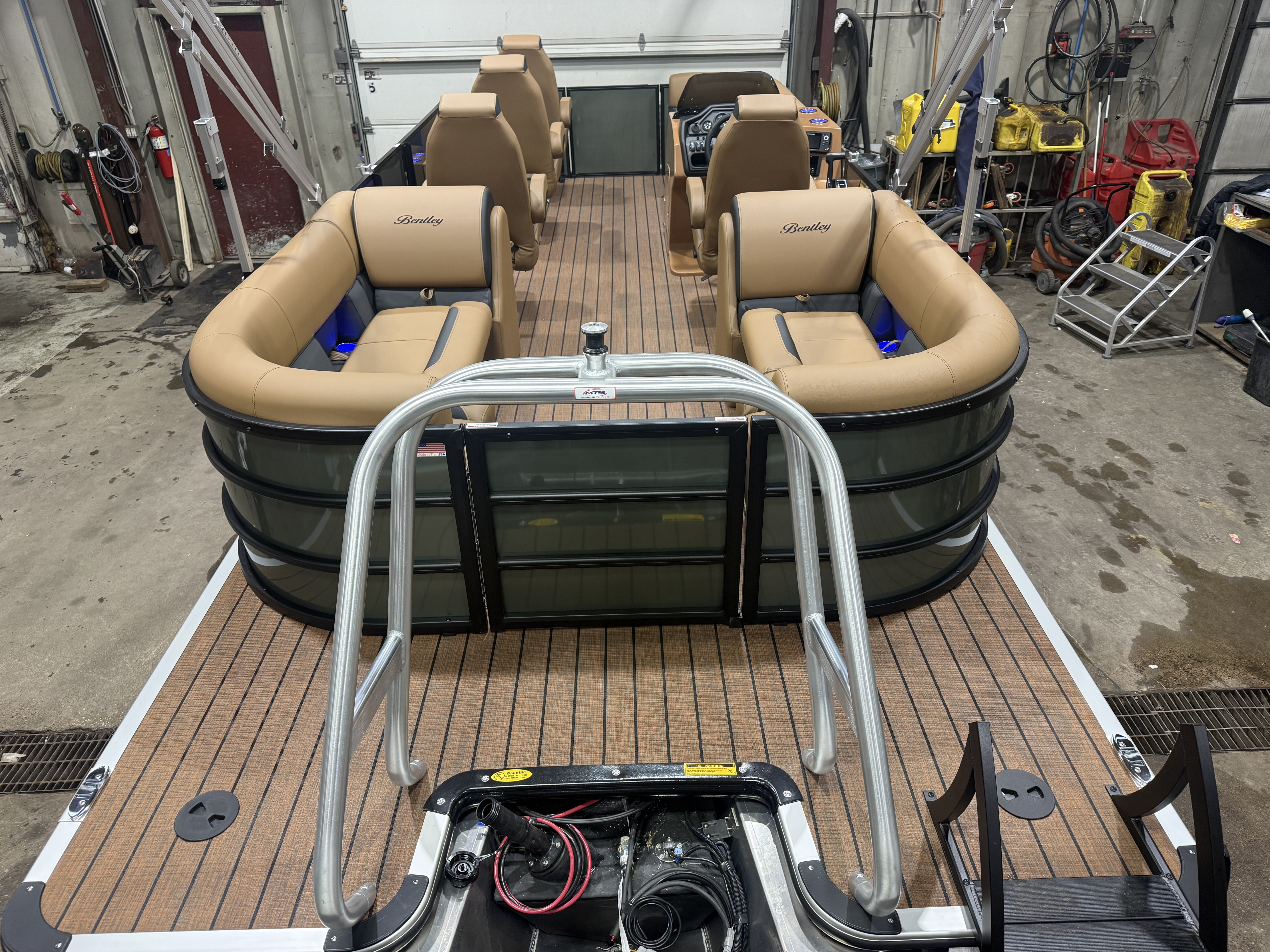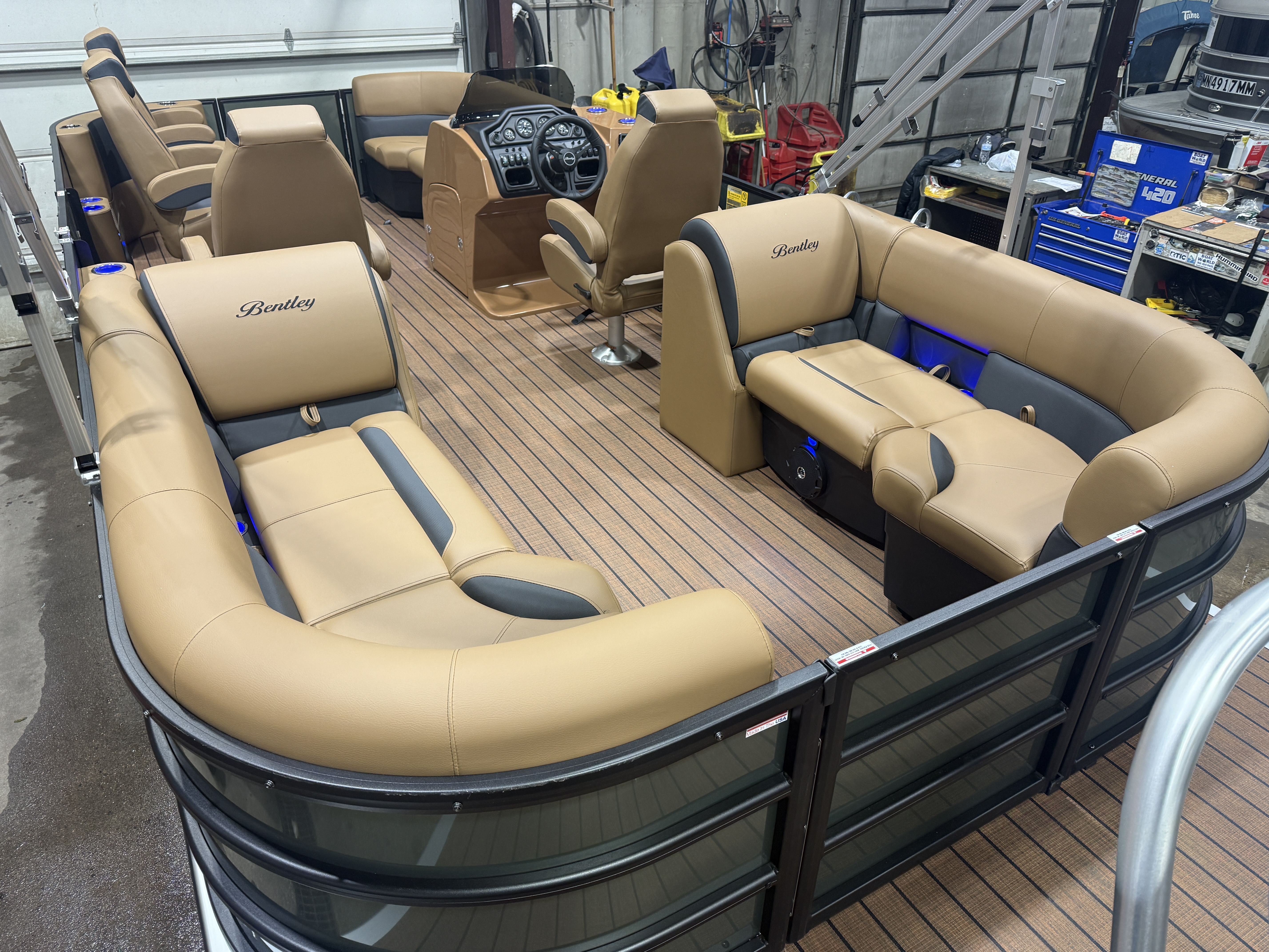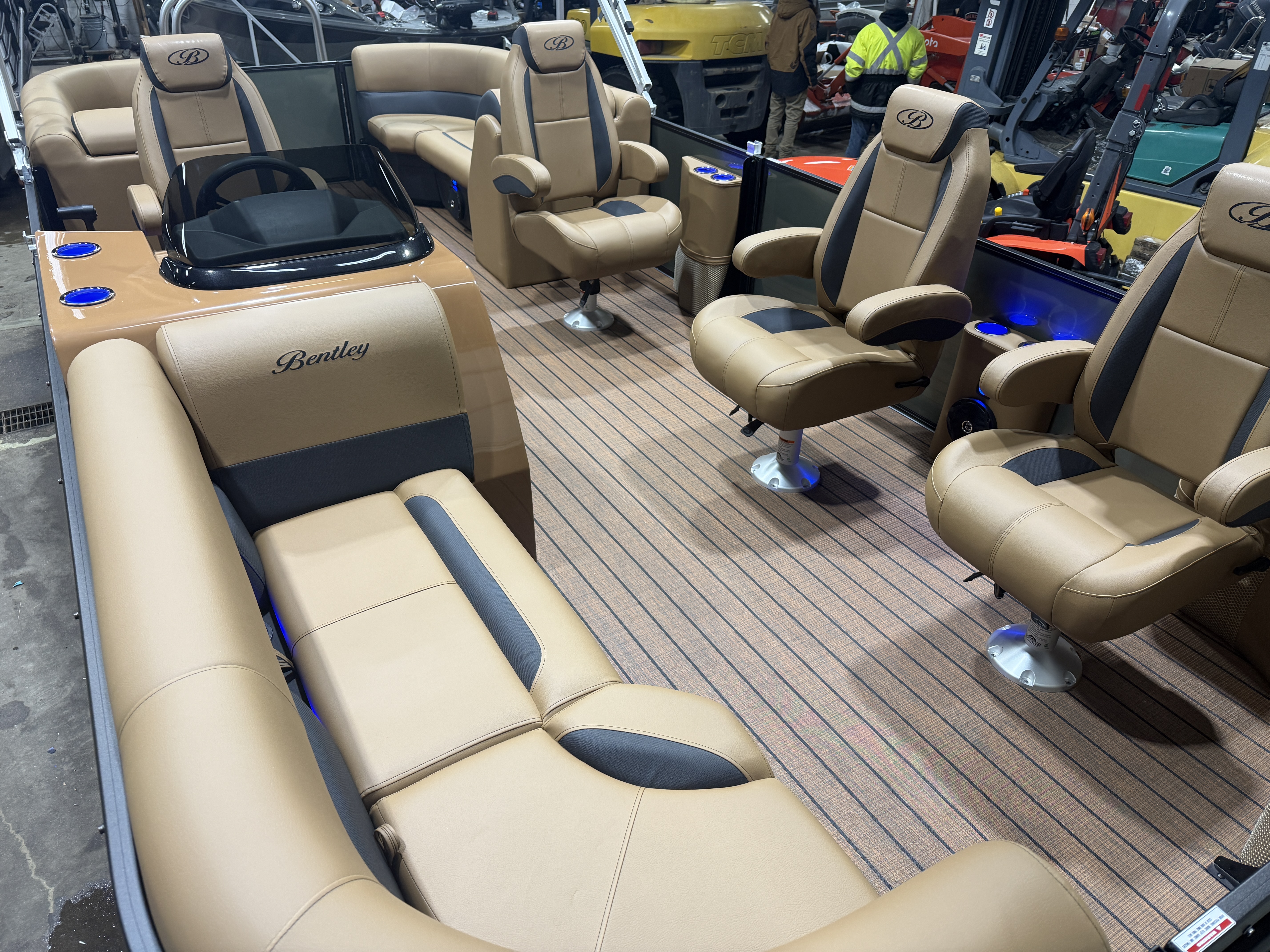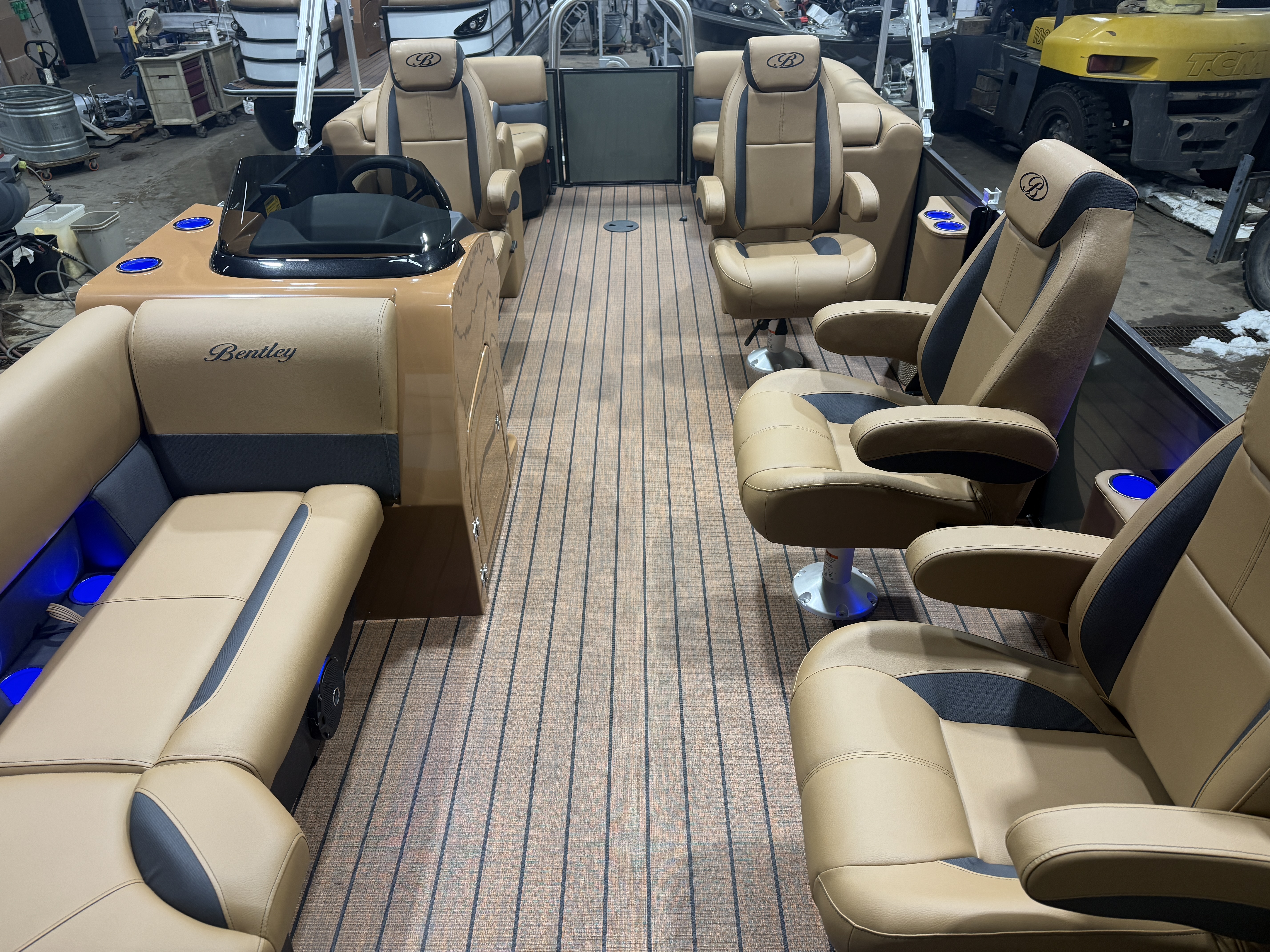 2026 Bentley Legacy 220 Navigator DL Quad Lounge Pontoon & Honda 4-Stroke EFI. This 22' Has Starboard Front Chaise Lounge Seating With Storage, Portside Side By Side High Back Relining Seats w/Cup Holders, Rear Chaise Lounge Seating W/Storage, Side By Side High-Back Reclining Captain's Seats, Brandy Interior Color Package, Interior Blue LED Package (Lighted Cup Holders & Courtesy Lights), Powder Coated Rails, Stainless Steel Flip Up Cleats, Humminbird Helix 5 GPS & Depth Finder, Ski Tow Bar, Bluetooth Radio w/4 Speakers, Table, Fiberglass Helm w/Storage, Walnut Teak Brown Vinyl Flooring, Playpen Cover, Livewell, Tilt Steering, Rear Ladder, Windshield, Built-In Garbage Can, Gauge Package w/ Hour Meter, 25" Tubes, LED NAV Lights, LED Docking Lights, New Battery, Bimini Top, Built-In 32 Gallon Gas Tank. Rated For 15 People!