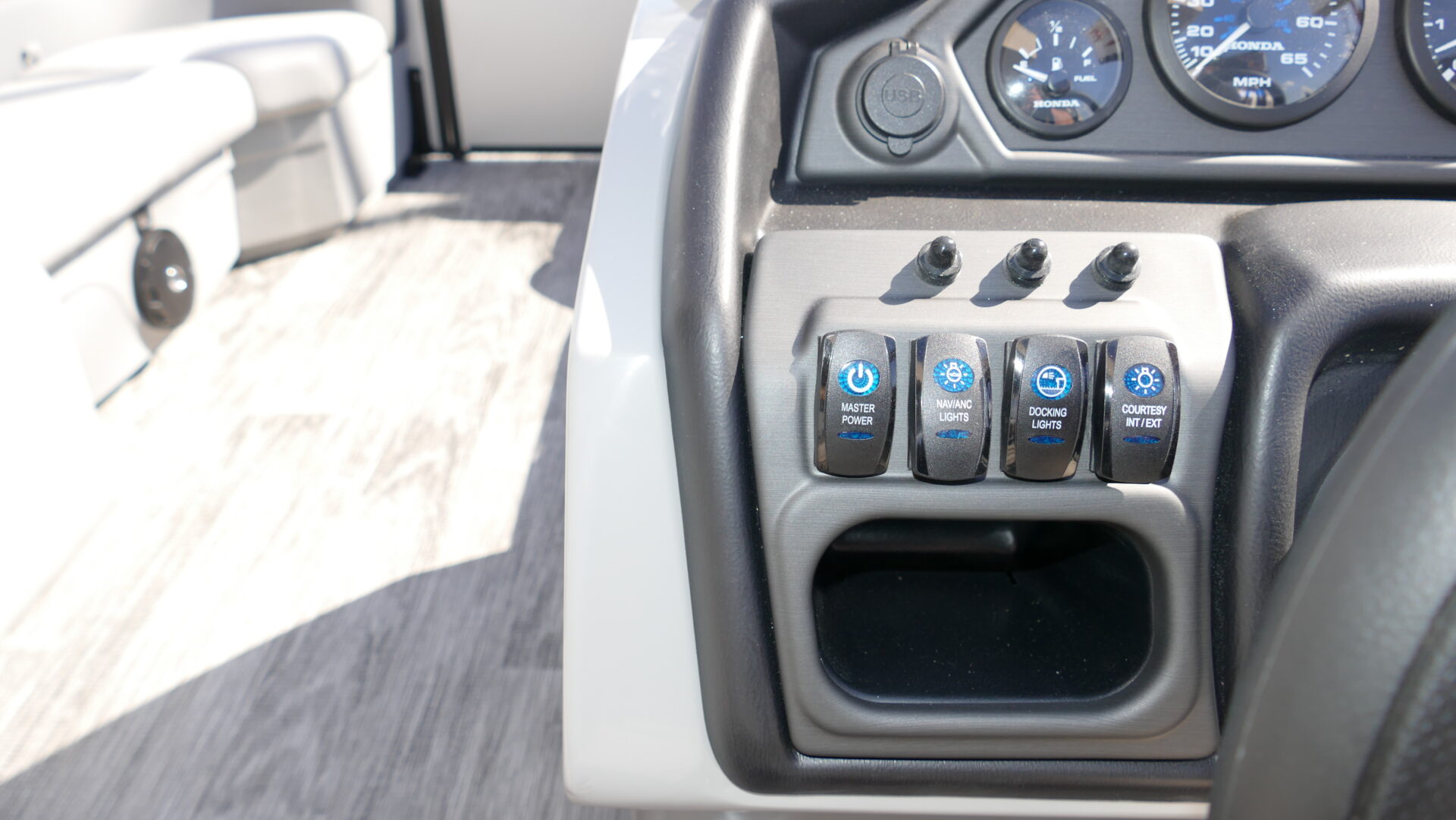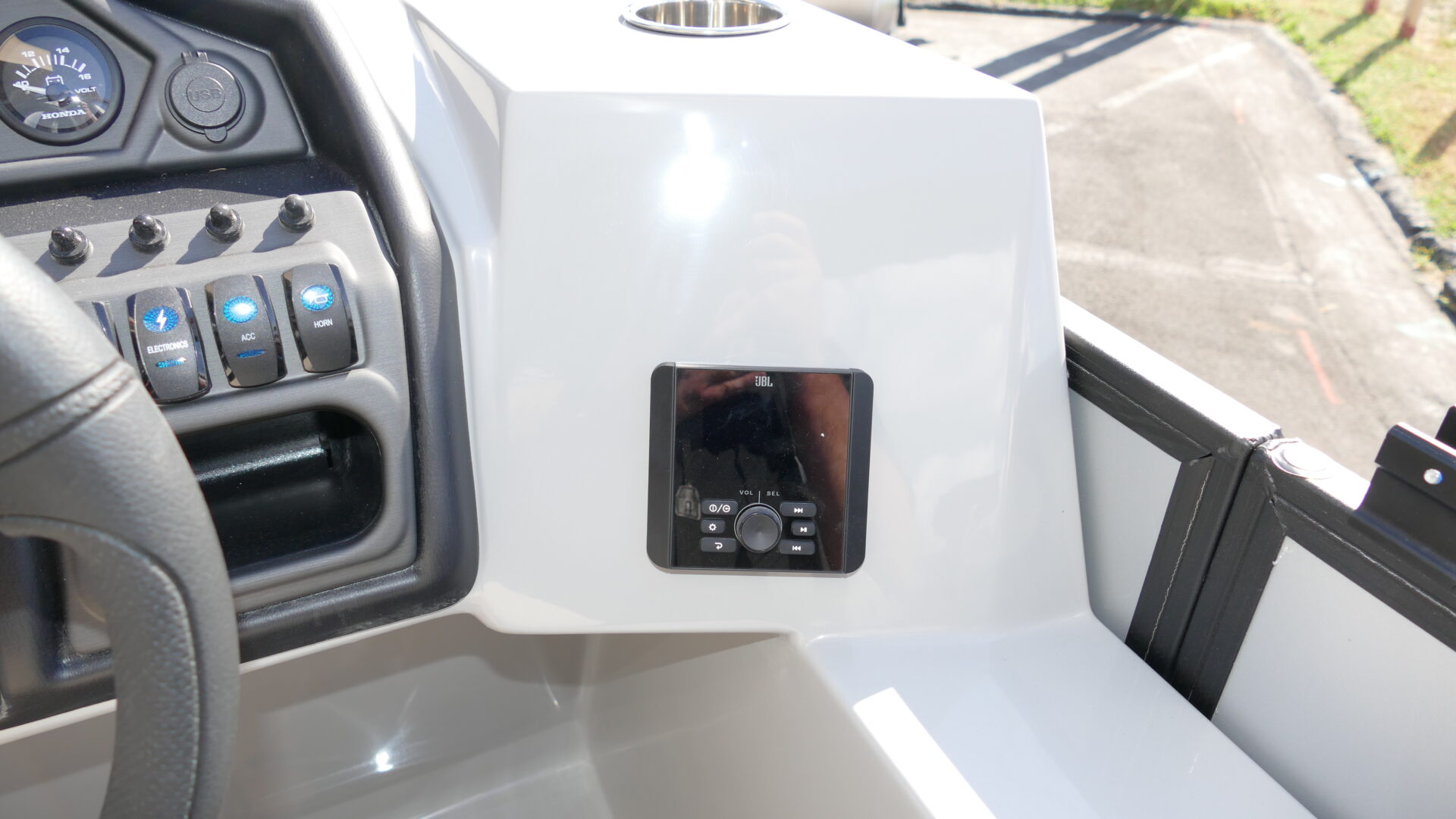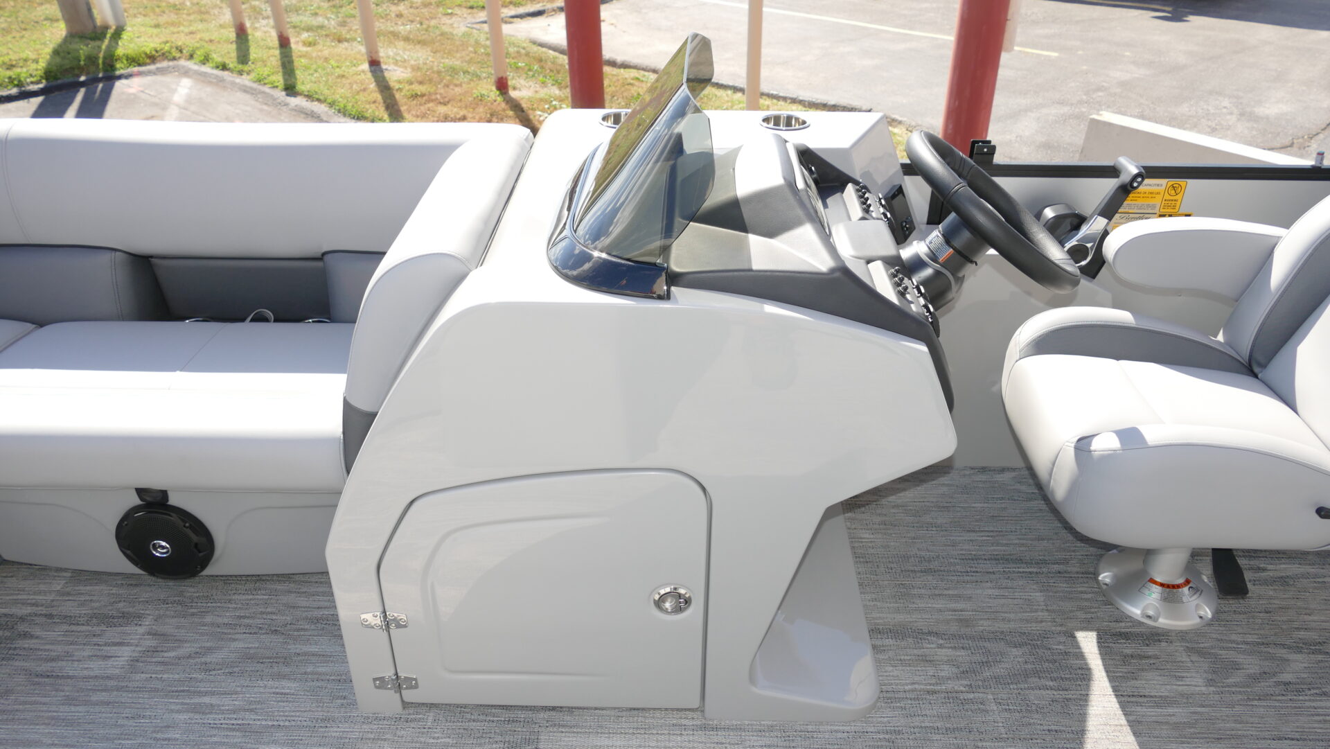 Exterior Colors : Matte Silver, Exterior Accent Color: Matte Black, Rail Color: Textured Black, Interior Colors : Gray, Flooring : Lakeport Plank Gray Full Length Flooring, Honda BF140 4 Stroke, SE Package Includes: Soft Touch Upholstery, Stainless Steel Cup Holders, Integrated Cupholders, Xtreme Tilt Steering, Black Anodized 10′ Bimini Top, Black Ski Tow Bar, Black Graphics Package, Playpen Cover, Windshield, Honda Analog Gauges, Installed Battery Cables, Aluminum Propeller, 1 Cranking Battery, Fire Extinguisher, Lifetime Plus 5 Year Warranty. Trailer Available For An Additional Cost.