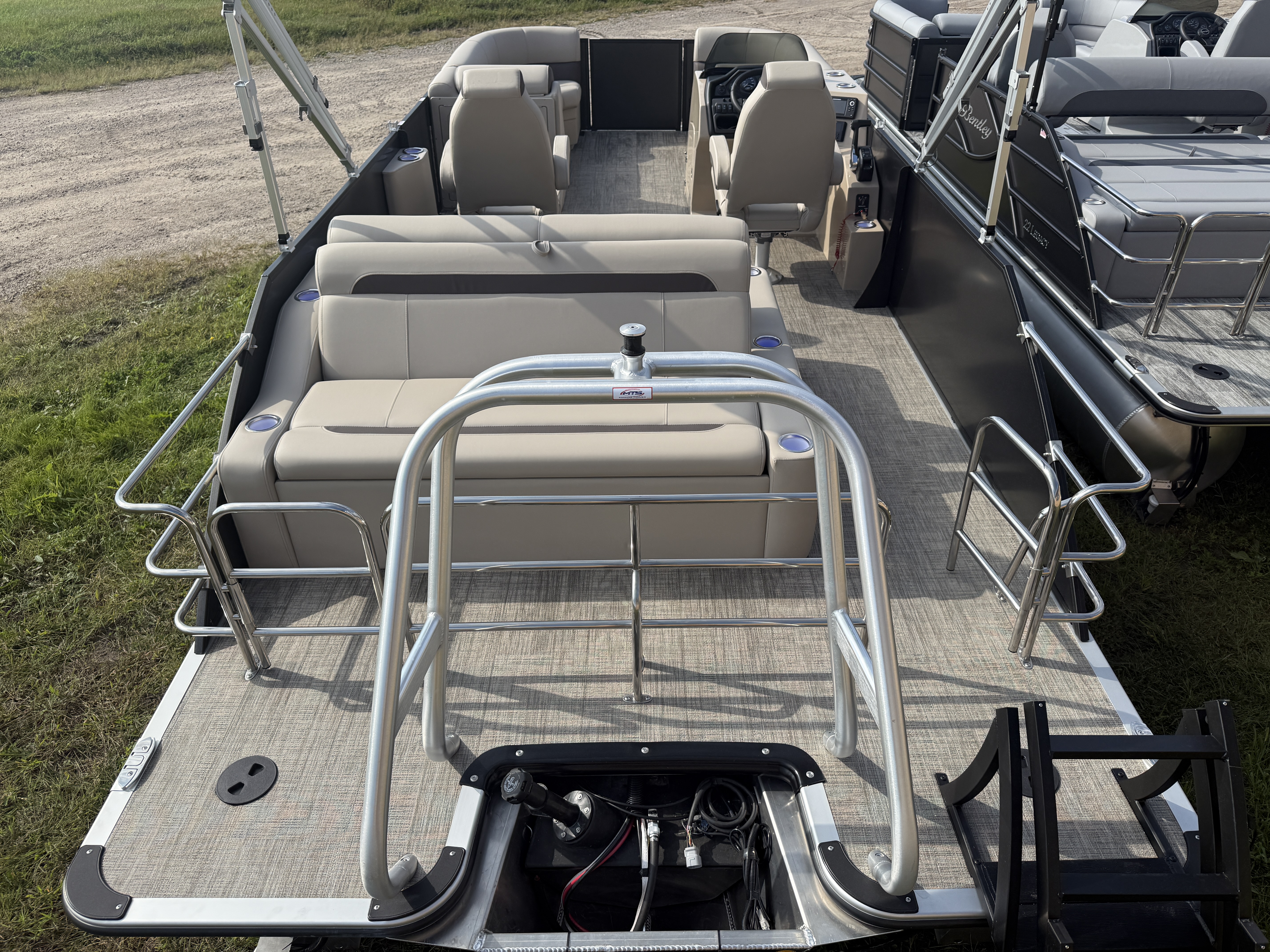 2026 Bentley Legacy 220 Swingback Pontoon & Honda 4-Stroke EFI. This 22' Cruise Has Front Chaise Lounge Seating With Storage, Two High-Back Reclining Captain's, Rear Swingback Rear Lounge (Multiple Positions) With Storage, Rear Safety Fencing, Interior Blue LED Package (Lighted Cup Holders & Courtesy Lights), Powder Coated Rails, Lakeport Plank Vinyl Flooring, Livewell, Stainless Steel Flip Up Cleats, Humminbird Helix GPS & Depth Finder, Ski Tow Bar, Bluetooth Radio w/4 Speakers, Table, Built-In Table On Portside, Fiberglass Helm w/Storage, Playpen Cover, Windshield, Tilt Steering, Rear Ladder, Battery On/Off Switch, Gauge Package w/Hour Meter, 25" Tubes, LED NAV Lights, LED Docking Lights, Built-In Trash Can, Built-In Cooler, New Battery, Bimini Top Built-In 32 Gallon Gas Tank, Huge Front And Rear Deck. Rated For 15 People & Up To 150HP.
