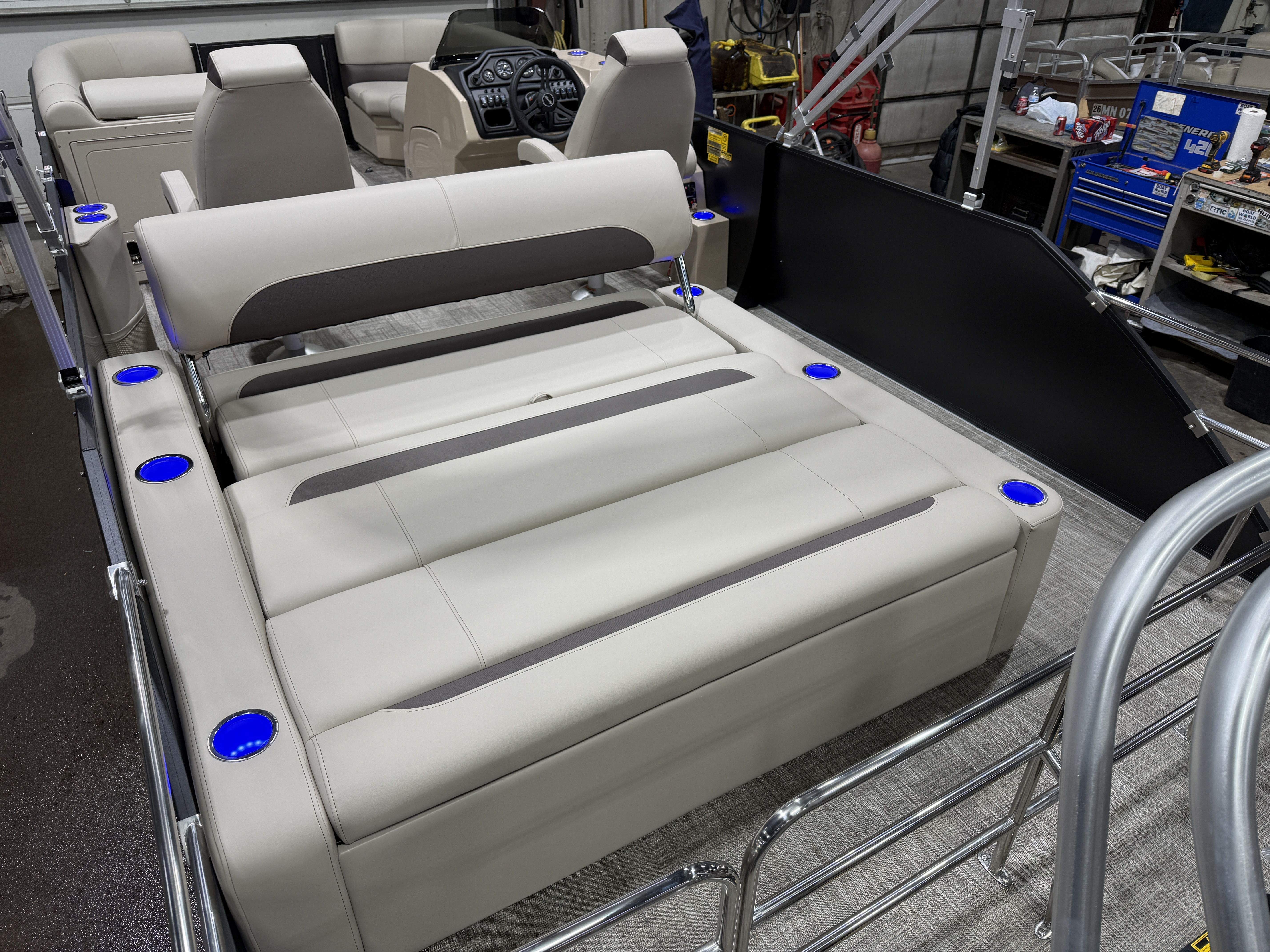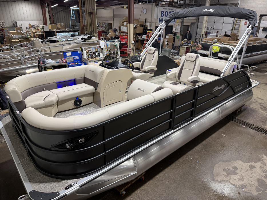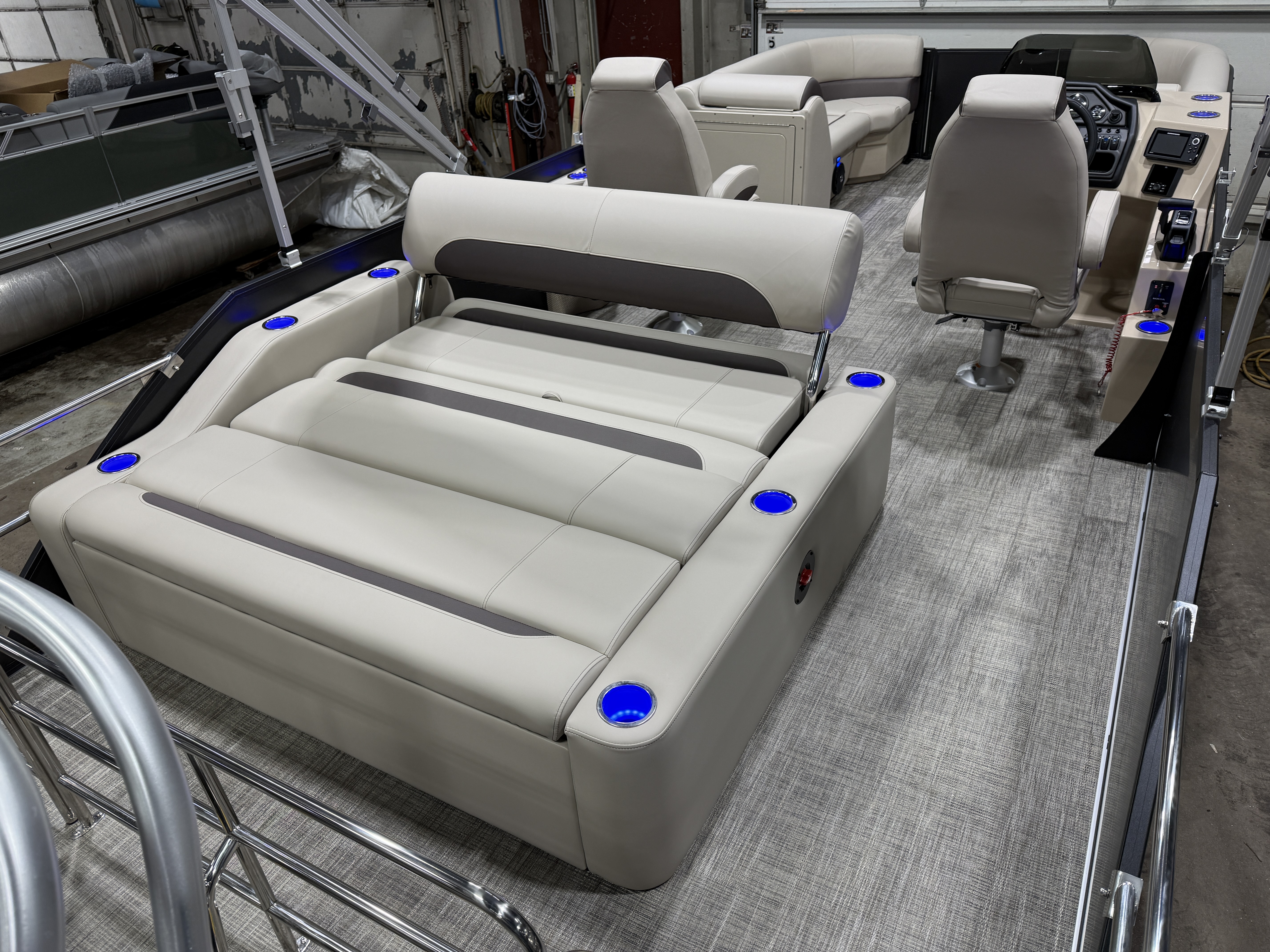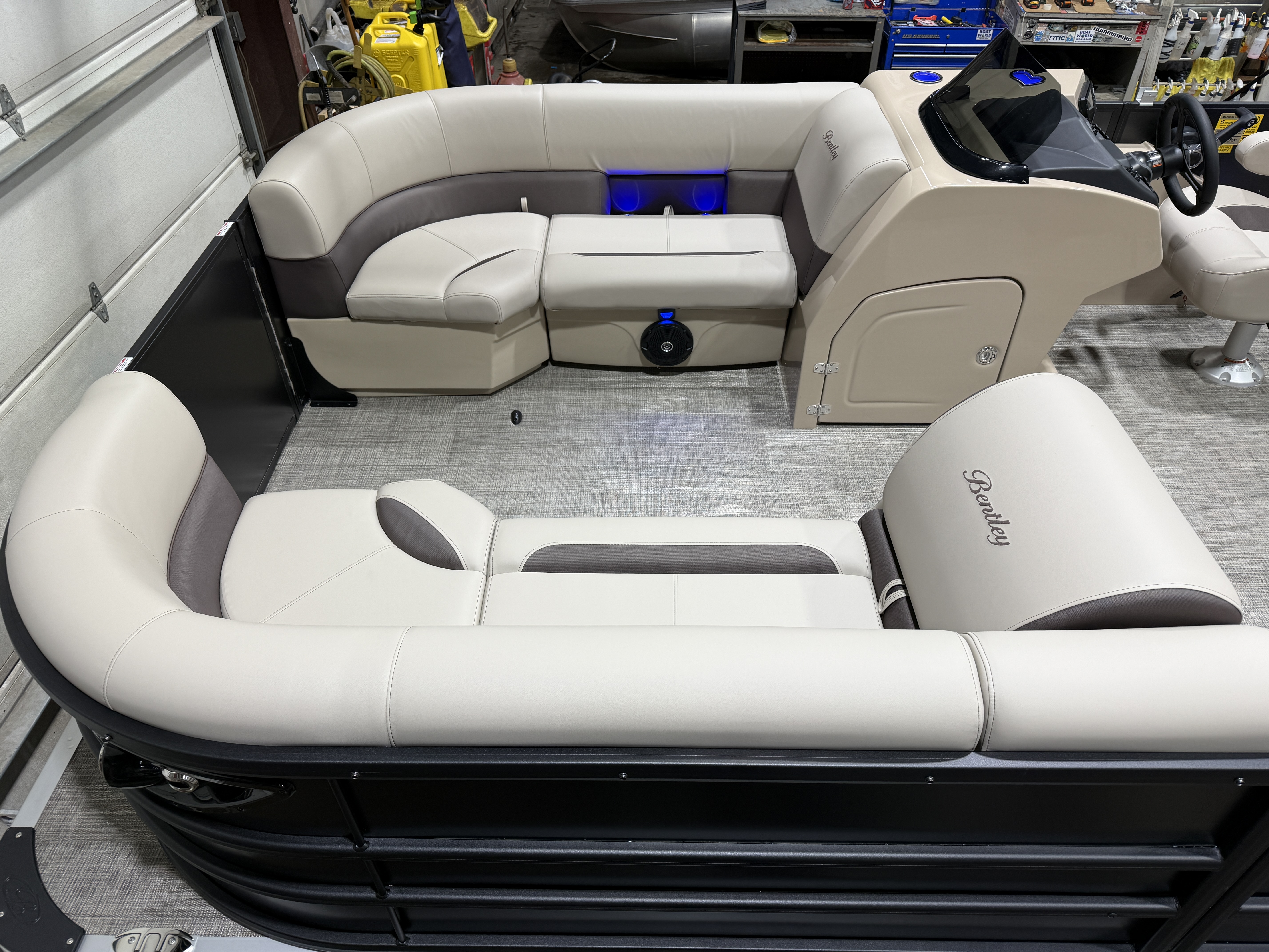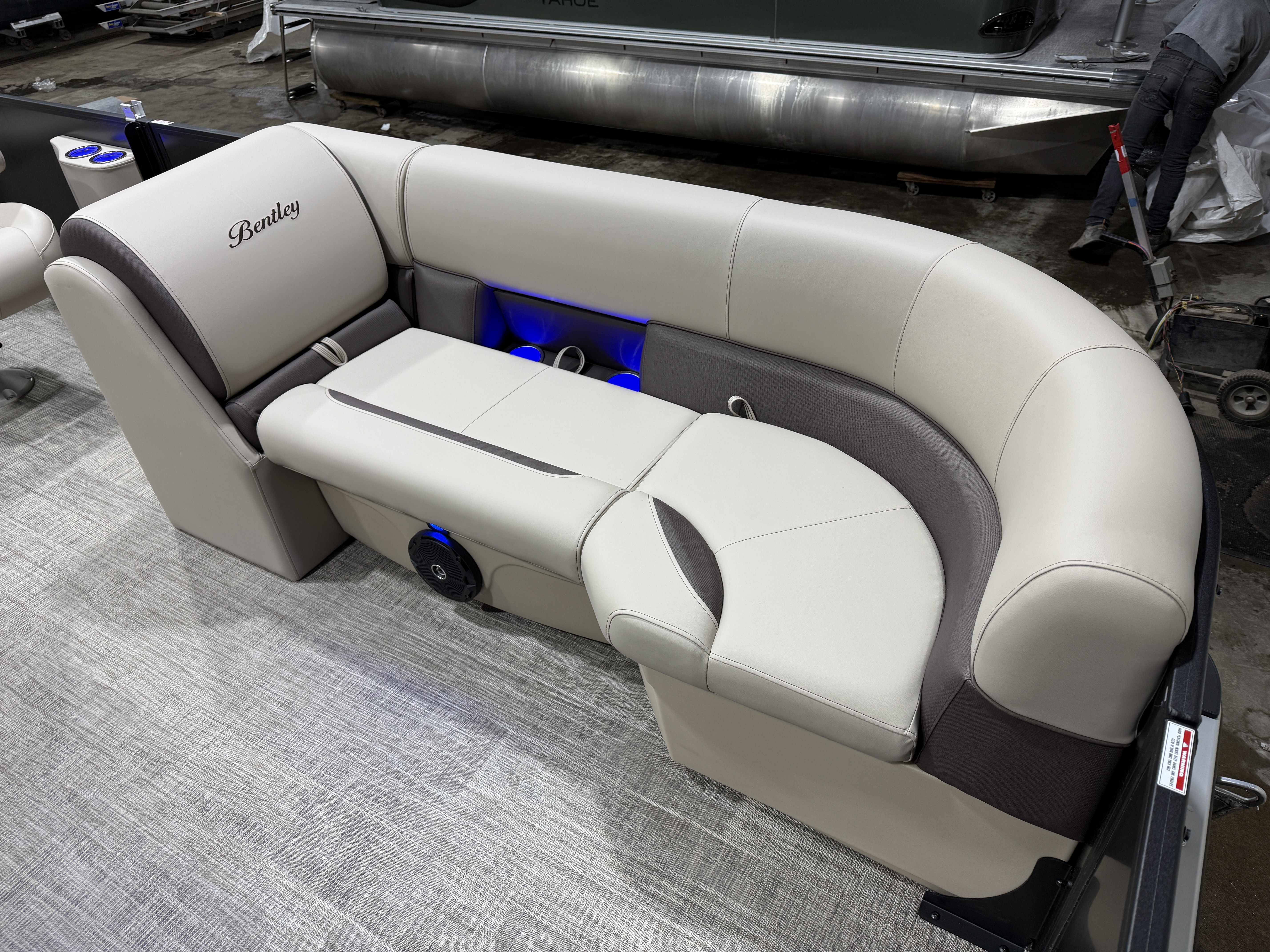 2026 Bentley Legacy 220 Swingback Pontoon & Honda 4-Stroke EFI. This 22' Cruise Has Front Chaise Lounge Seating With Storage, Two High-Back Reclining Captain's, Rear Swingback Rear Lounge (Multiple Positions) With Storage, Rear Safety Fencing, Interior Blue LED Package (Lighted Cup Holders & Courtesy Lights), Powder Coated Rails, Lakeport Plank Vinyl Flooring, Livewell, Stainless Steel Flip Up Cleats, Humminbird Helix GPS & Depth Finder, Ski Tow Bar, Bluetooth Radio w/4 Speakers, Table, Built-In Table On Portside, Fiberglass Helm w/Storage, Playpen Cover, Windshield, Tilt Steering, Rear Ladder, Battery On/Off Switch, Gauge Package w/Hour Meter, 25" Tubes, LED NAV Lights, LED Docking Lights, Built-In Trash Can, Built-In Cooler, New Battery, Bimini Top Built-In 32 Gallon Gas Tank, Huge Front And Rear Deck. Rated For 15 People & Up To 150HP.