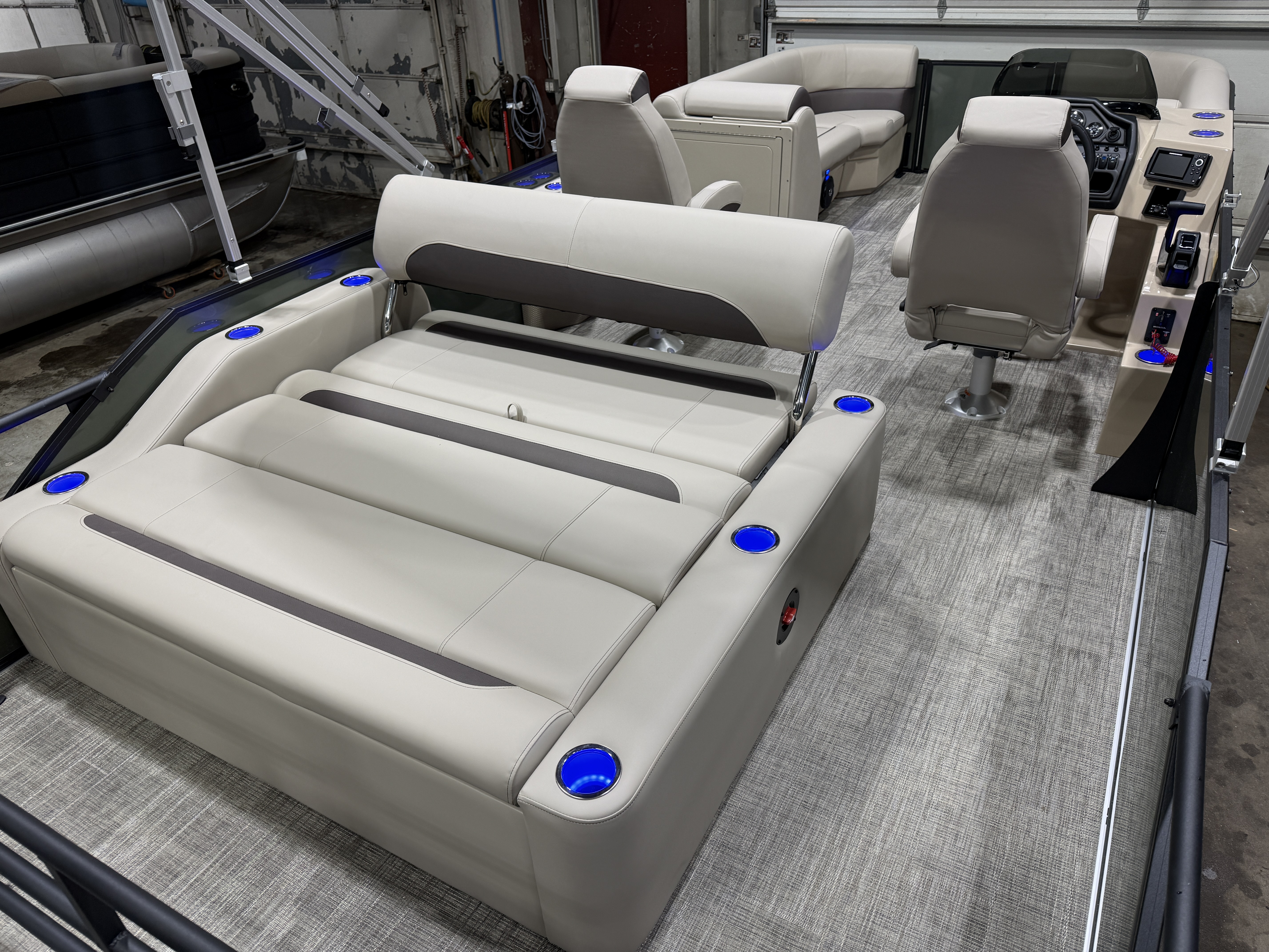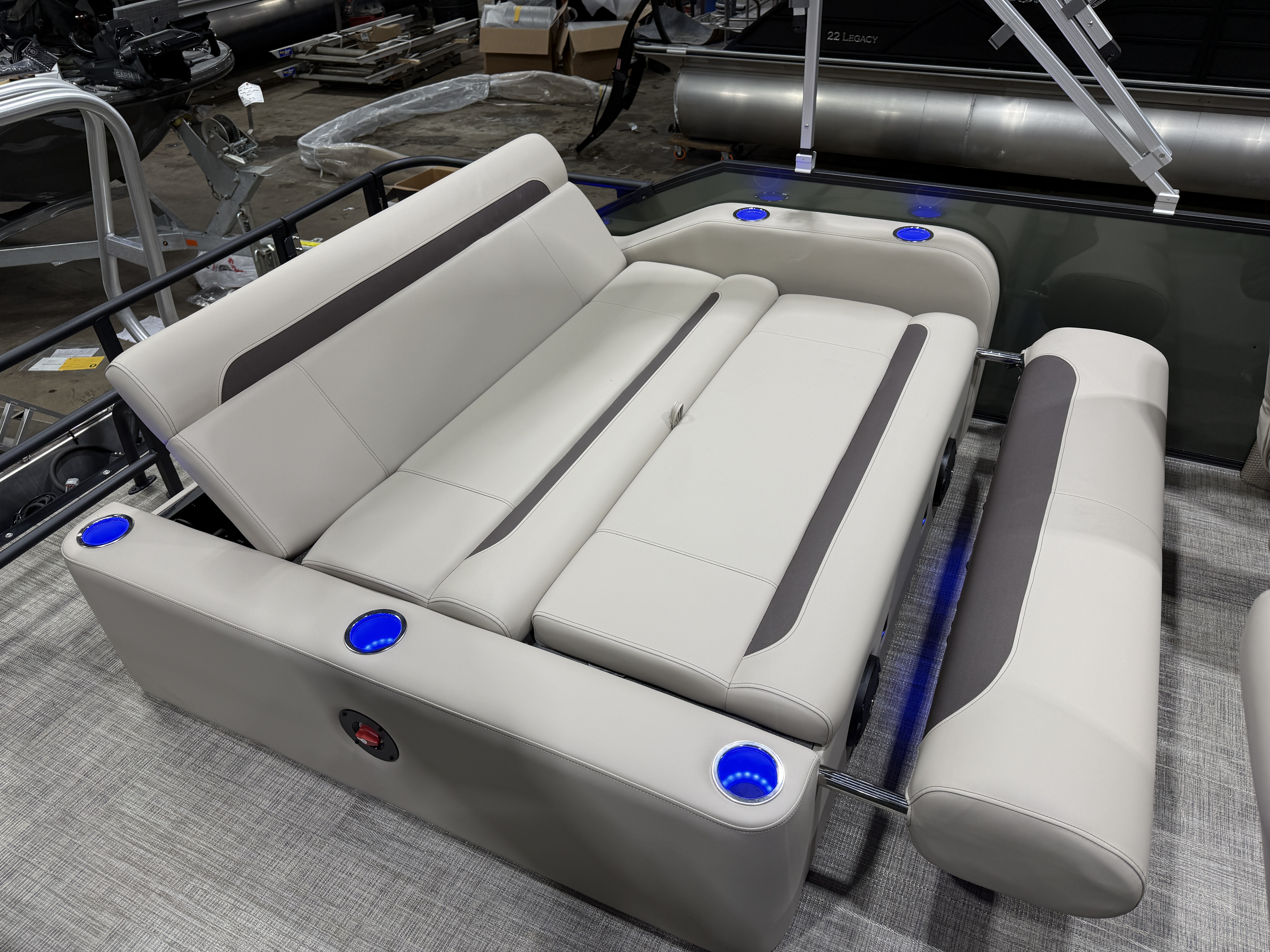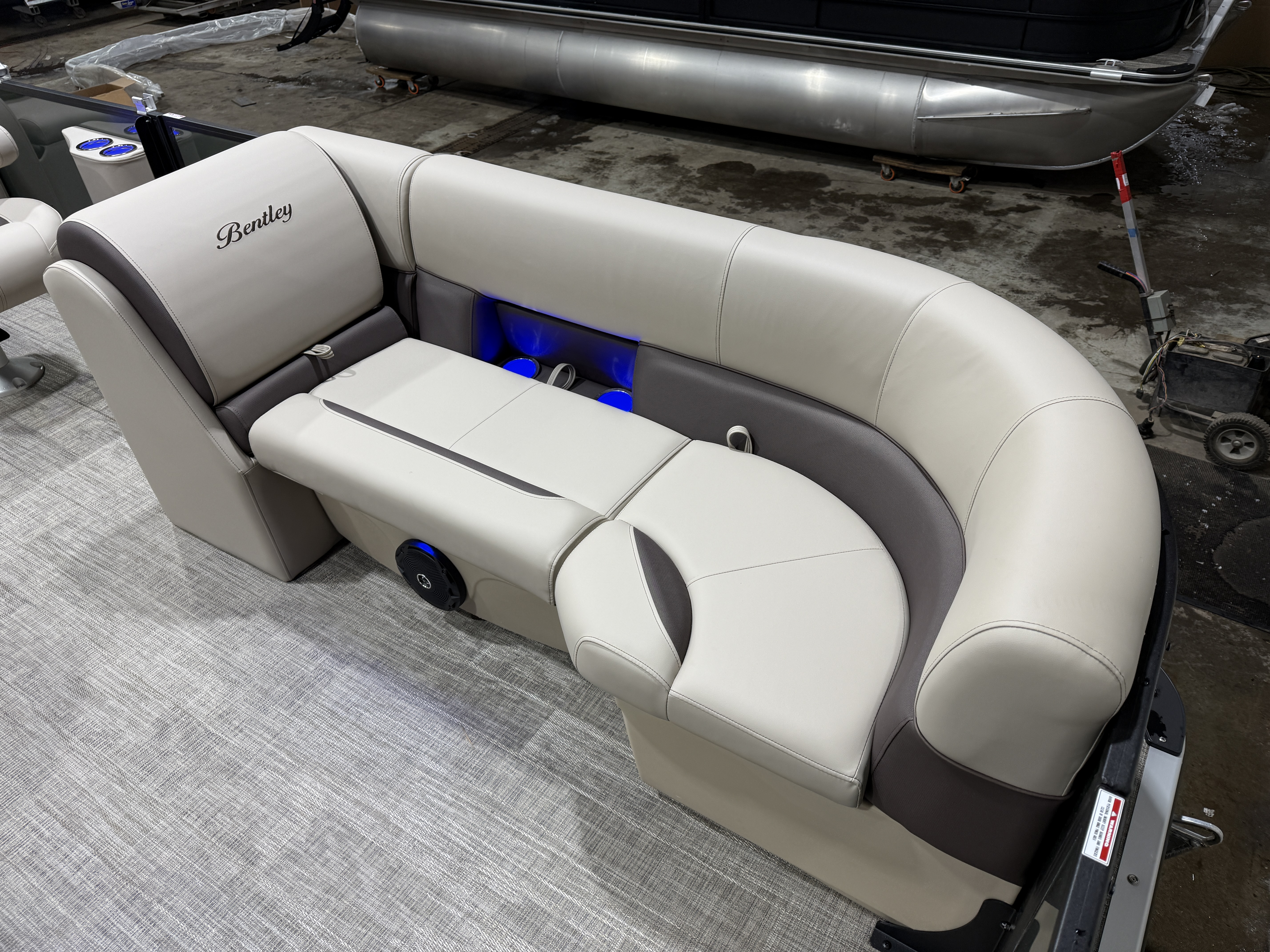 2026 Bentley Legacy 220 Swingback Pontoon & Honda 4-Stroke EFI. This 22' Cruise Has Front Chaise Lounge Seating With Storage, Two High-Back Reclining Captain's, Rear Swingback Rear Lounge (Multiple Positions) With Storage, Rear Safety Fencing, Interior Blue LED Package (Lighted Cup Holders & Courtesy Lights), Powder Coated Rails, Lakeport Plank Vinyl Flooring, Livewell, Stainless Steel Flip Up Cleats, Humminbird Helix GPS & Depth Finder, Ski Tow Bar, Bluetooth Radio w/4 Speakers, Table, Built-In Table On Portside, Fiberglass Helm w/Storage, Playpen Cover, Windshield, Tilt Steering, Rear Ladder, Battery On/Off Switch, Gauge Package w/Hour Meter, 25" Tubes, LED NAV Lights, LED Docking Lights, Built-In Trash Can, Built-In Cooler, New Battery, Bimini Top Built-In 32 Gallon Gas Tank, Huge Front And Rear Deck. Rated For 15 People & Up To 150HP.